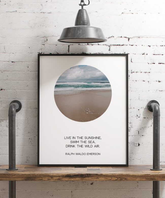Live in the sunshine, swim the sea, drink the wild air. -Ralph Waldo Emerson (b) – Typography Print – Home Wall Decor – Minimalist Decor
