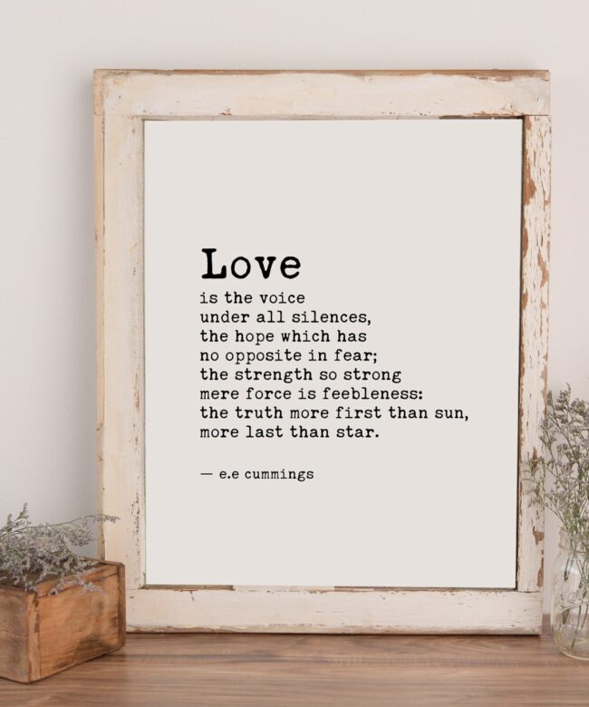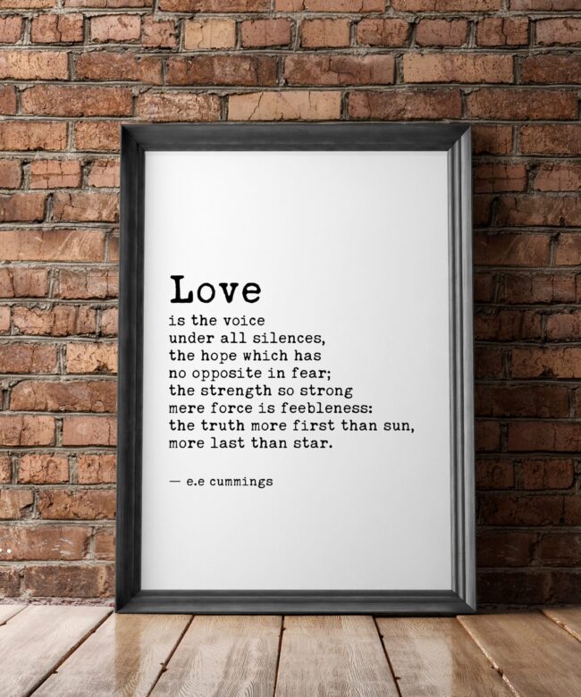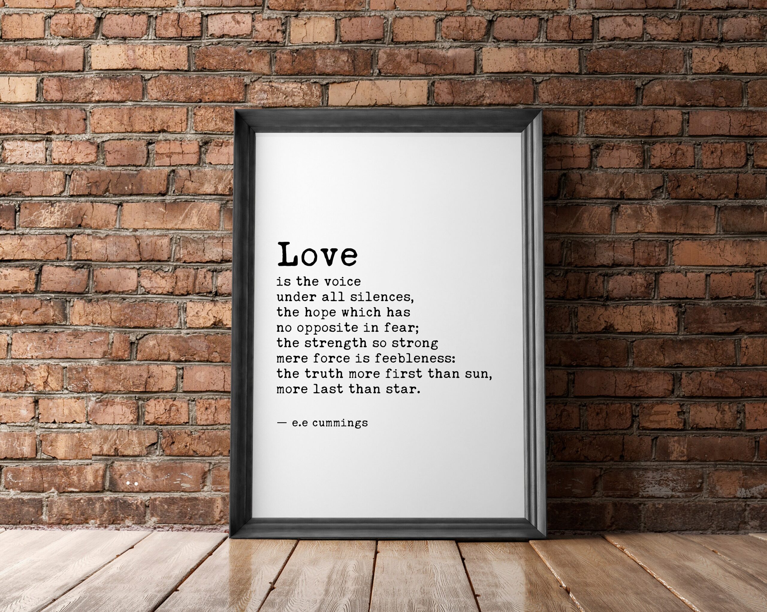 Love is the Voice Under All Silences by e.e. cummings Typography Print – Wedding Poem – Wedding Gift – Home Wall Decor – Minimalist Decor