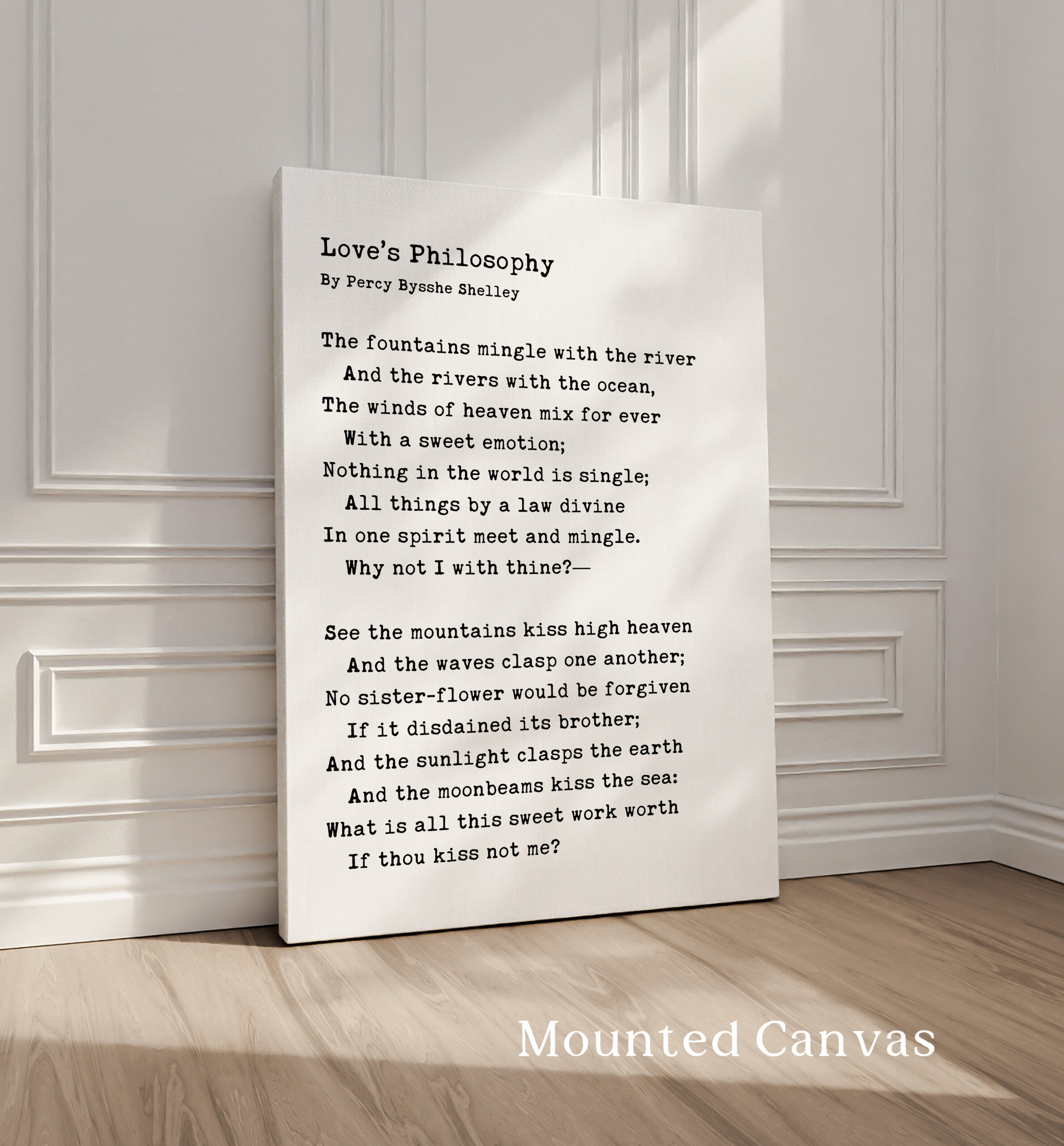 Mounted Canvas Prints are NOT framed. Our art canvas is wrapped around a high quality 1.25″ thick wood stretcher to create a gorgeous gallery wrap that’s ready for hanging. They are printed on Acid-free, PH-neutral, poly-cotton base. Printed on textured and fade-resistant canvas. Canvas is a great option because of its minimalist beauty without the expense of framing and matting.