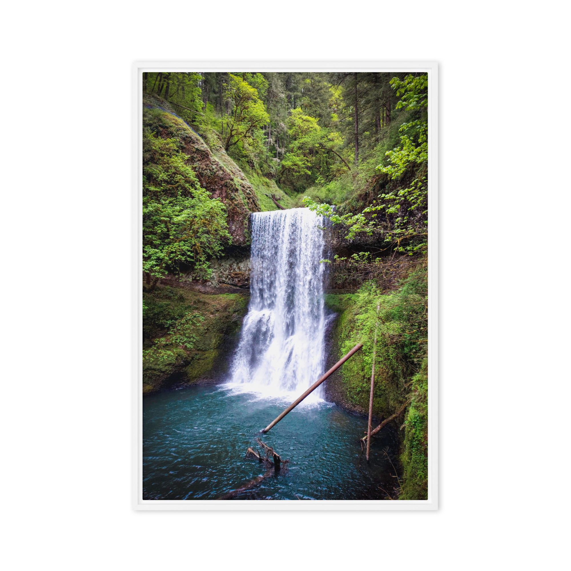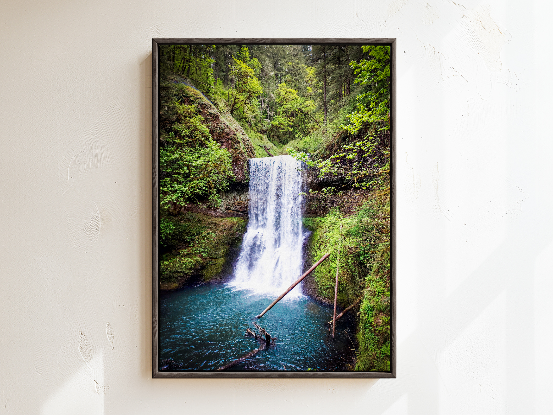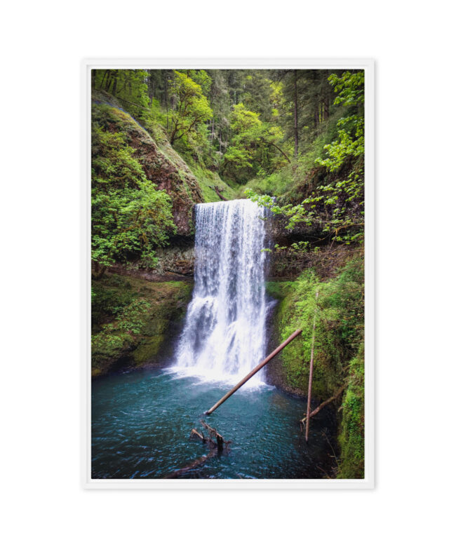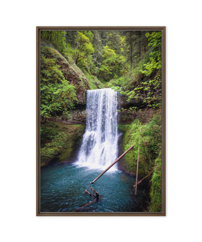 Immerse yourself in the tranquil beauty of Lower South Falls at Silver Falls State Park with this stunning framed canvas print. Capturing the lush greenery and serene waterfall, this image brings the peaceful essence of Oregon’s natural landscape into your home. Available in three pine frame colors—Black, White, or Brown—you can easily find the perfect frame to suit your space. The 1.25-inch thick frame adds a floating effect to the image, enhancing the overall aesthetic. This print is perfect for nature lovers, those who appreciate scenic landscapes, or anyone looking to add a touch of serenity to their decor.