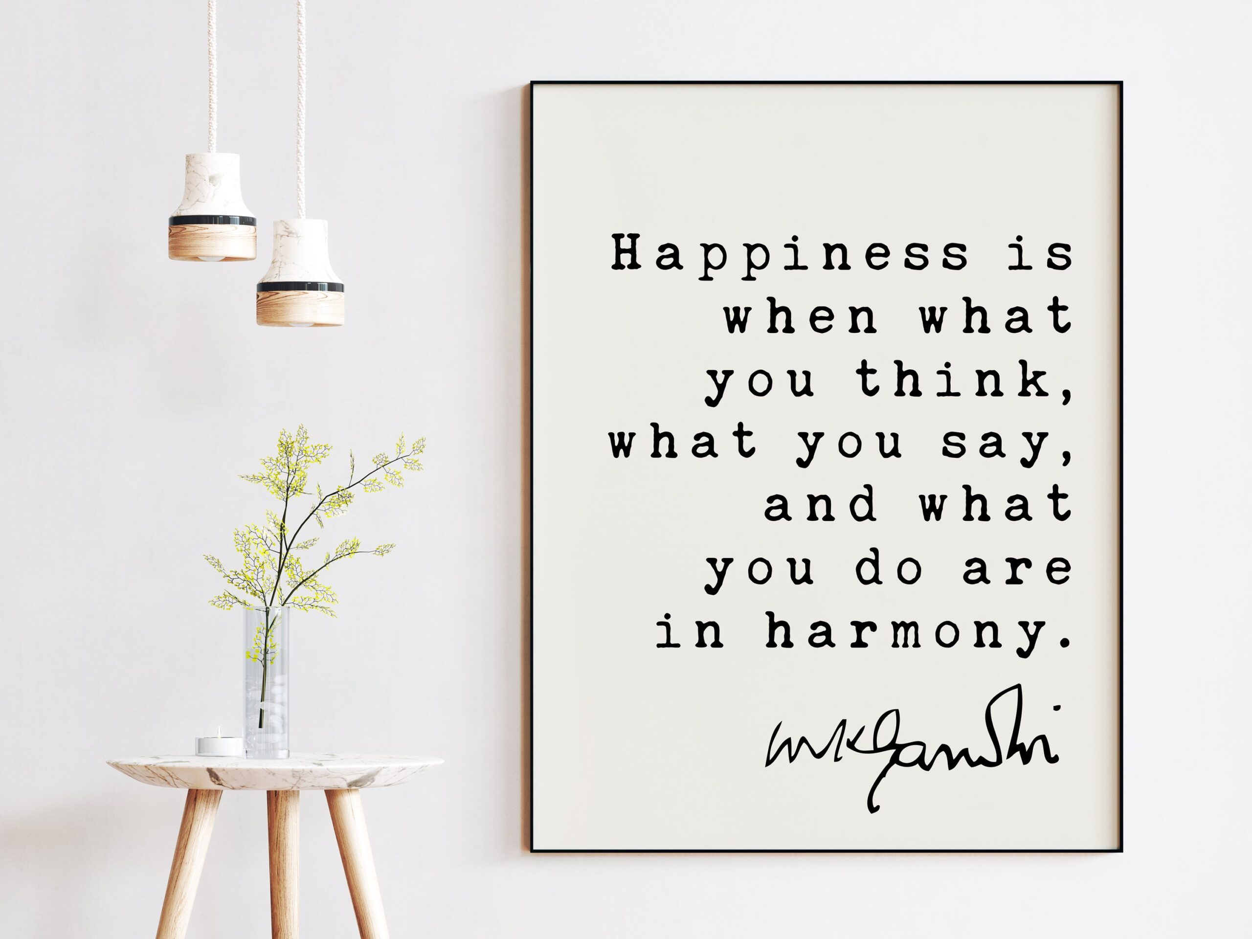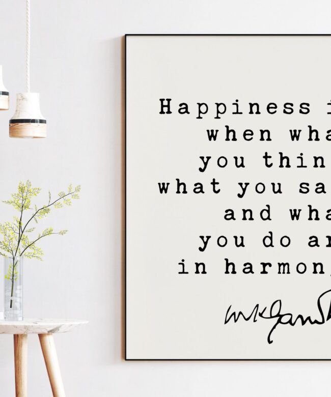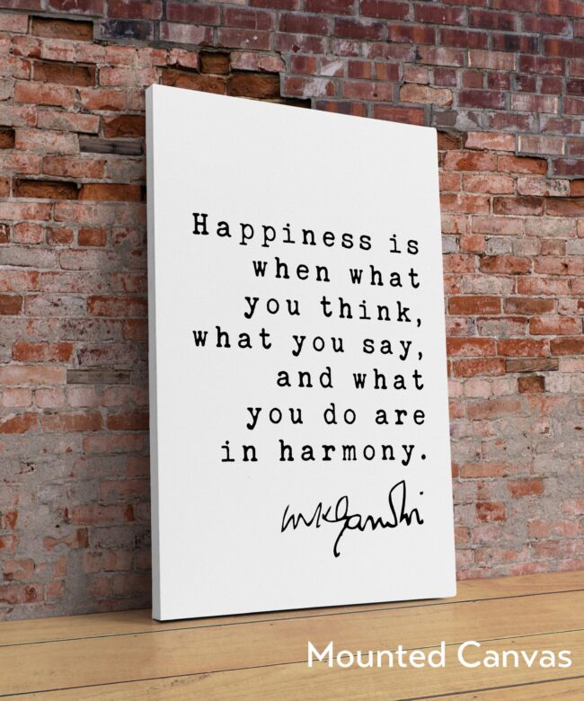 Mahatma Gandhi Quote Happiness is when what you think, what you say, and what you do are in harmony. Art Print – Inspiration – Life Quotes