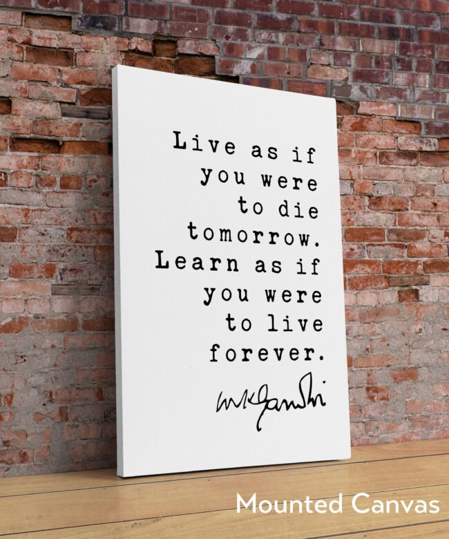More than just words on a wall, this piece is an invitation to embrace the present moment while nurturing your potential for lifelong growth. The minimalist design allows the quote to shine, reflecting Gandhi’s emphasis on simplicity and intentionality.