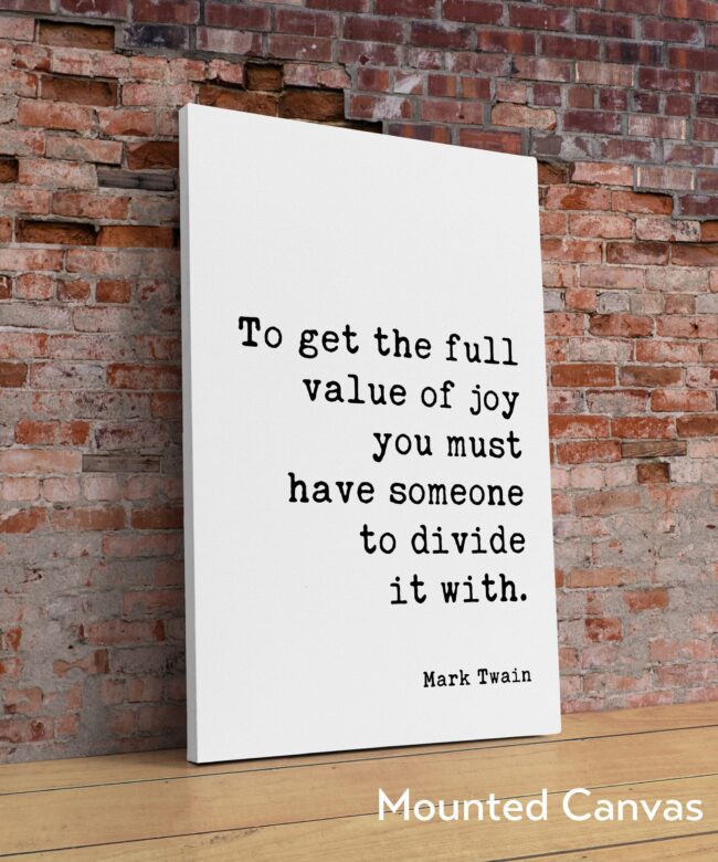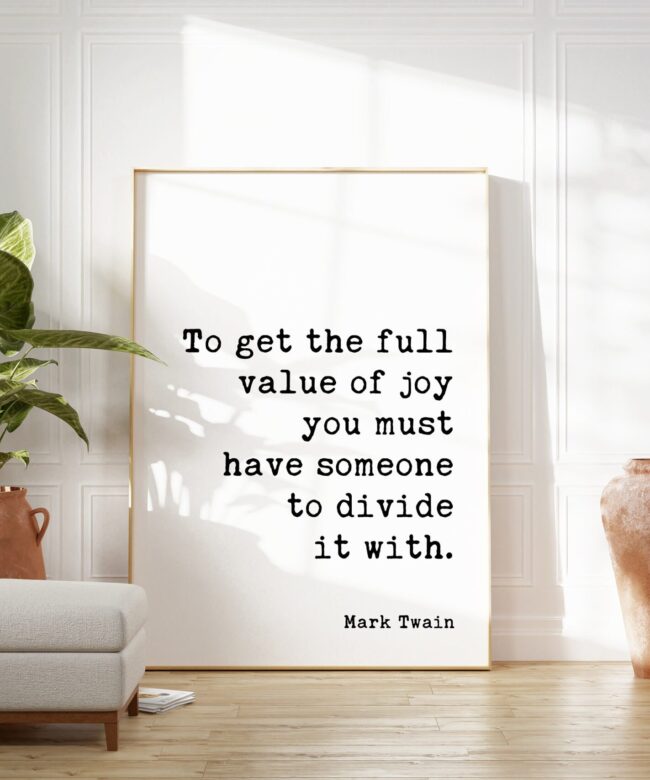 Mark Twain Quote – To get the full value of joy you must have someone to divide it with. Typography Art Print – Love – Wedding – Anniversary