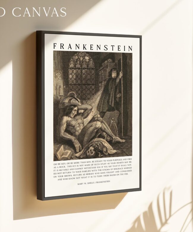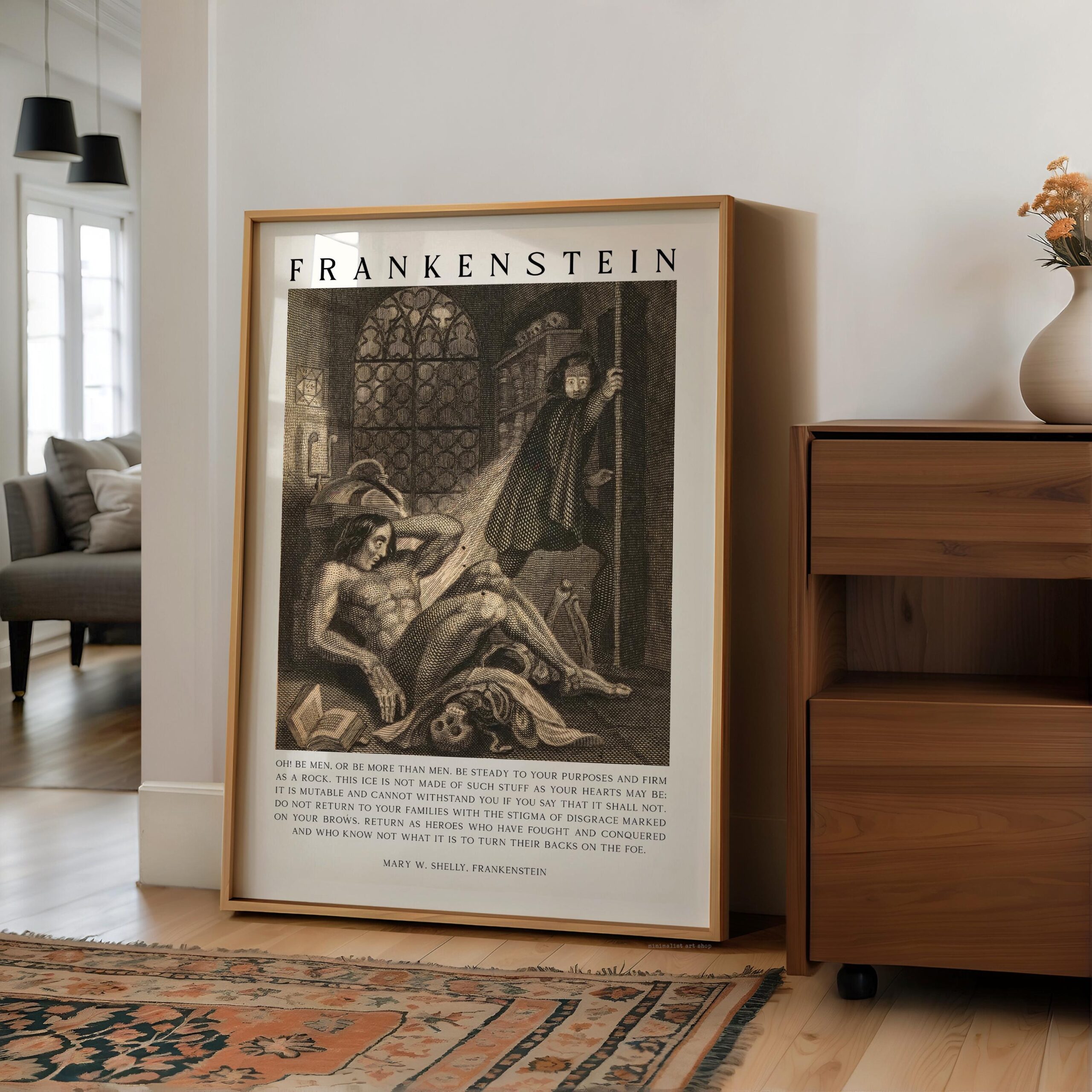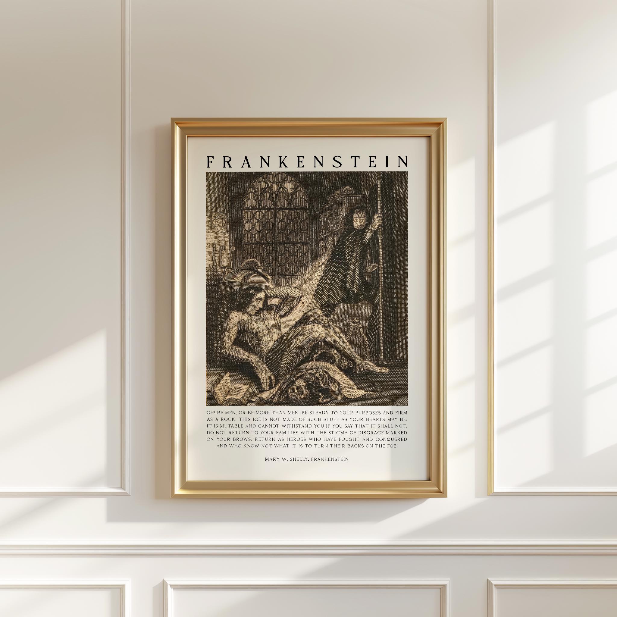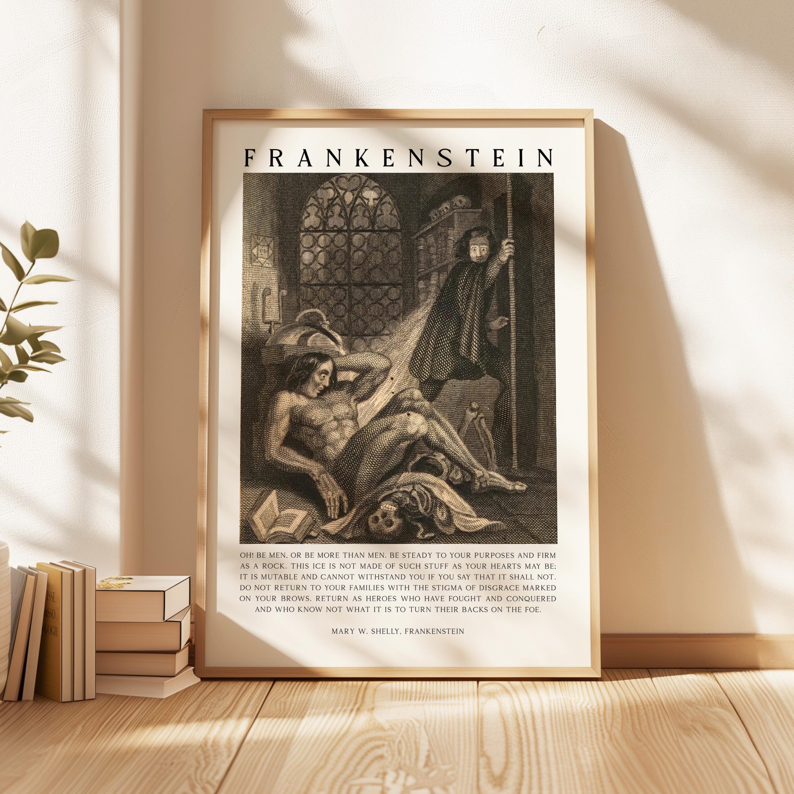 This elegant typography print pairs an 1831 Frankenstein engraving by W. Chevalier with one of the novel’s most evocative excerpts. Both powerful and poetic, it reflects Mary Shelley’s vision of creation, courage, and the human spirit. Printed with crisp, timeless typography, it’s a stunning addition to any home.