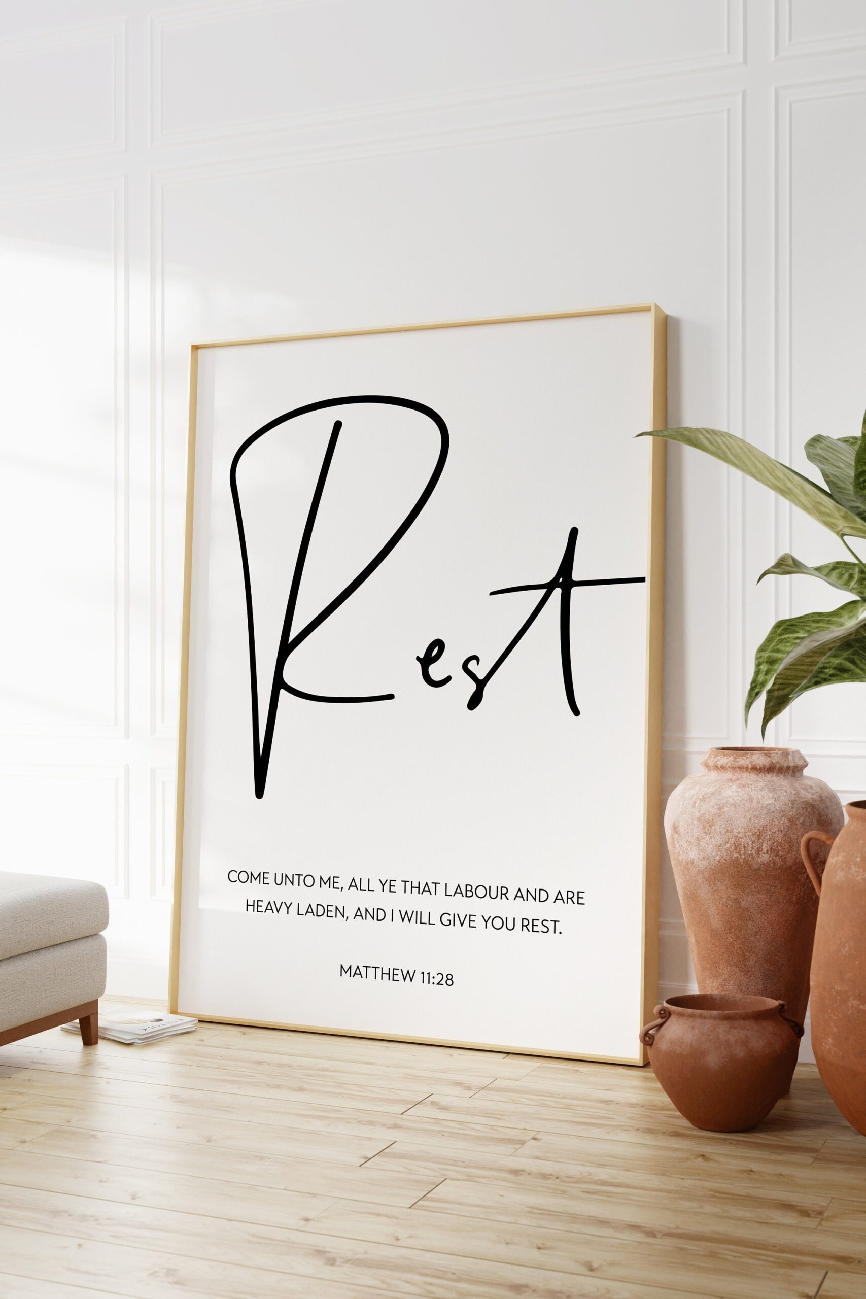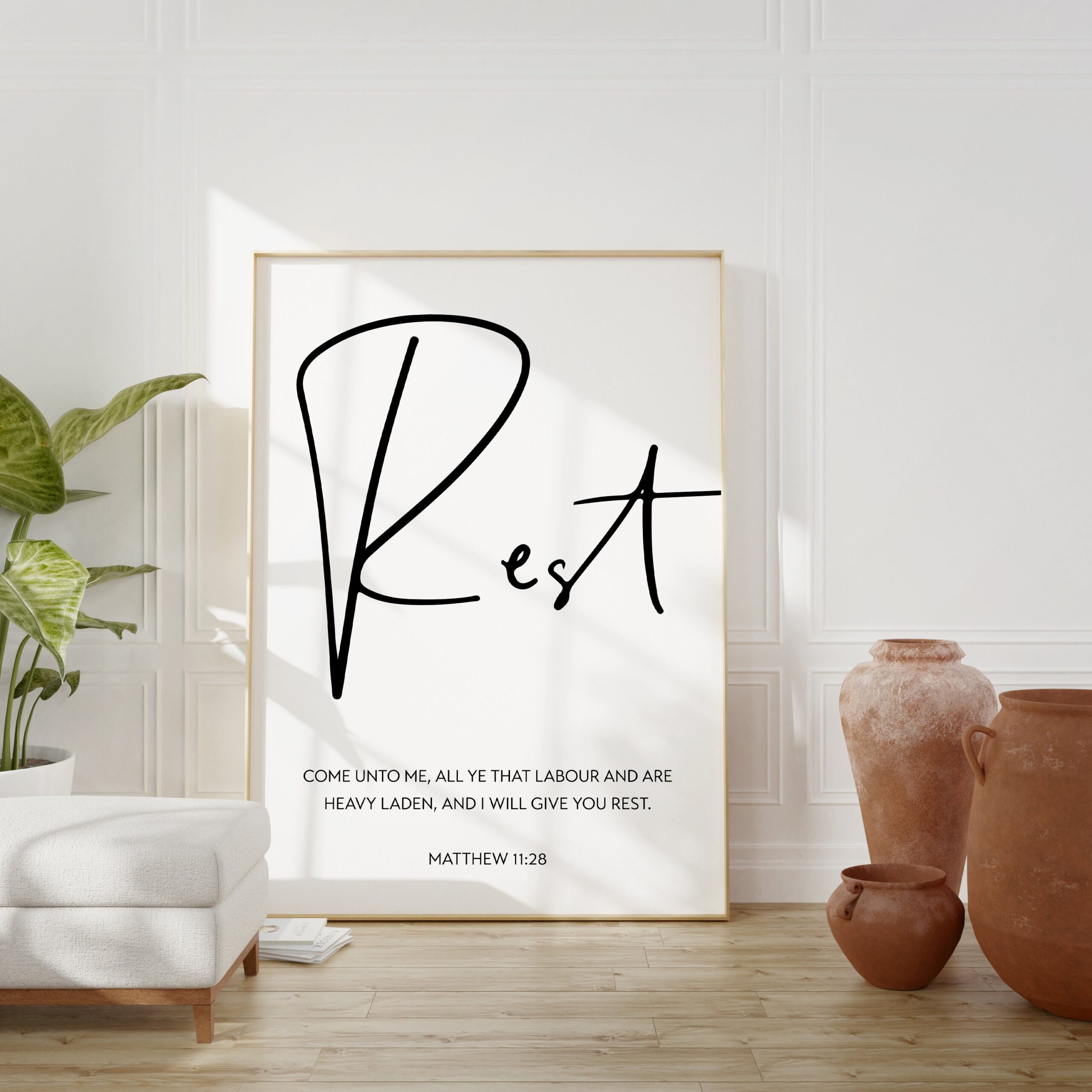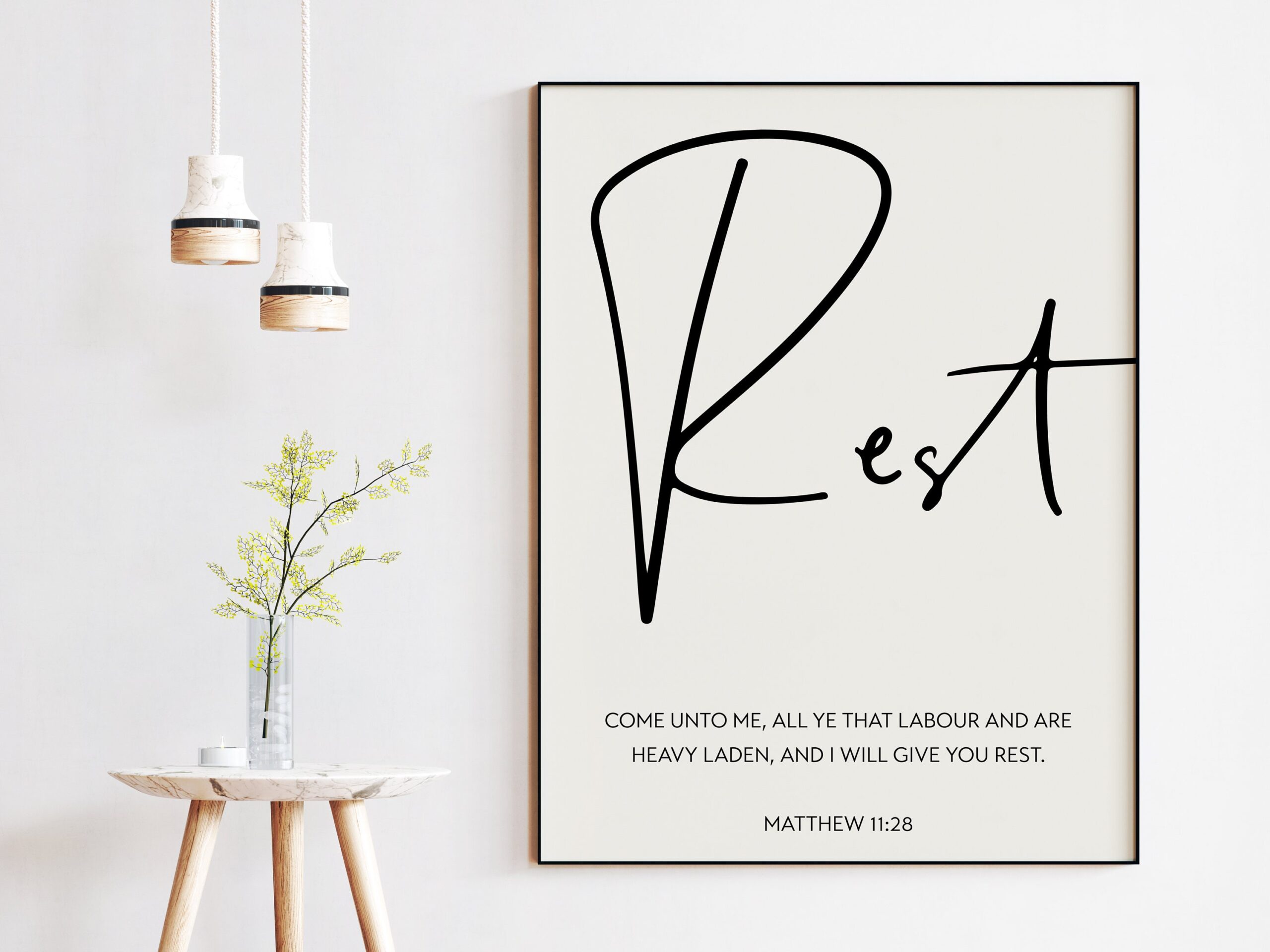 Matthew 11:28 – Come unto me, all ye that labour and are heavy laden, and I will give you rest. Art Print – Religious Scripture