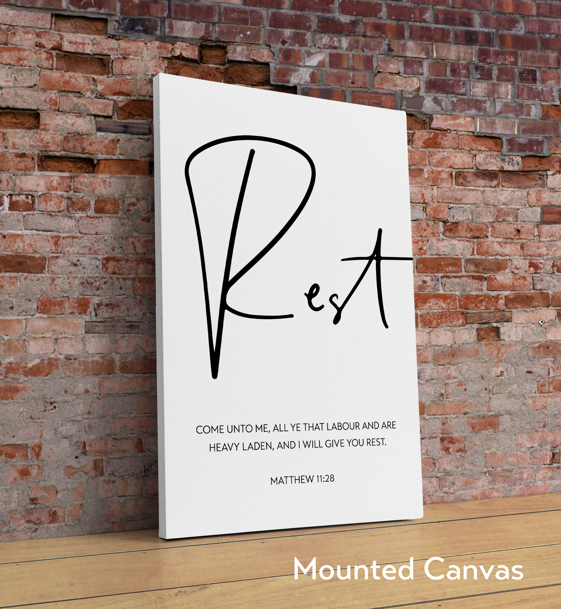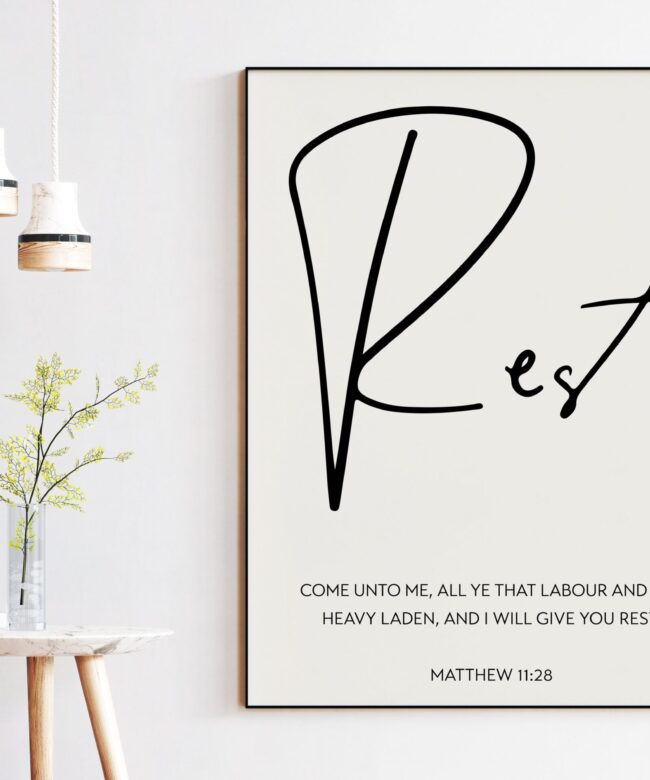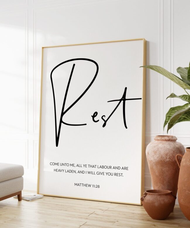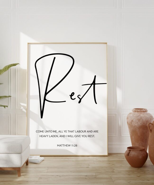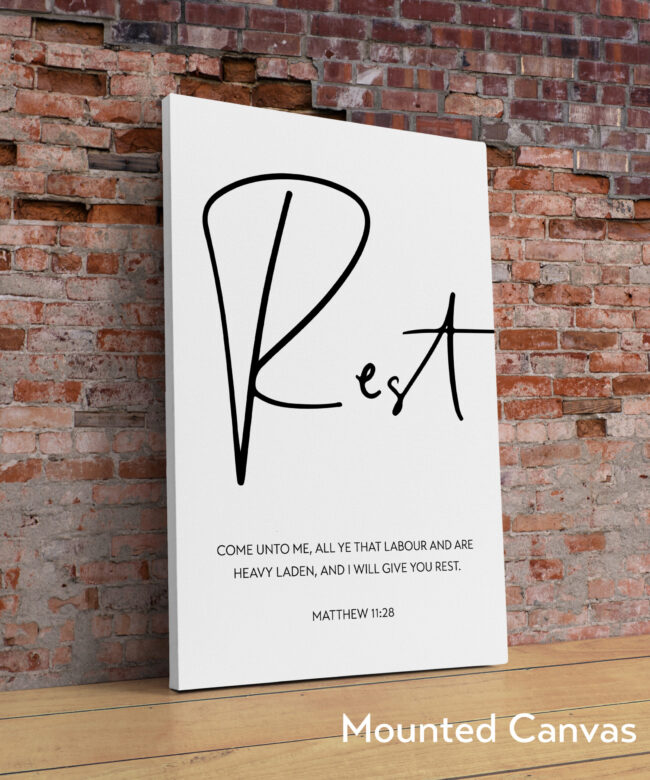 Matthew 11:28 – Come unto me, all ye that labour and are heavy laden, and I will give you rest. Art Print – Religious Scripture