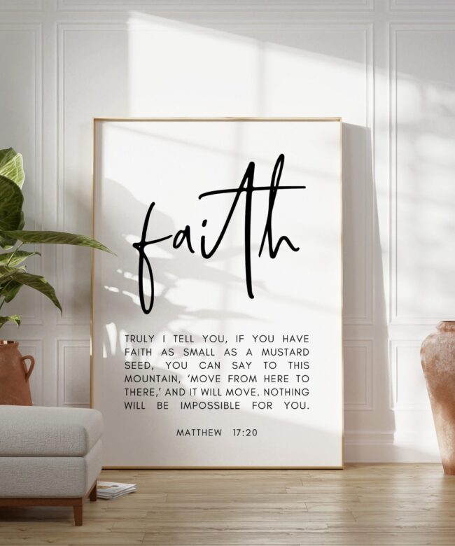 Matthew 17:20 Faith as Small as a Mustard Seed Art Print – Religious Scripture – Bible Verse Art – Christian – Modern Wall Art