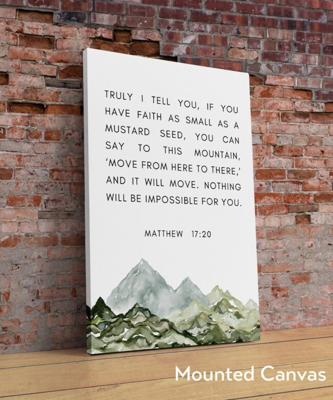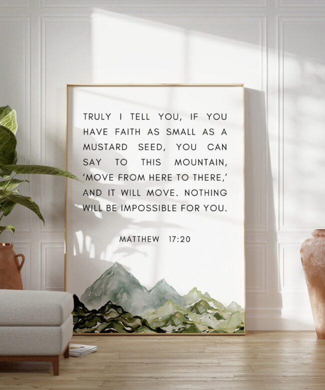 Matthew 17:20 Faith as Small as a Mustard Seed Art Print – Watercolor Mountains – Religious Scripture – Bible Verse – Christian – Inspire