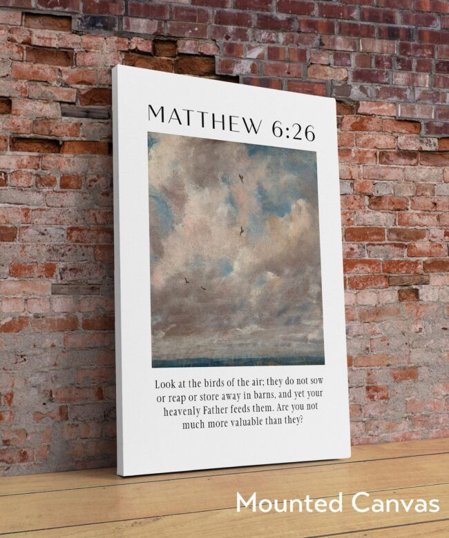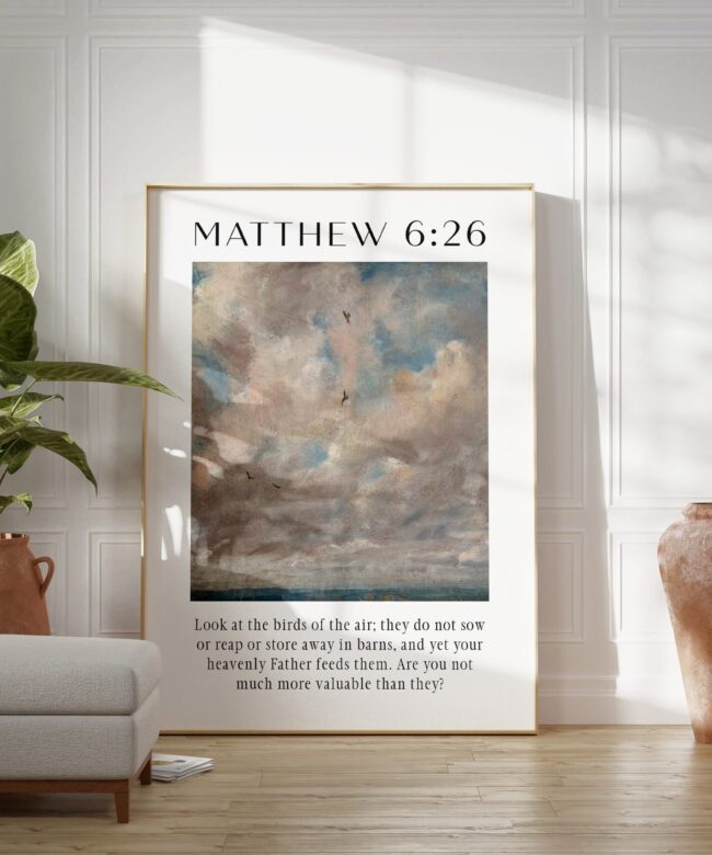 Matthew 6:26 – Look at the birds of the air; they do not sow or reap or store away in barns. Typography Art Print – John Constable