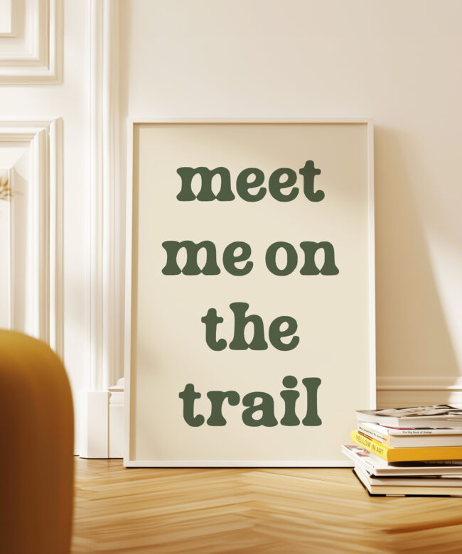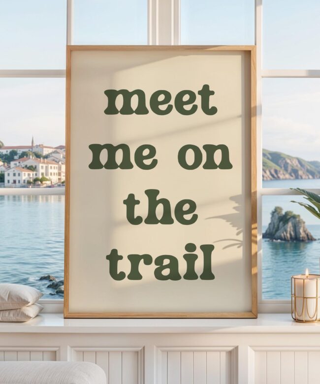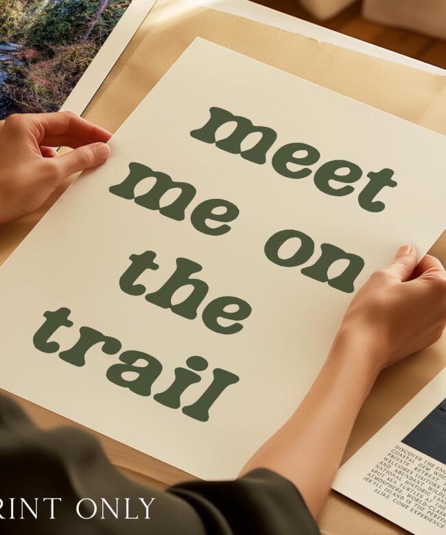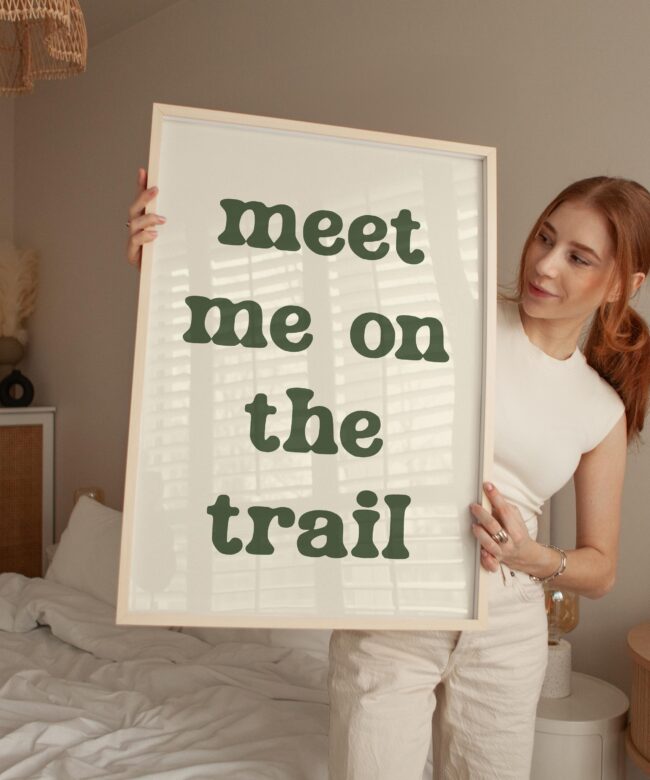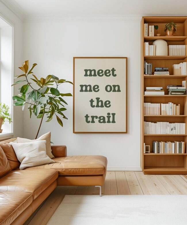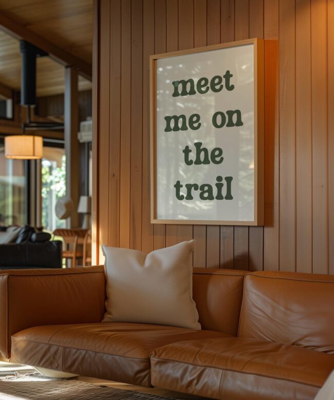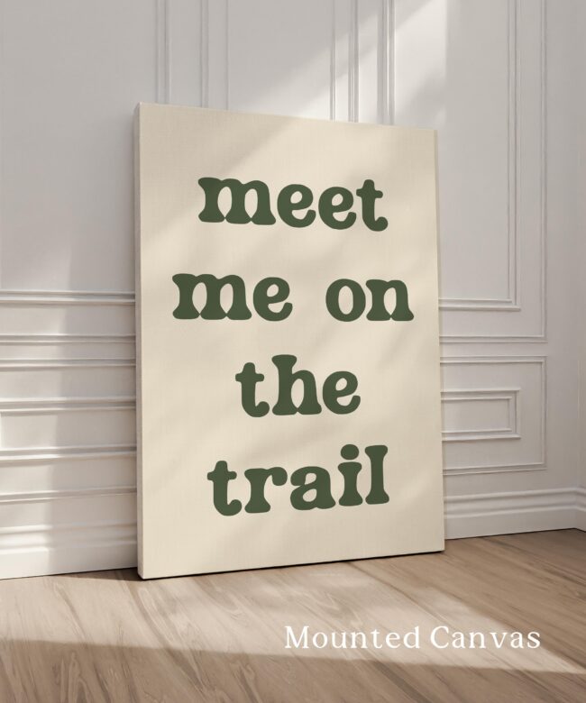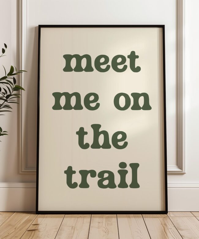 Bring the spirit of the outdoors indoors with this “Meet Me on the Trail” wall art print. Its minimalist design and earthy tone make it a versatile statement piece that complements rustic, modern, or nature-inspired decor.