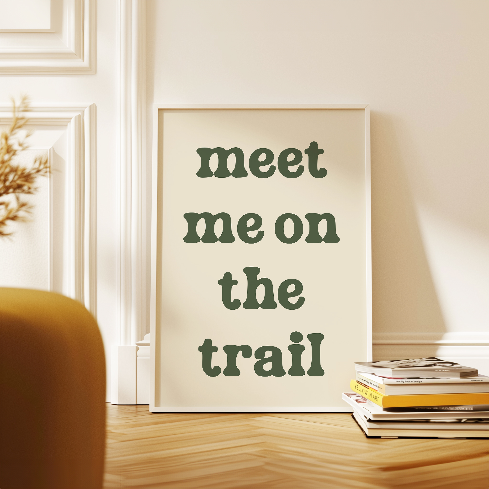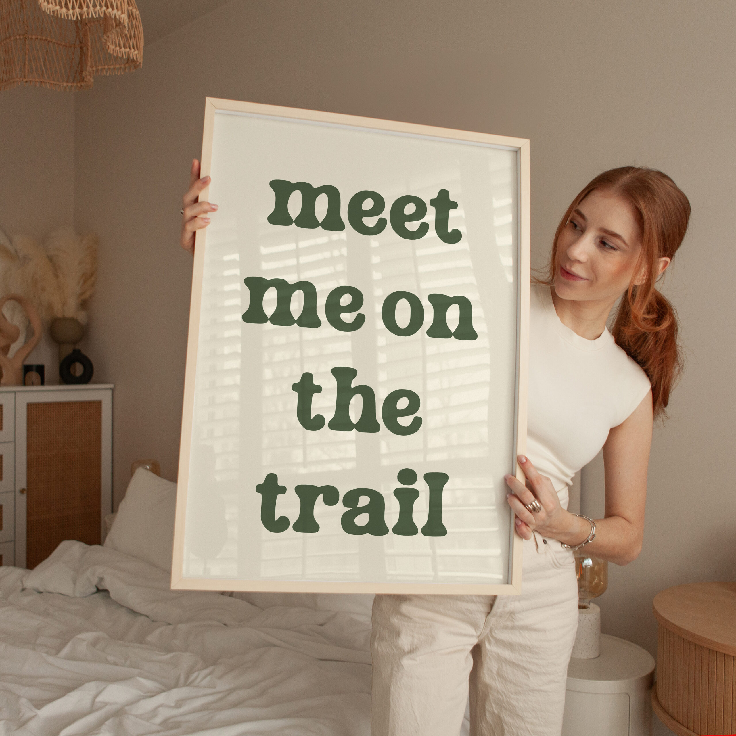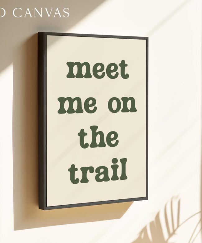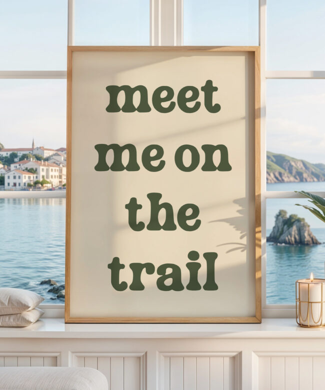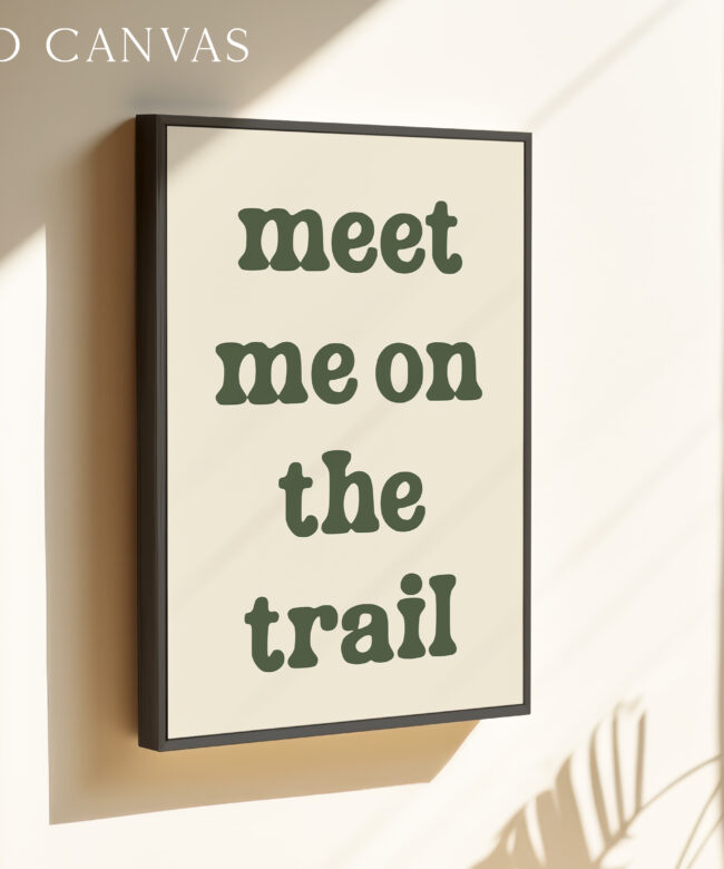 Bring the spirit of the outdoors indoors with this “Meet Me on the Trail” wall art print. Its minimalist design and earthy tone make it a versatile statement piece that complements rustic, modern, or nature-inspired decor.