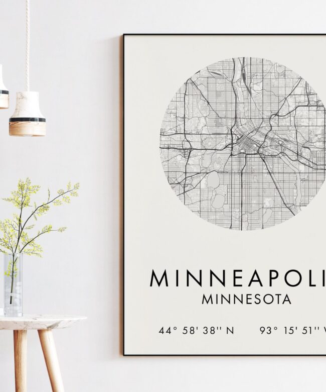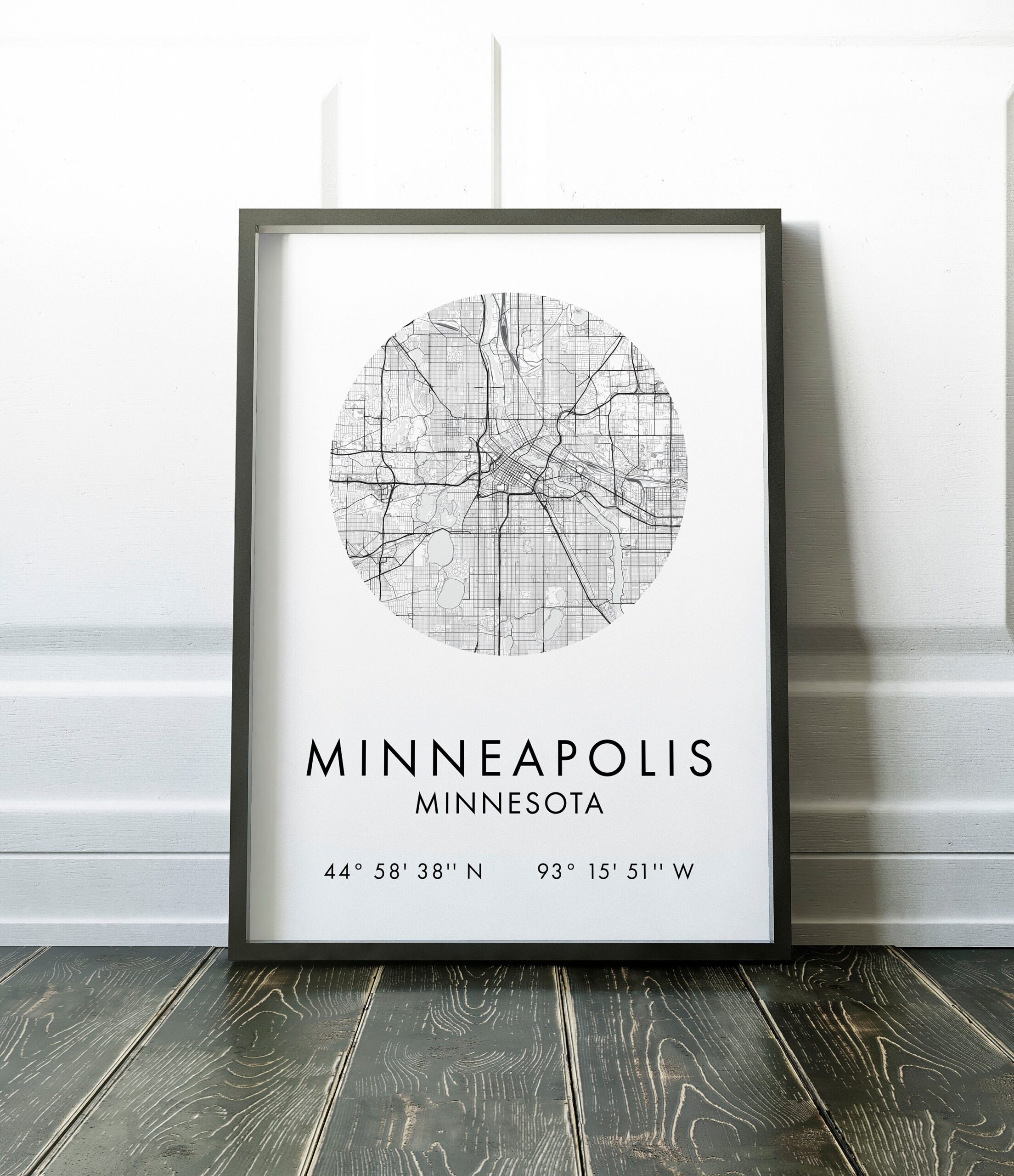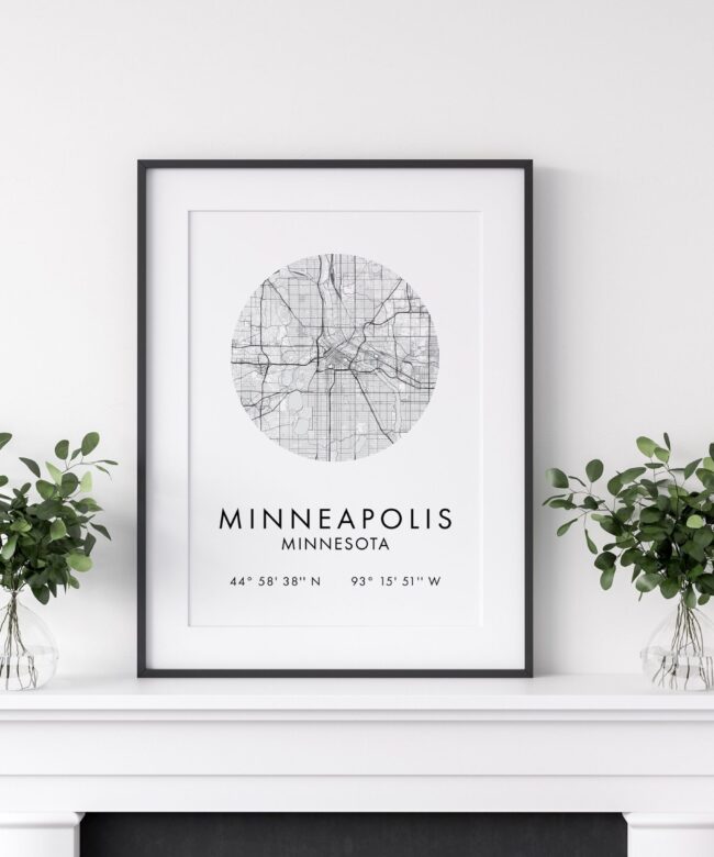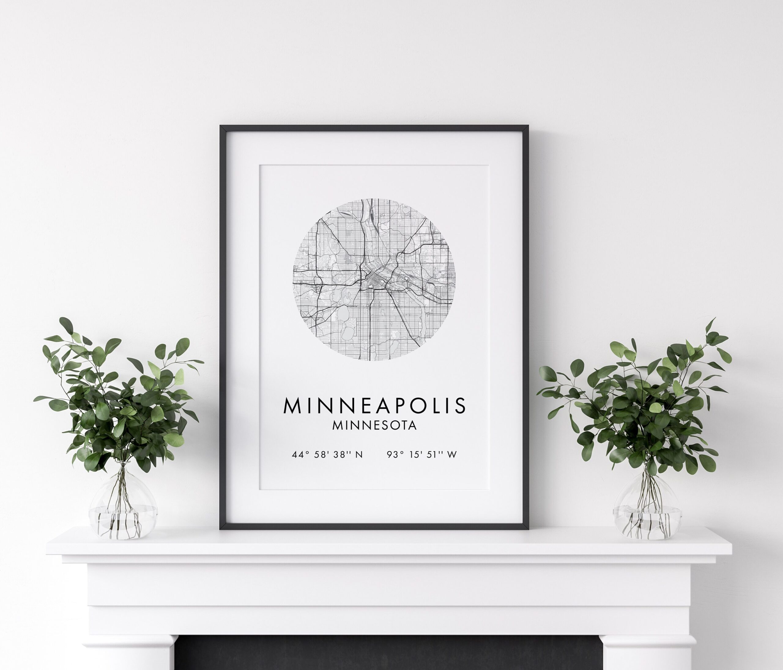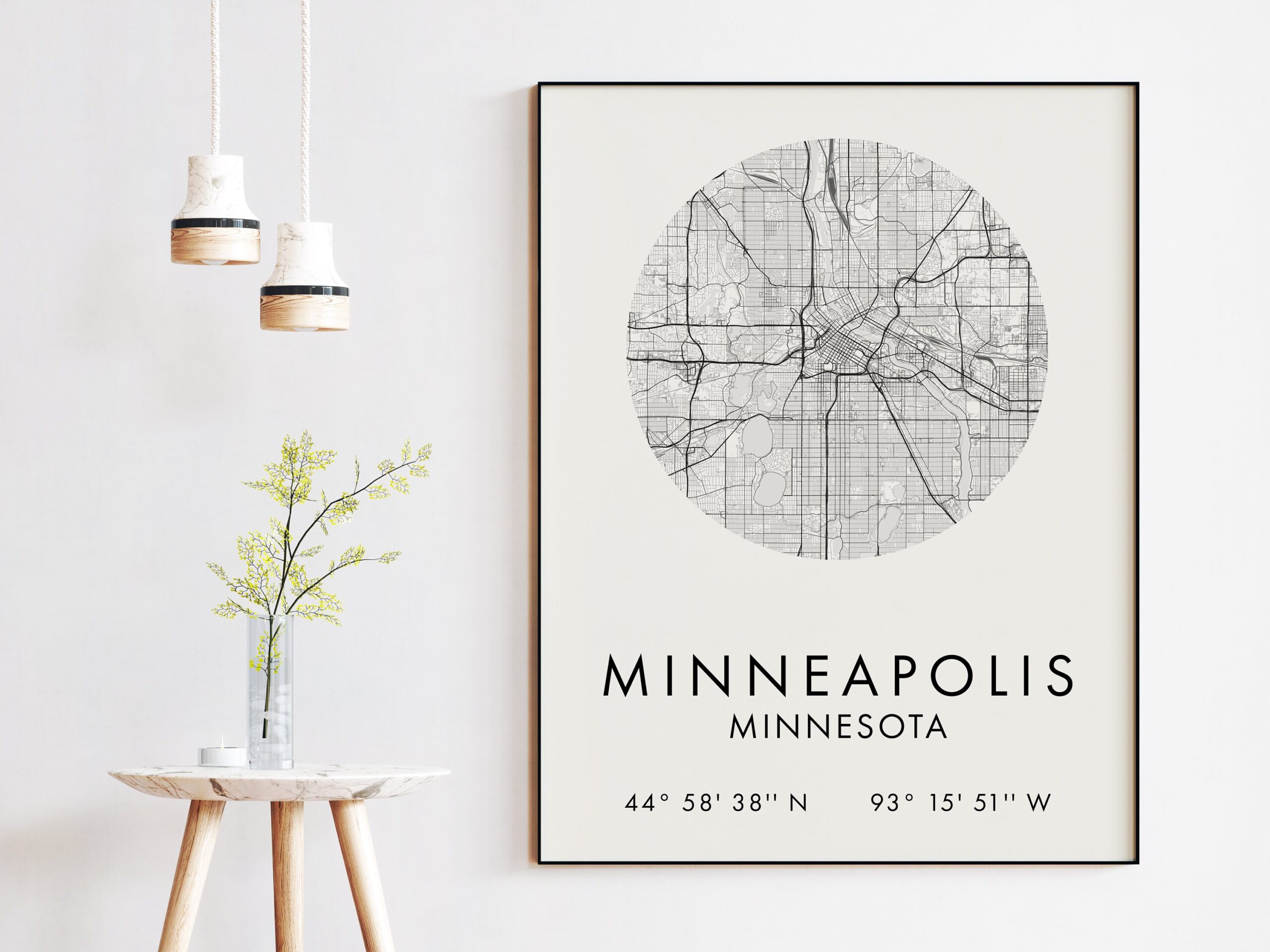 Minneapolis, Minnesota City Street Map with GPS Coordinates Art Print – Office – Home Decor – Restaurant – Apartment – Condo – Typography