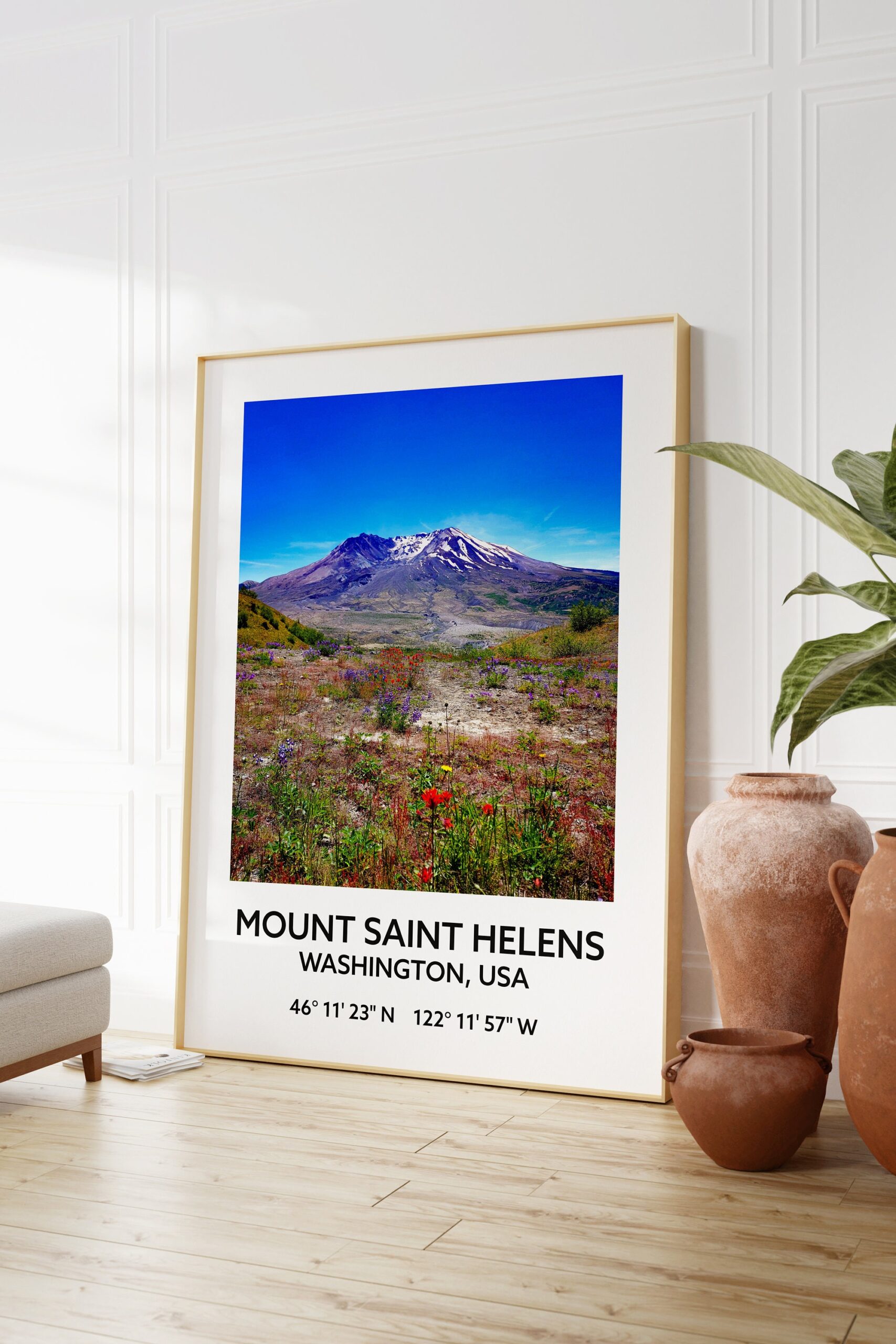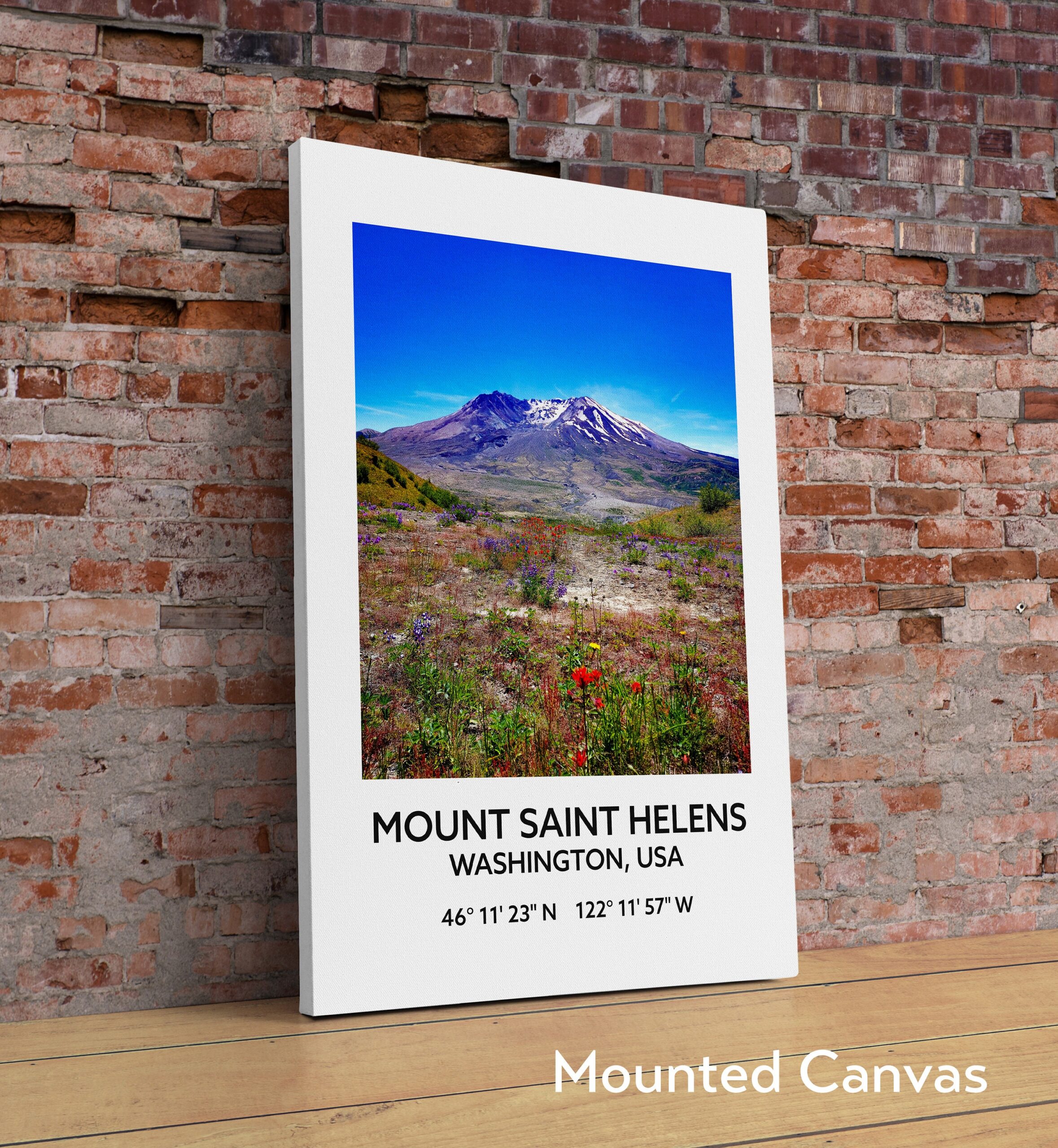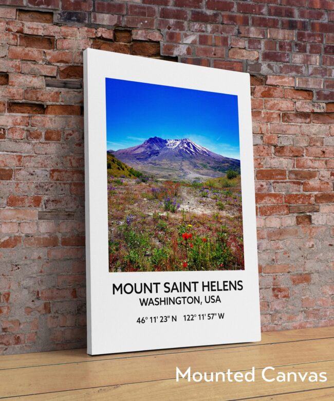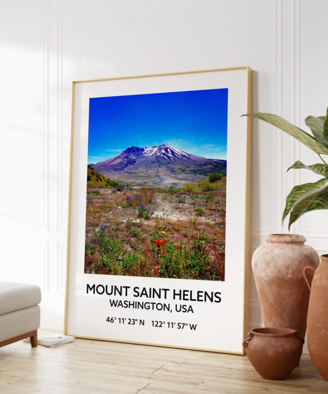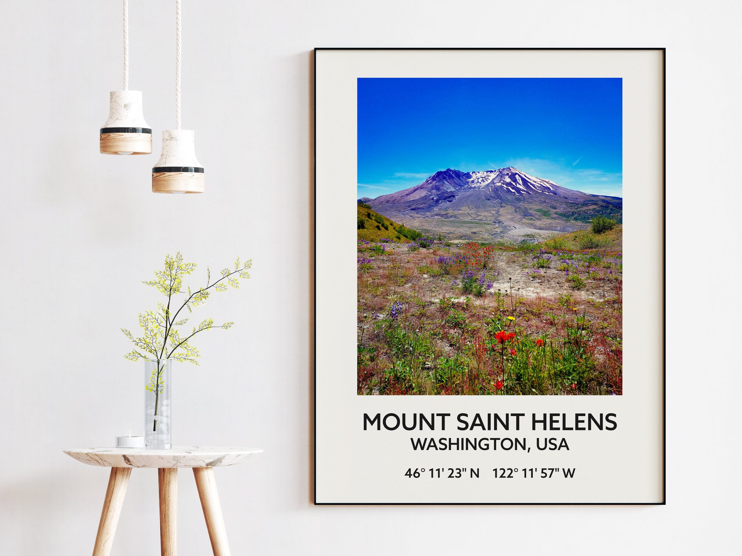 Mount Saint Helens Washington USA with GPS Coordinates Art Print – Travel – Hiking – Nature – Wildflowers – Explore – Photography