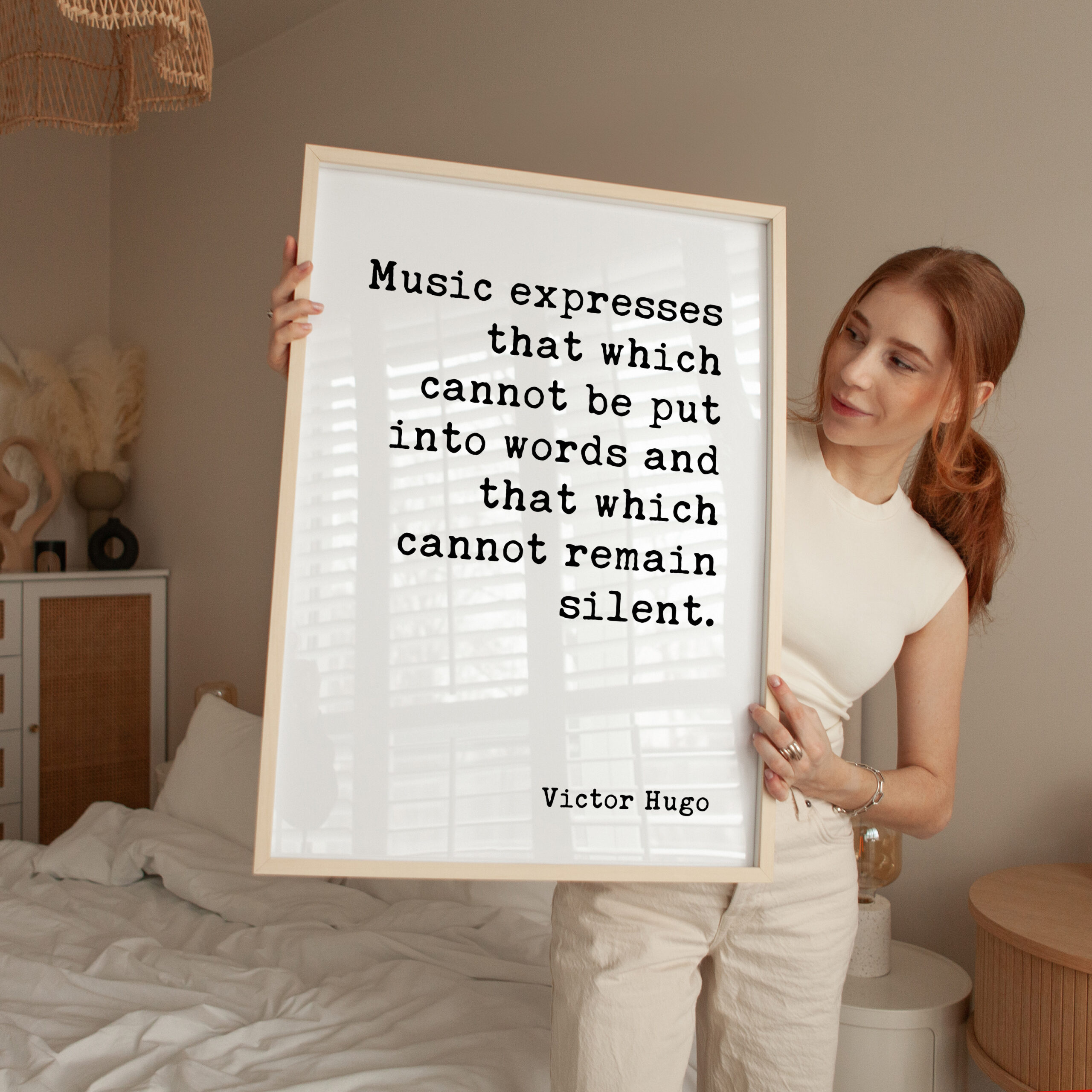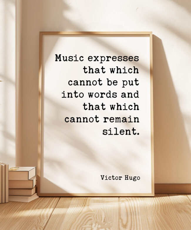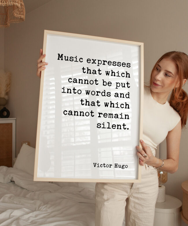 Add a timeless quote by Victor Hugo to your walls with this minimalist typography art print. “Music expresses that which cannot be put into words and that which cannot remain silent” serves as a gentle reminder of the unspoken power and beauty of music. Perfect for music lovers, musicians, and anyone who feels connected to the language of sound, this print will bring elegance and inspiration to any room. Whether you hang it in your living room, studio, or music room, it’s certain to resonate deeply with all who see it.