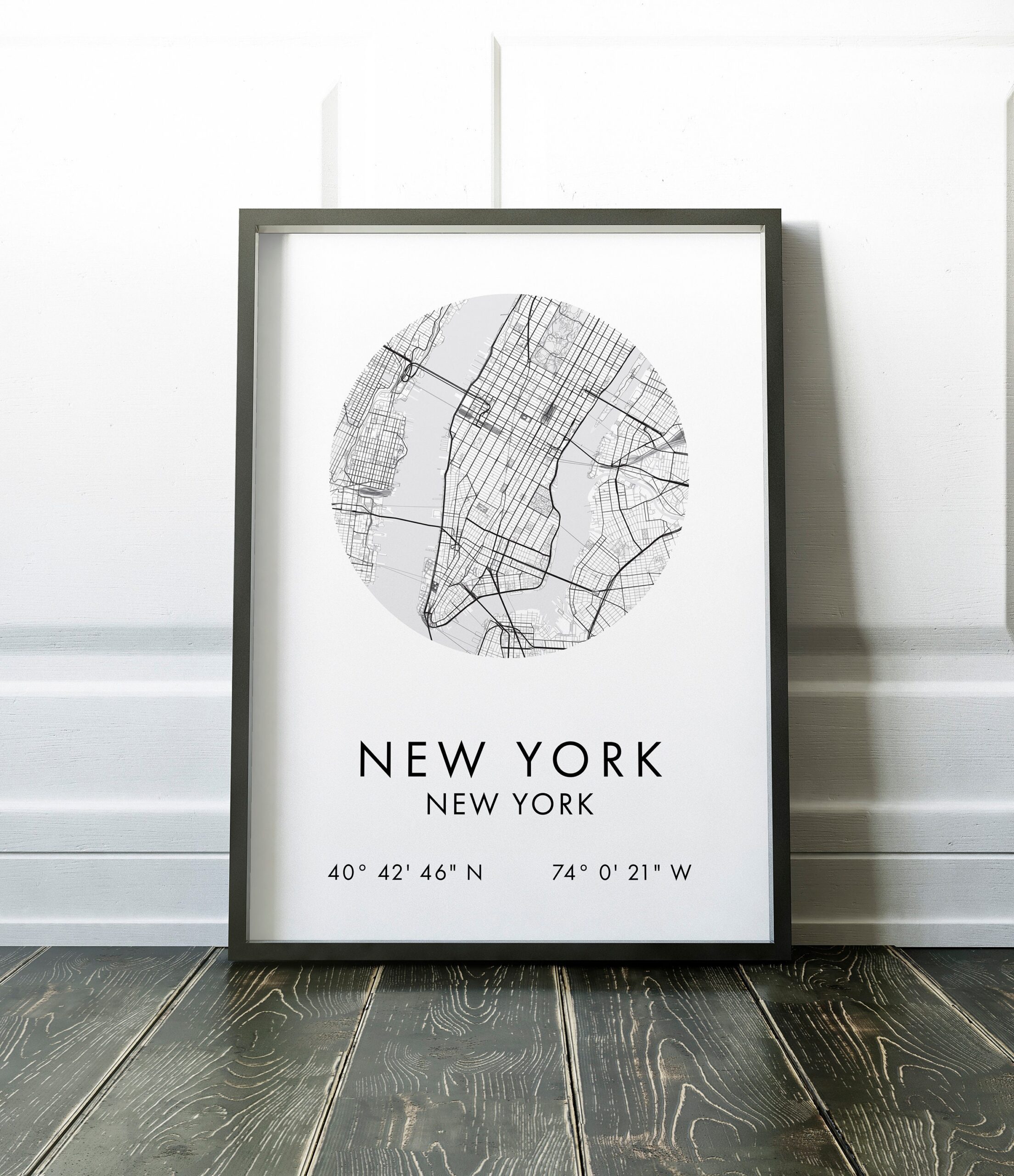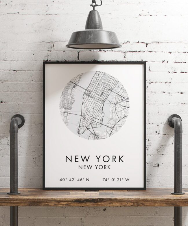 New York, NY City Street Map with GPS Coordinates Art Print – Office – Home Decor – Restaurant – Apartment – Condo – Typography