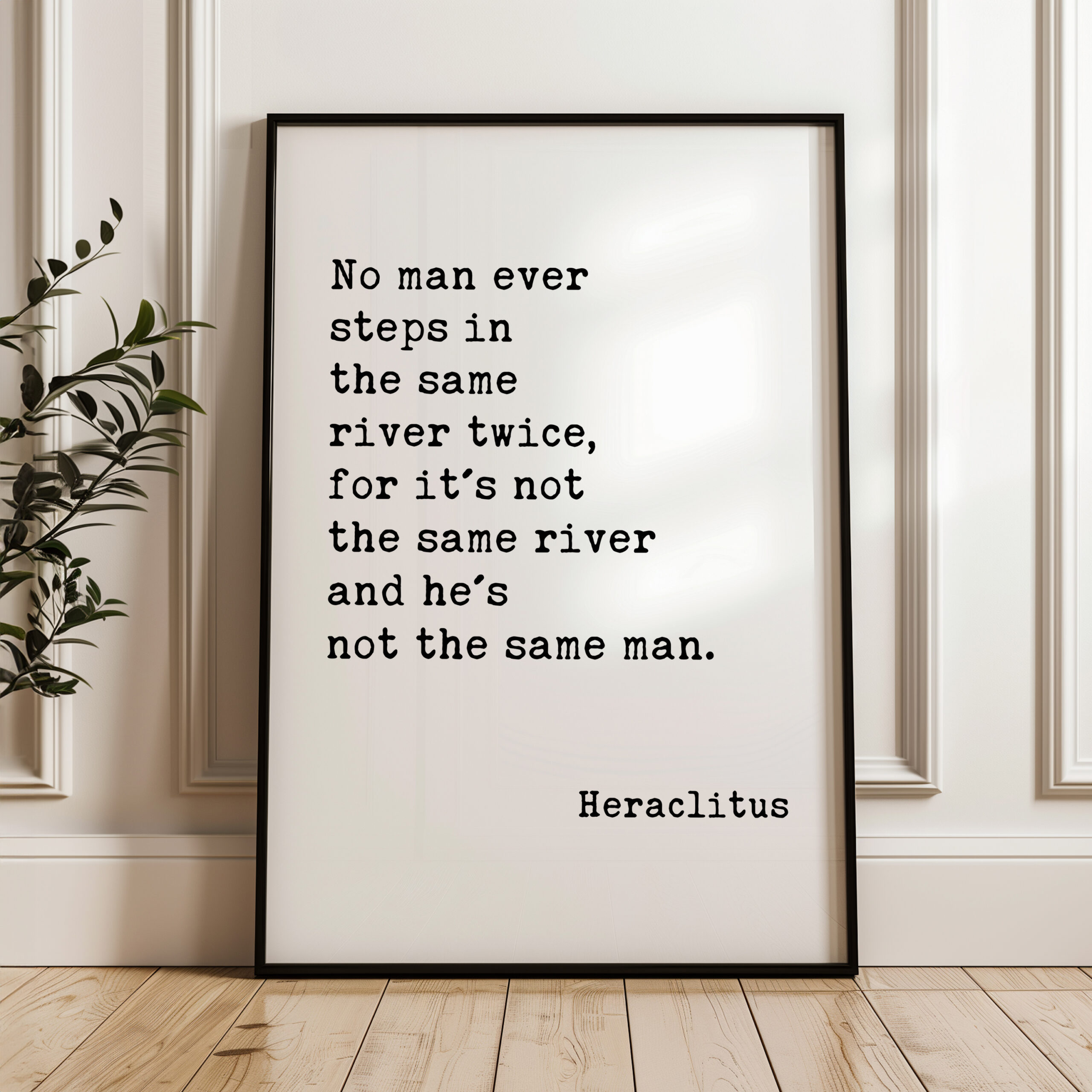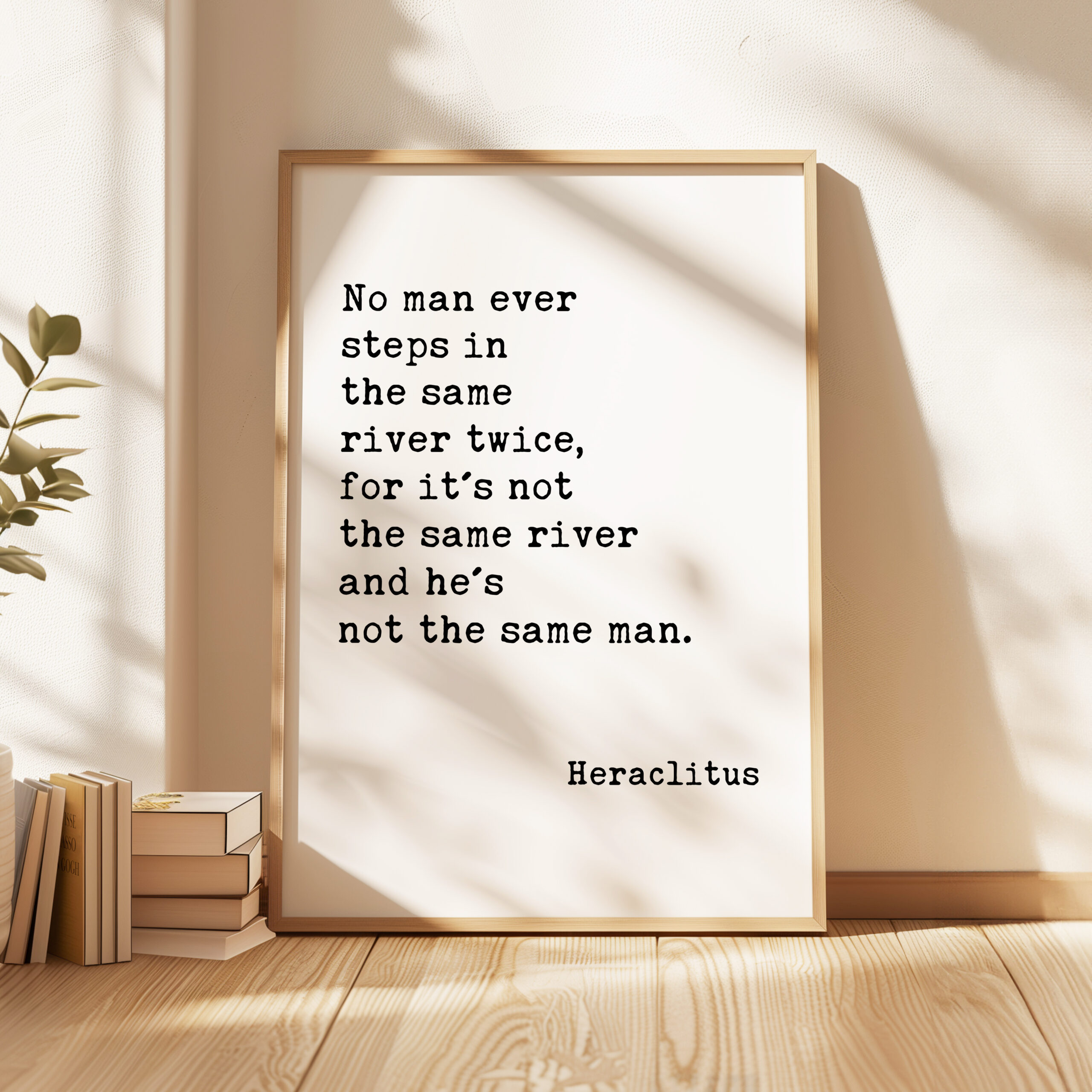 Embrace the ever-changing nature of life with this captivating typography art print featuring the profound words of Heraclitus.