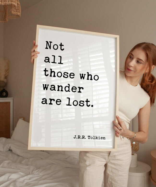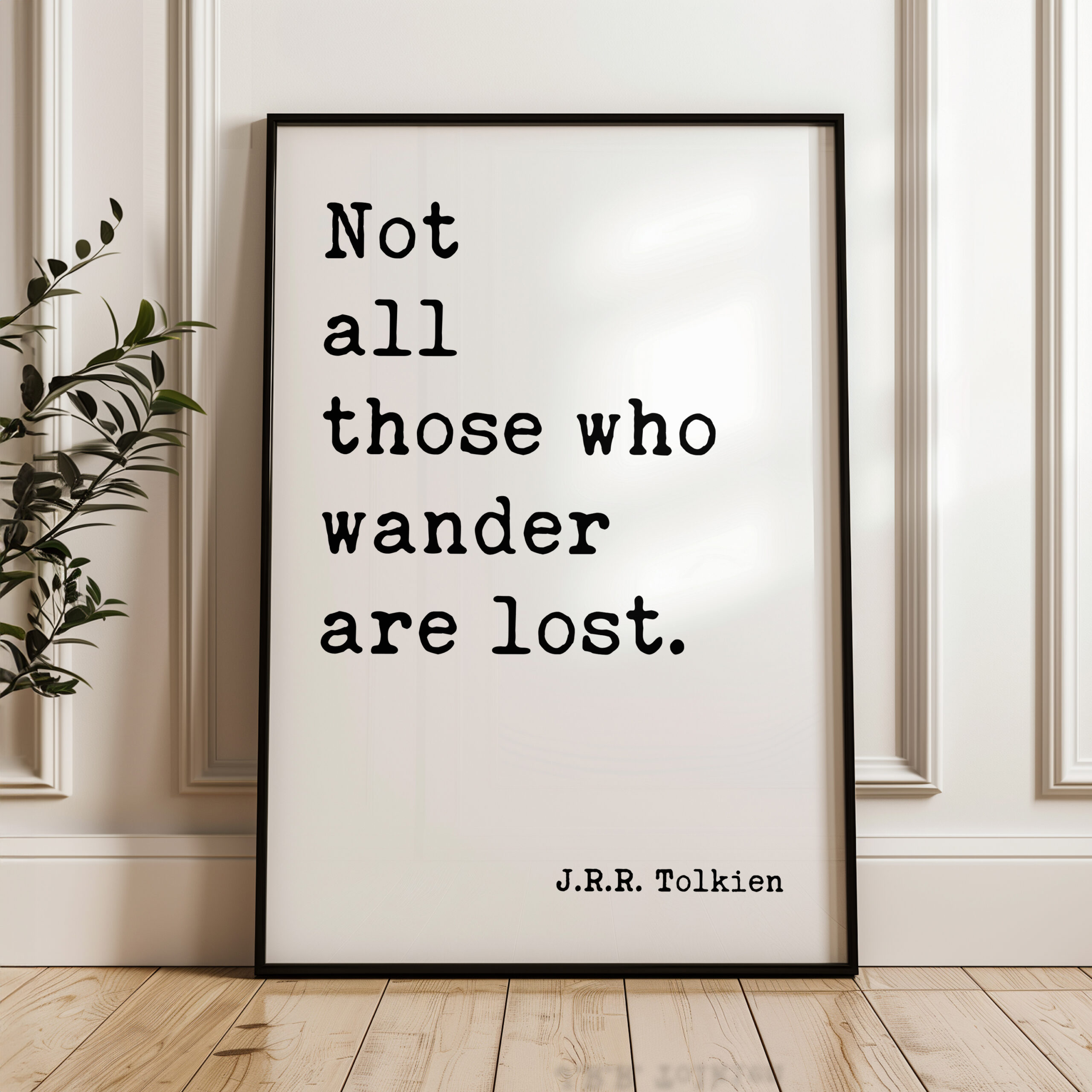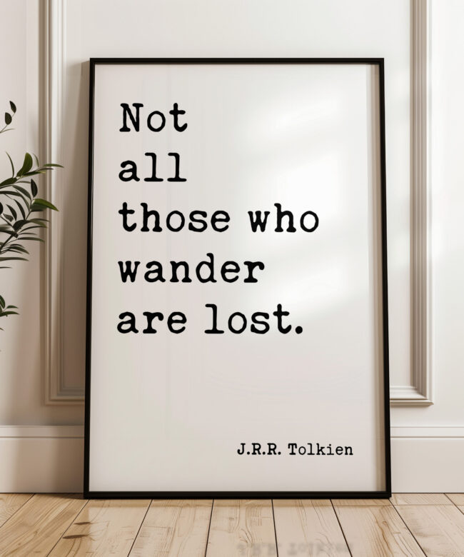 Celebrate the spirit of adventure with our Typography Art Print featuring the inspiring words of J.R.R. Tolkien: “Not all those who wander are lost.” This print beautifully captures the essence of exploration and the freedom found in wandering. Perfect for any space, whether it’s your living room, bedroom, or home office, it serves as a daily reminder to embrace life’s journey. Gift it to a fellow adventurer, or keep it for yourself as a token of motivation.