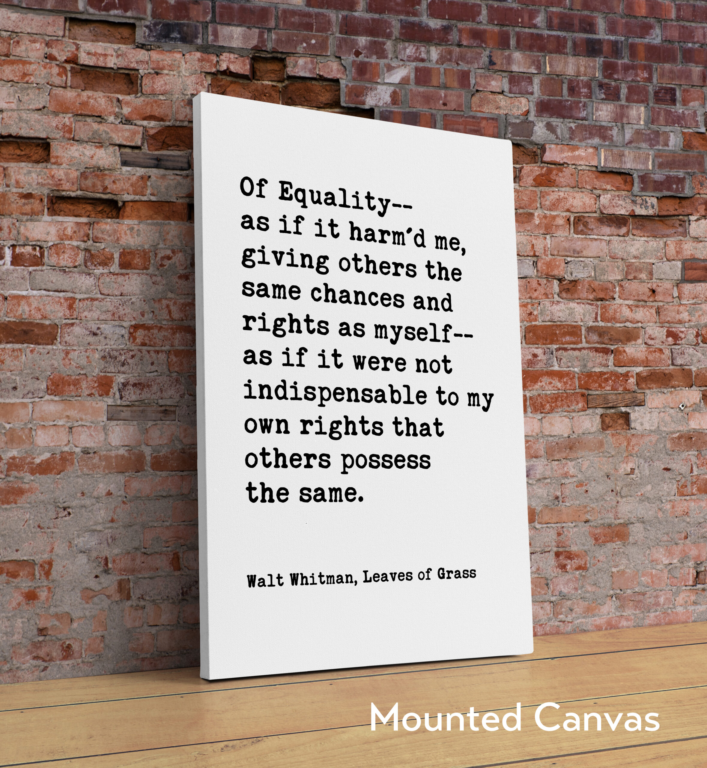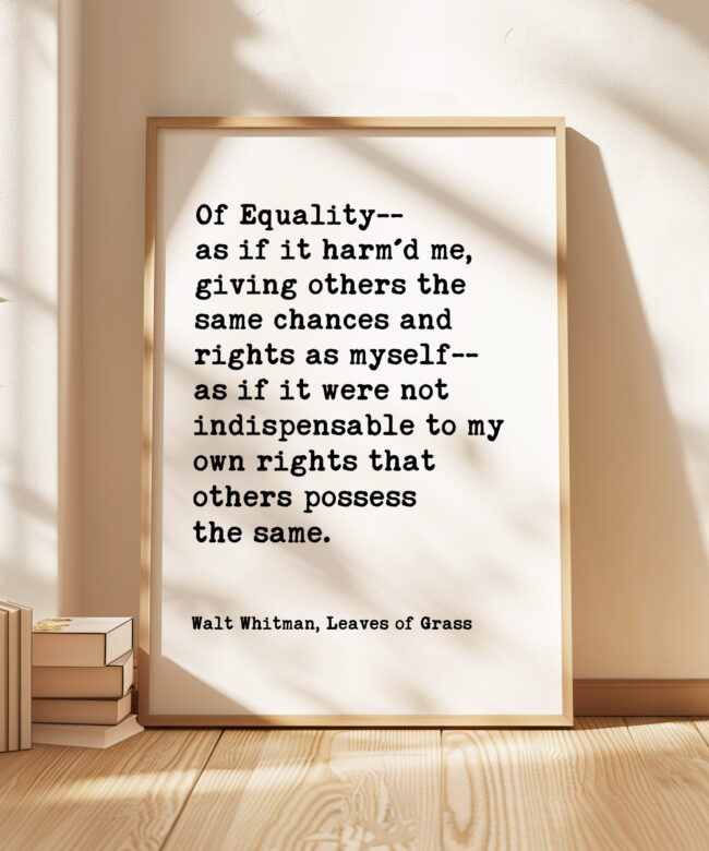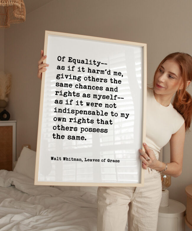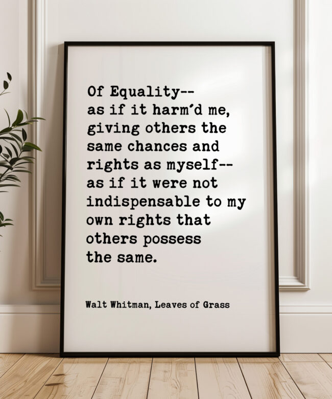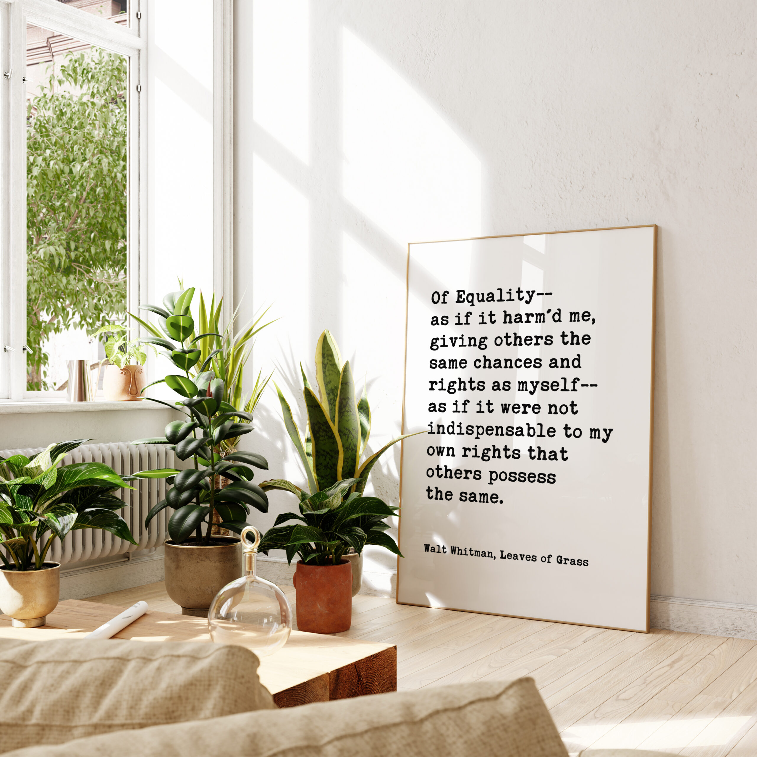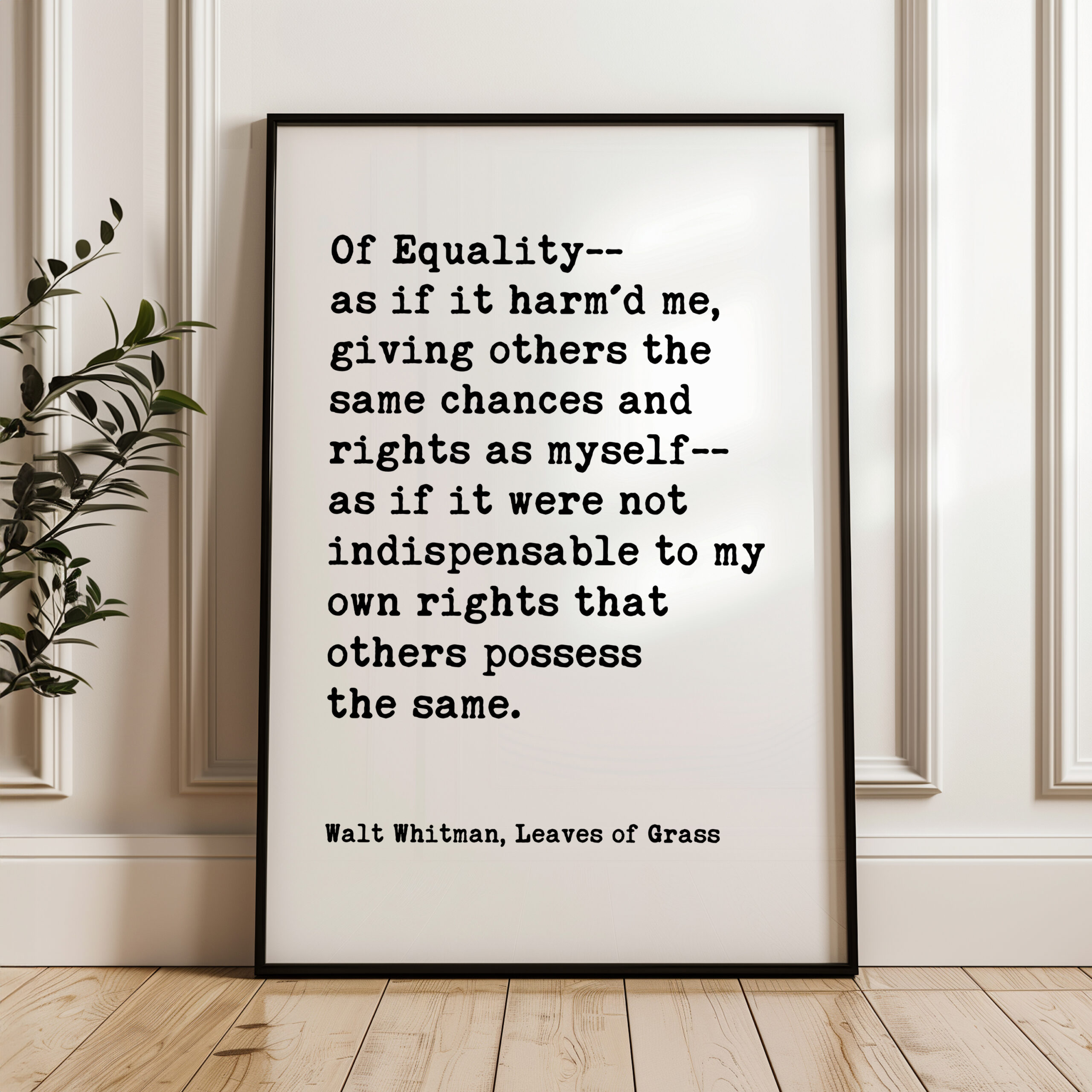 Of Equality– as if it harm’d me, giving others the same chances and rights as myself… Walt Whitman Quote Typography Art Print