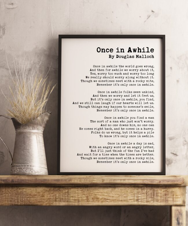 Once in Awhile Poem by Douglas Malloch – Classic Poetry – Typography Art Print – Inspirational Poem – Encouragement – Affirmation