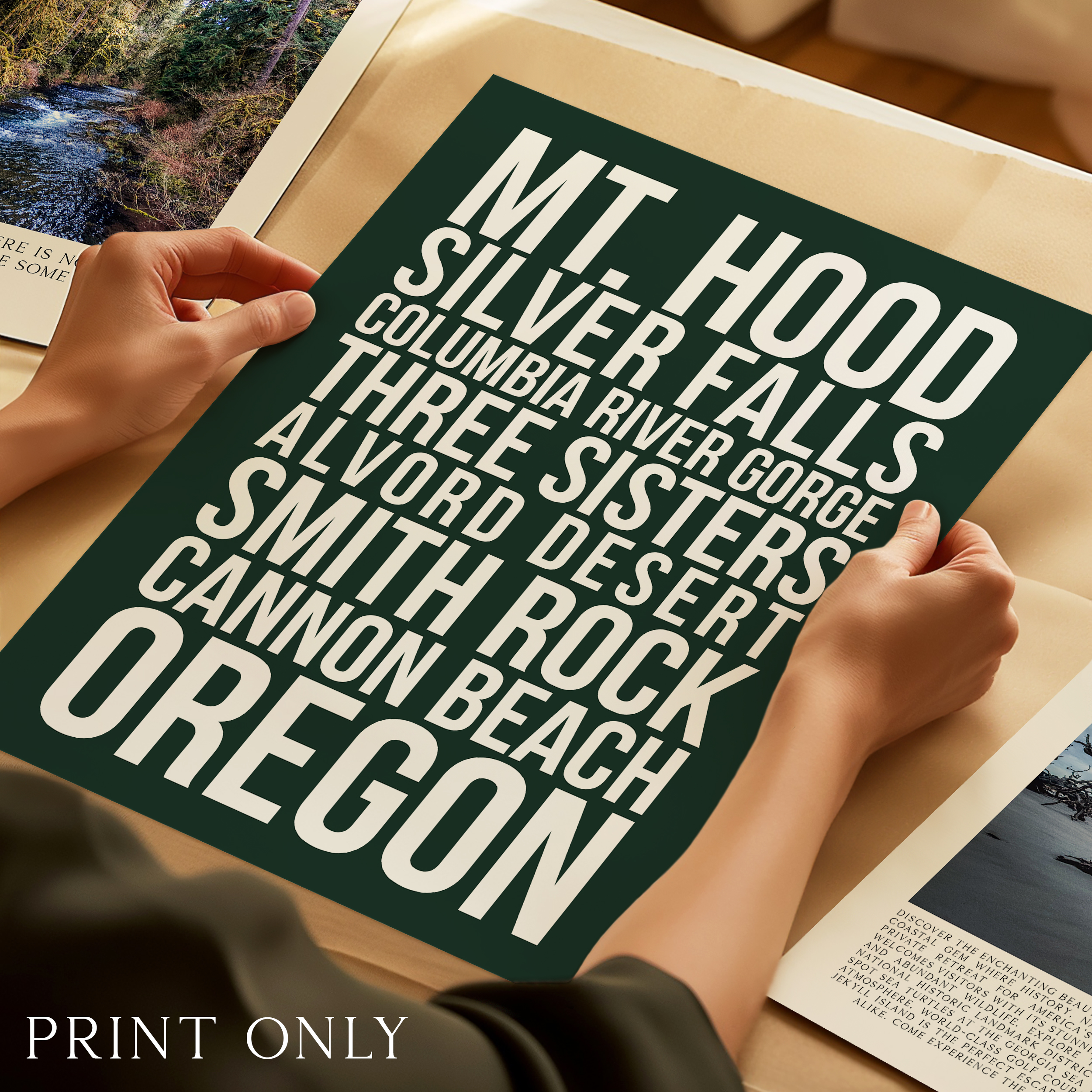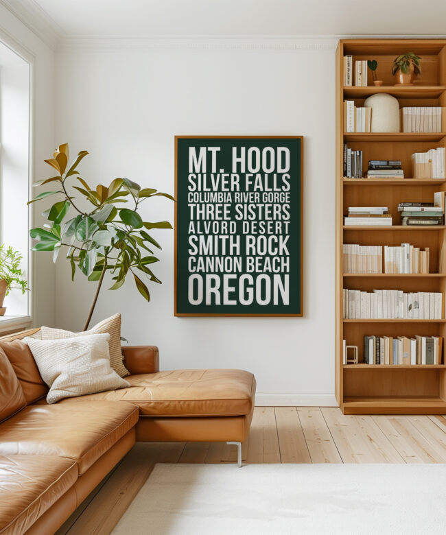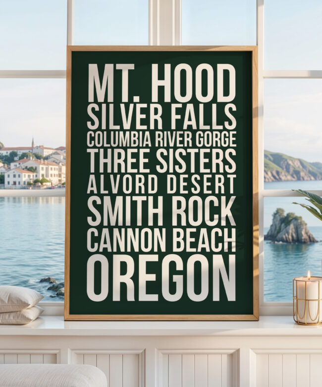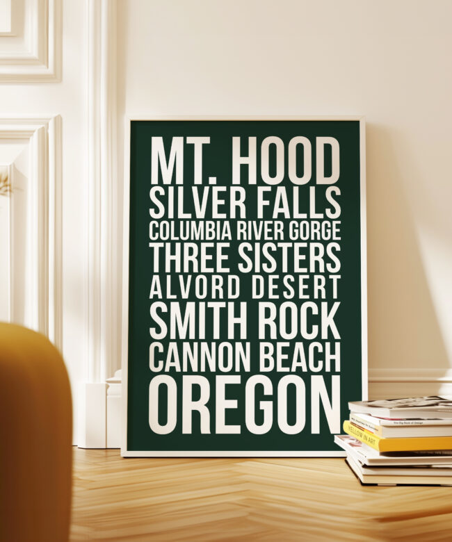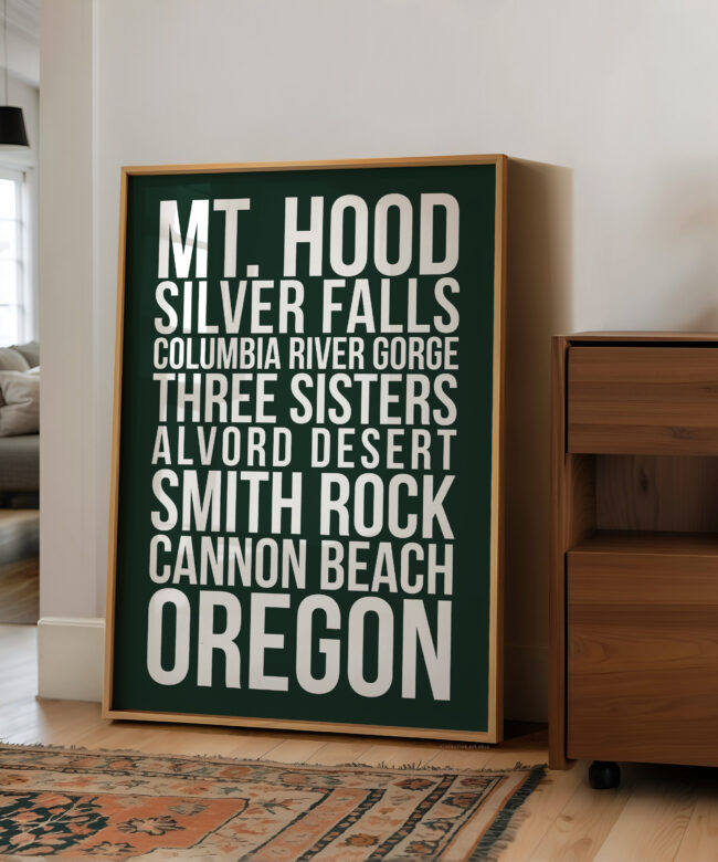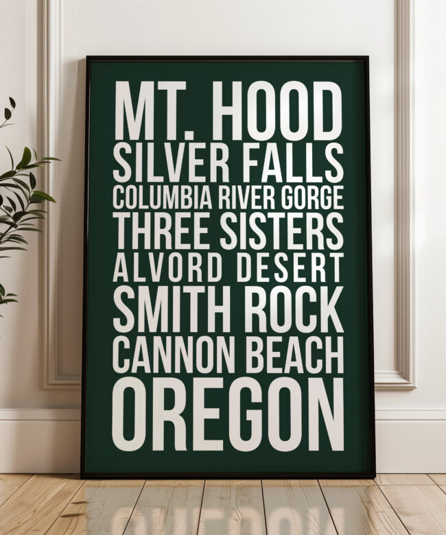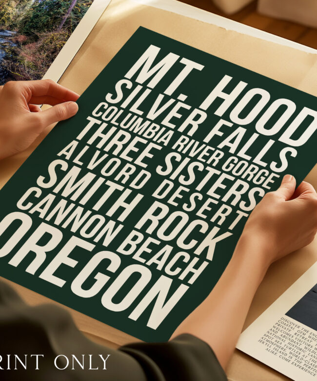 Designed with clean typography and a striking modern layout, this print is perfect for Oregon locals, travelers, hikers, and outdoor lovers who want to bring their favorite adventures home. Whether displayed in a living room, office, cabin, or travel-inspired space, this print makes a bold statement.