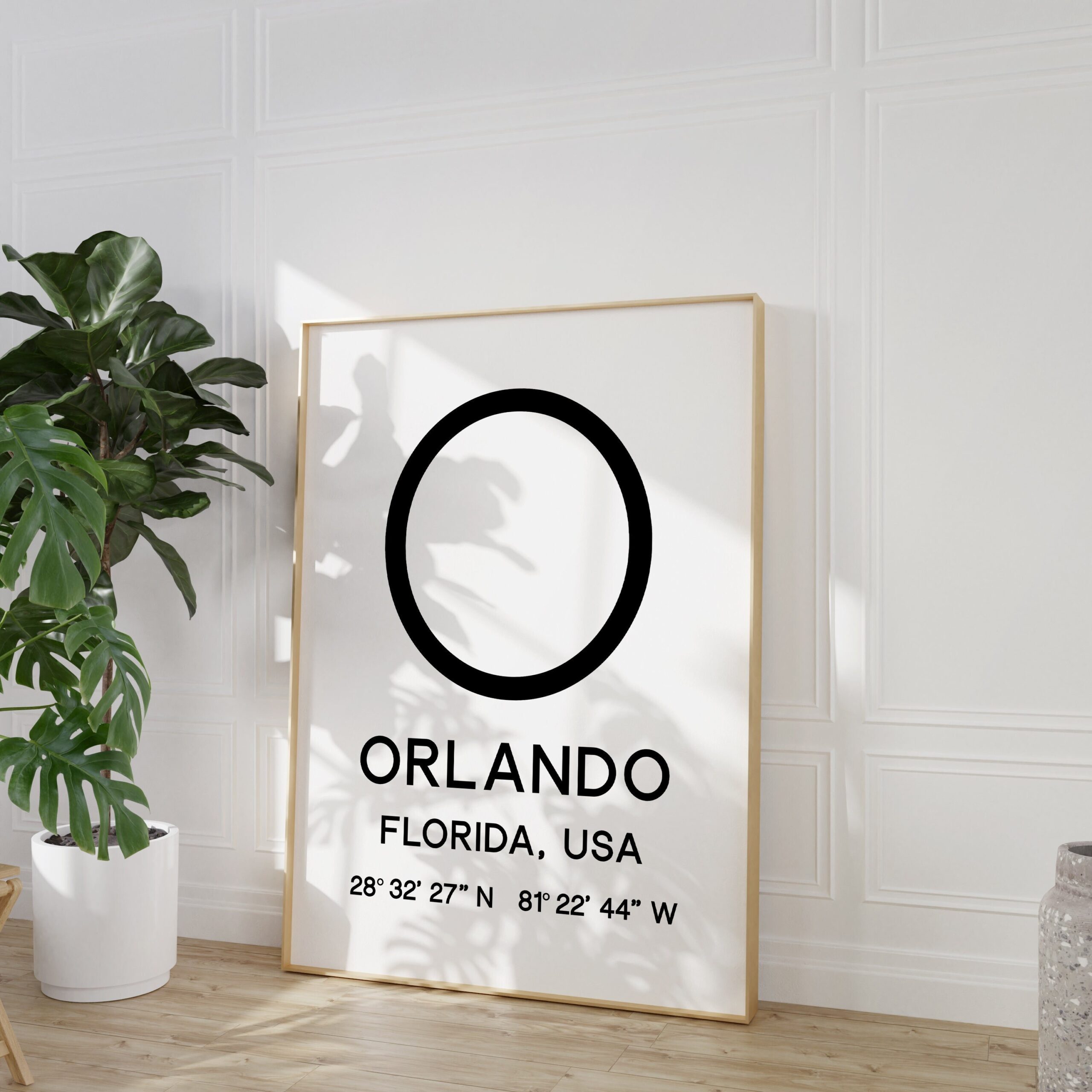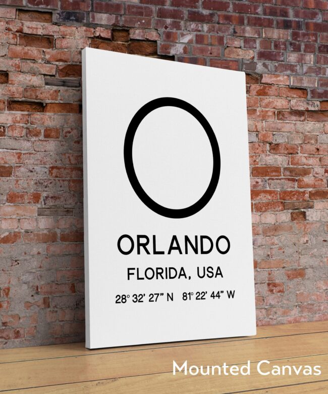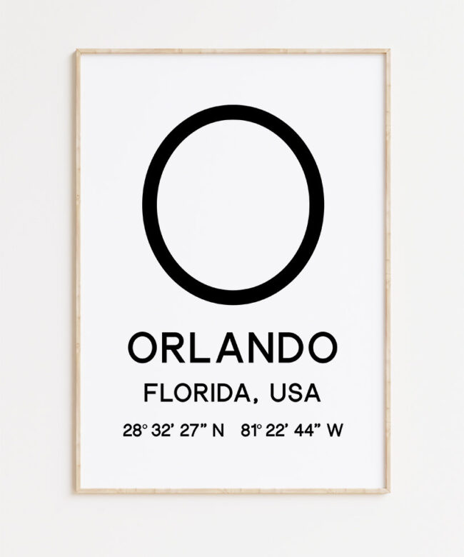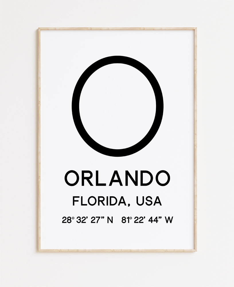 Orlando Florida with GPS Coordinates Typography Minimalist Art Print – Travel Home Decor