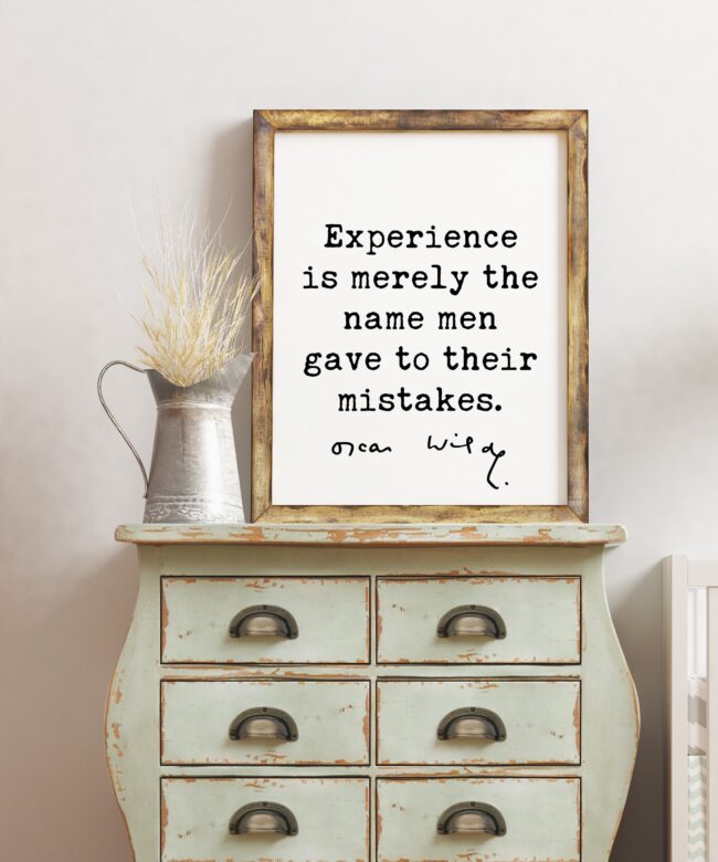 Oscar Wilde Quote – Experience is merely the name men gave to their mistakes. Art Print – Experience Quotes – Wisdom Quotes