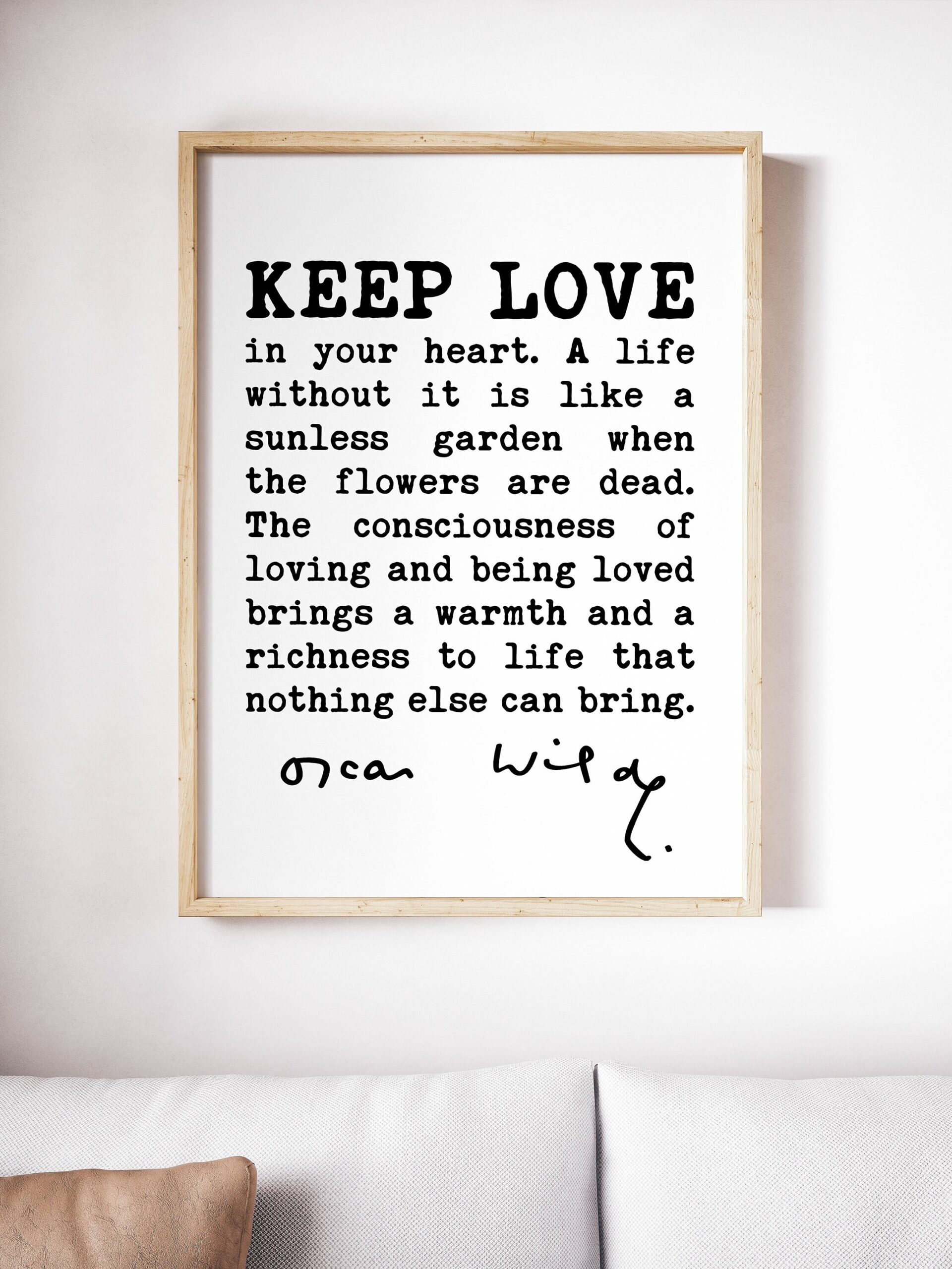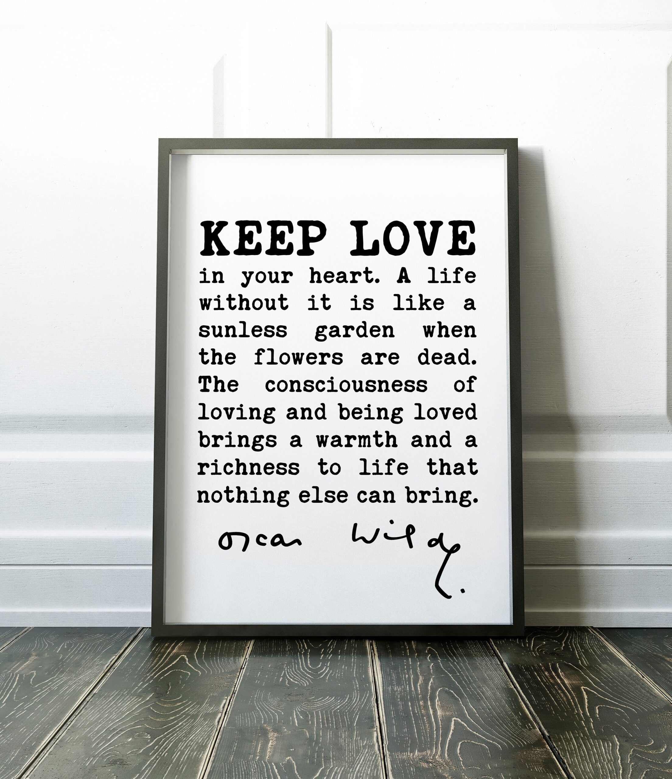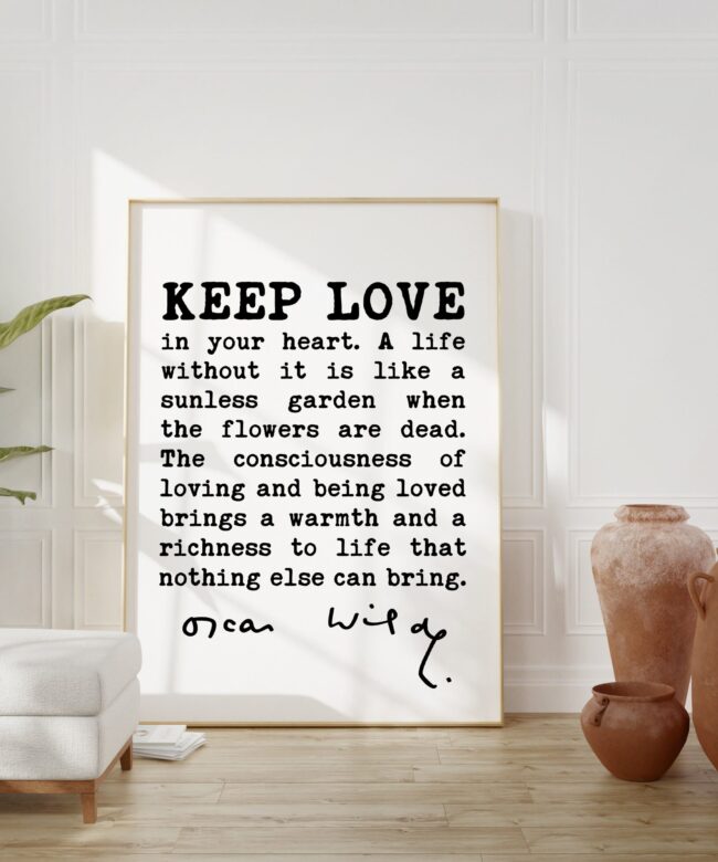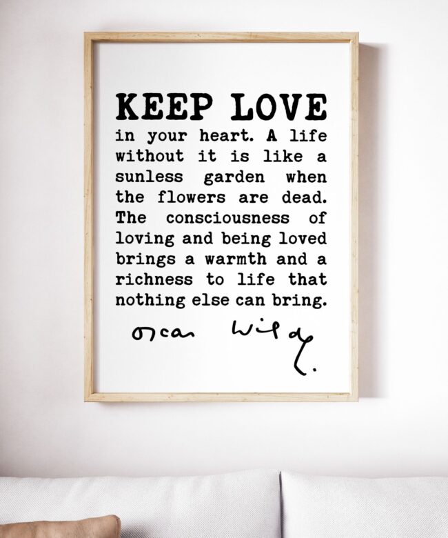 Oscar Wilde Quote – Keep love in your heart. A life without it is like a sunless garden when the flowers are dead. The consciousness.. Print