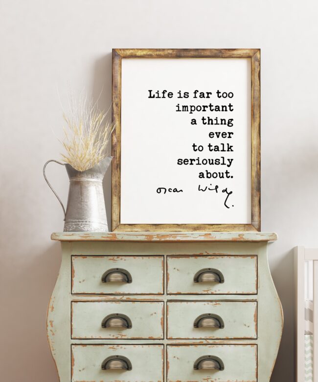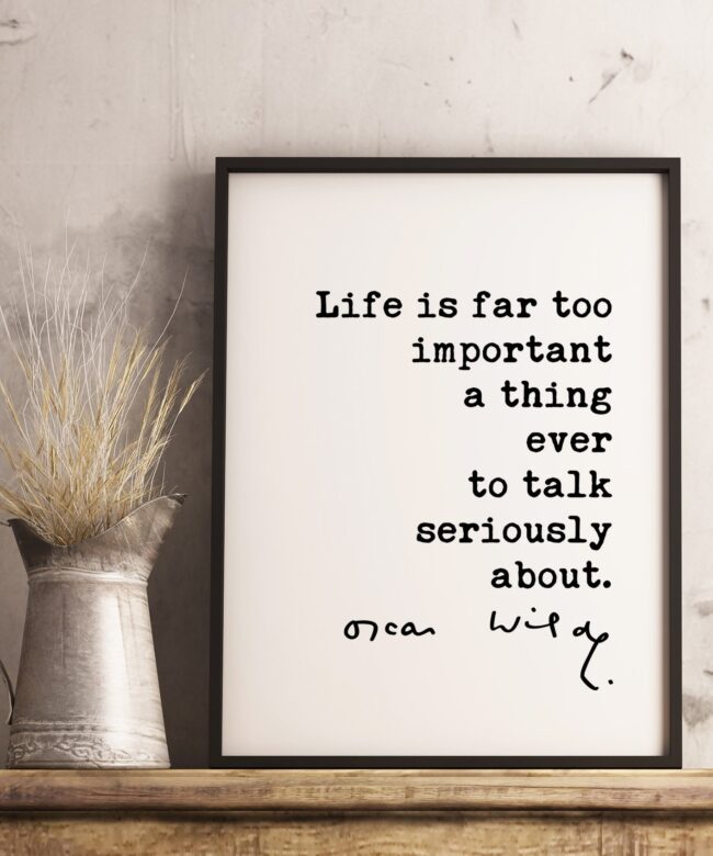 Oscar Wilde quote Life is far too important a thing ever to talk seriously about. Typography Art Print – Life Quotes – Humor Quote