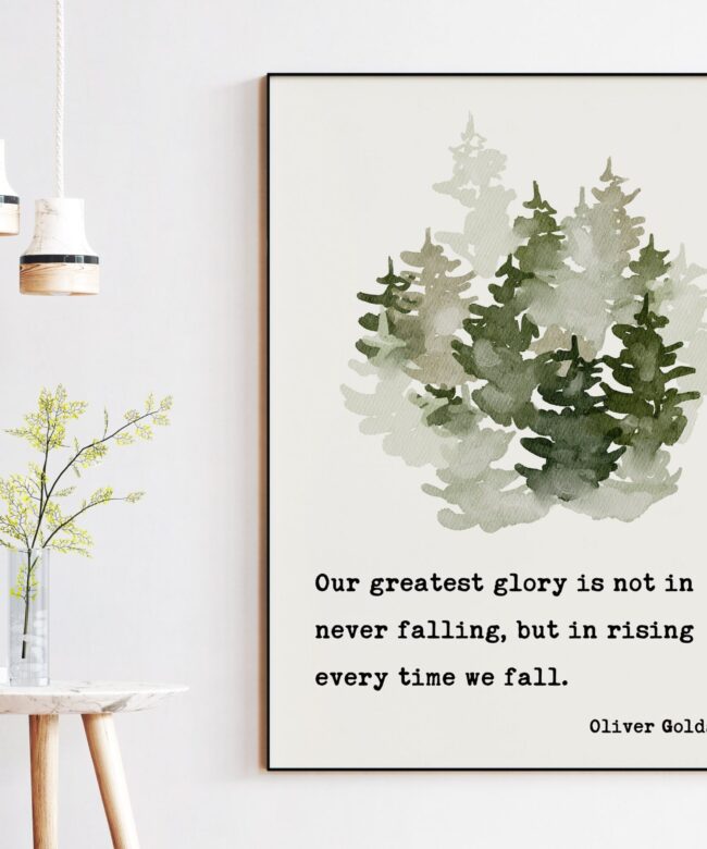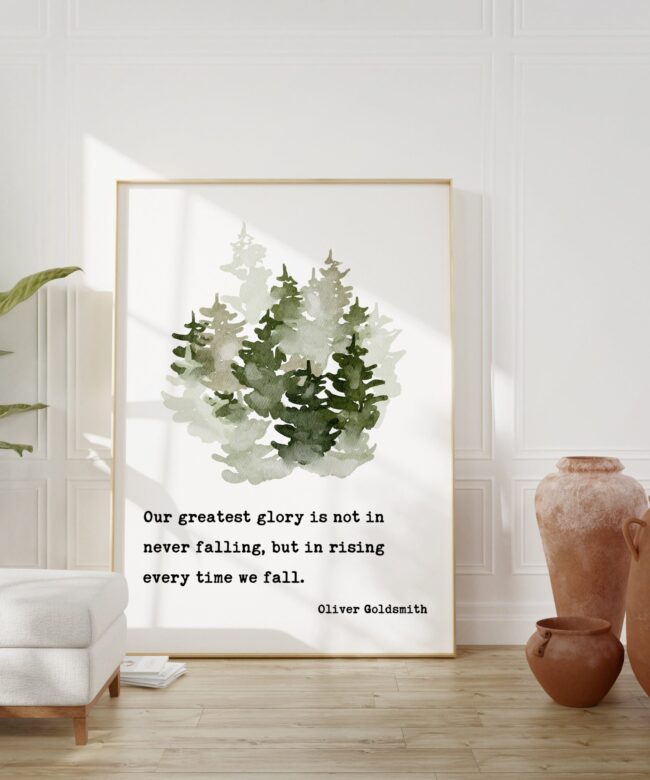Our greatest glory is not in never falling, but in rising every time we fall. – Oliver Goldsmith Art Print – Inspirational – Affirmation