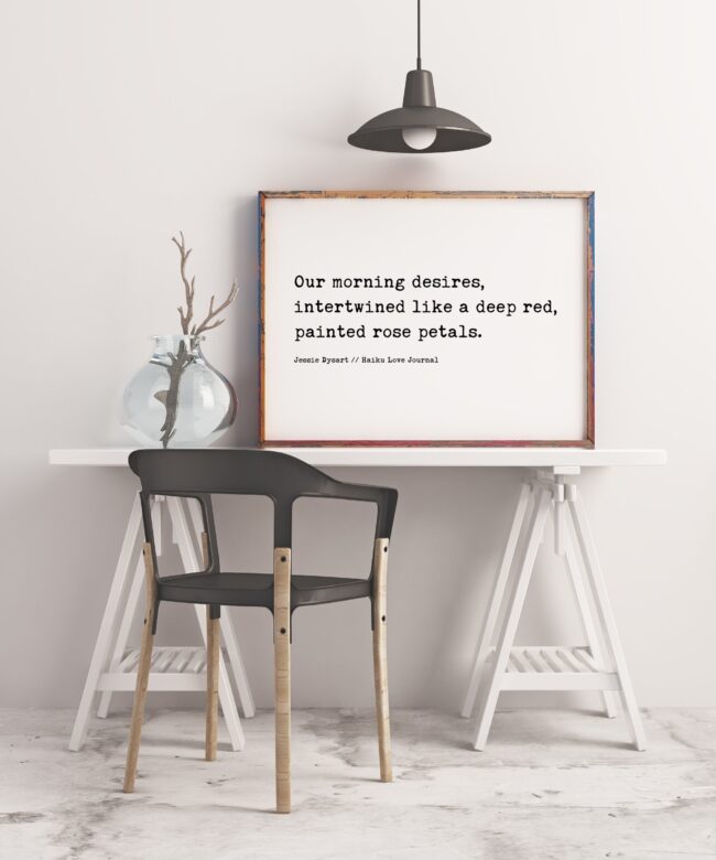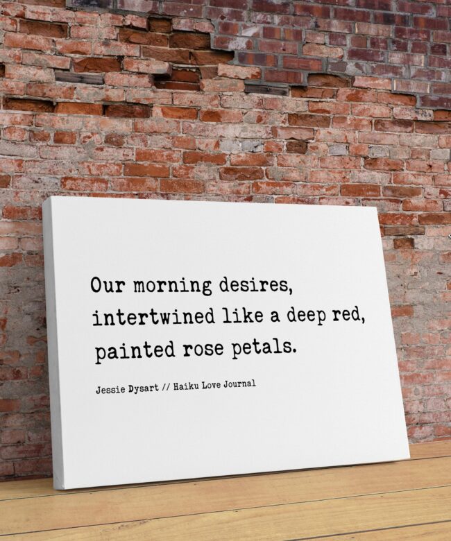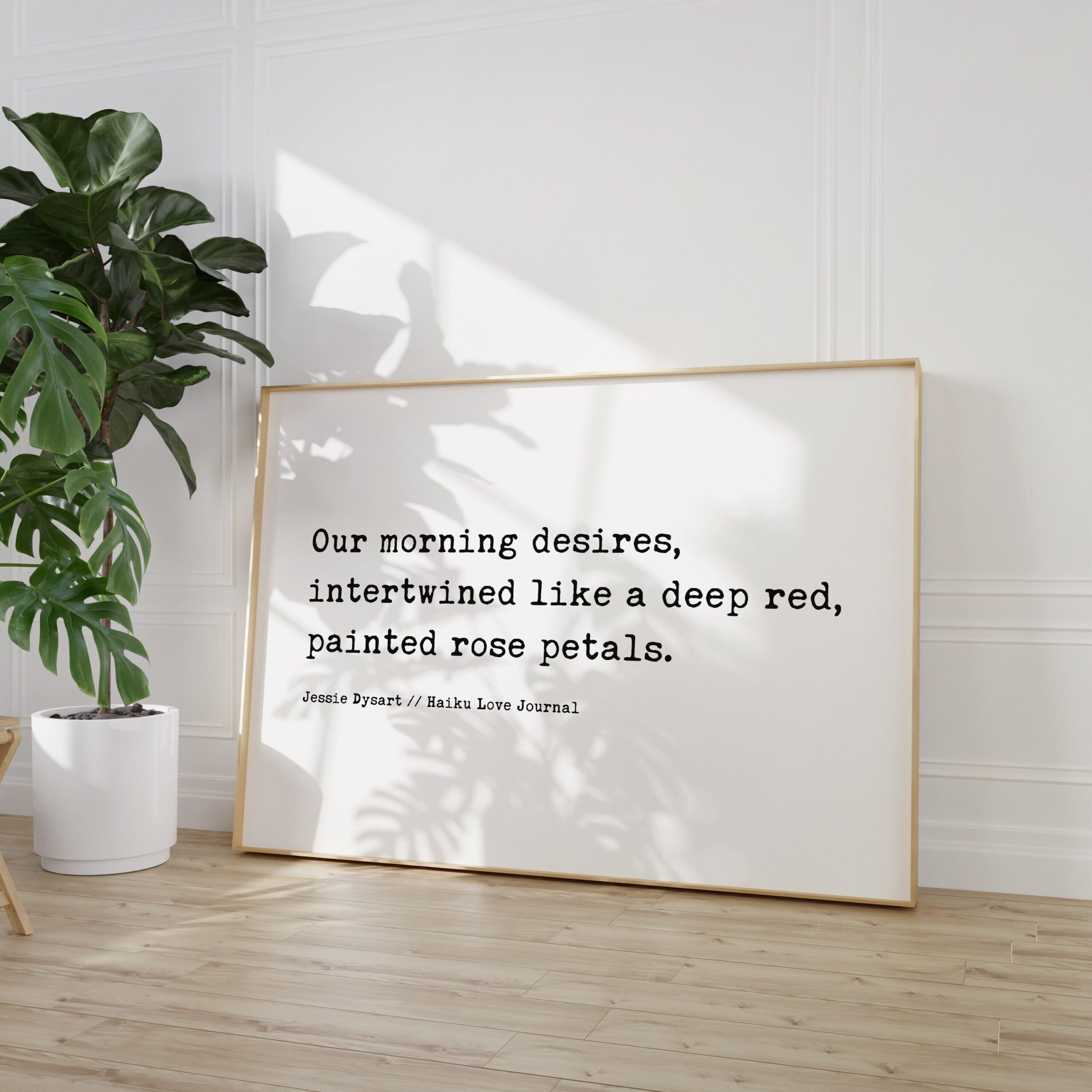 Our morning desires, intertwined like a deep red, painted rose petals. – Haiku Poem – Typography Art Print – Love – Anniversary