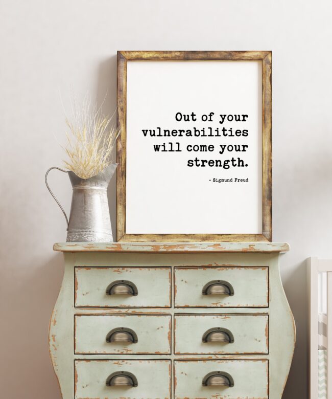 Out of your vulnerabilities will come your strength. -Sigmund Freud Quote Typography Art Print – Affirmation, Positive, Inspirational Quote