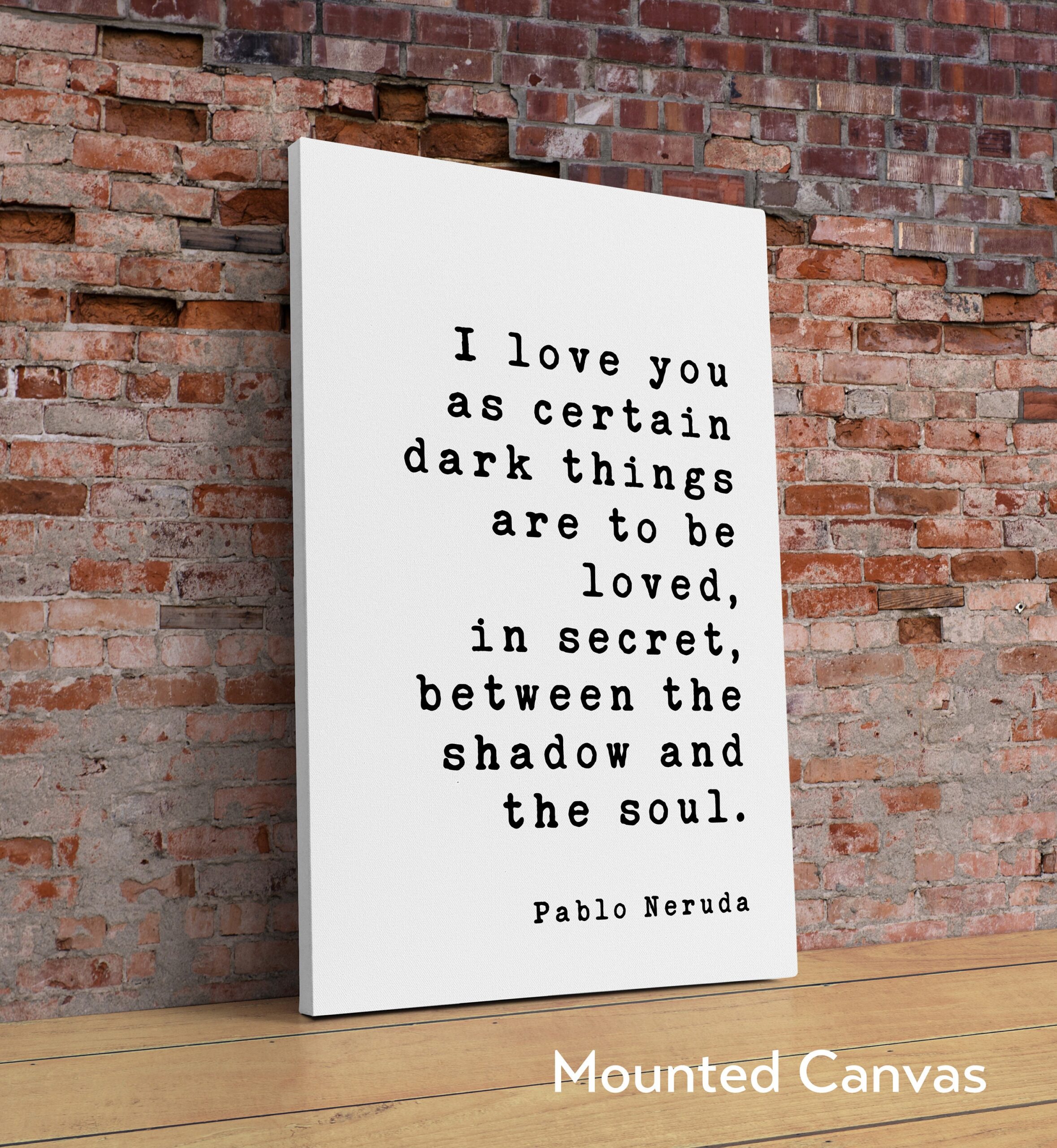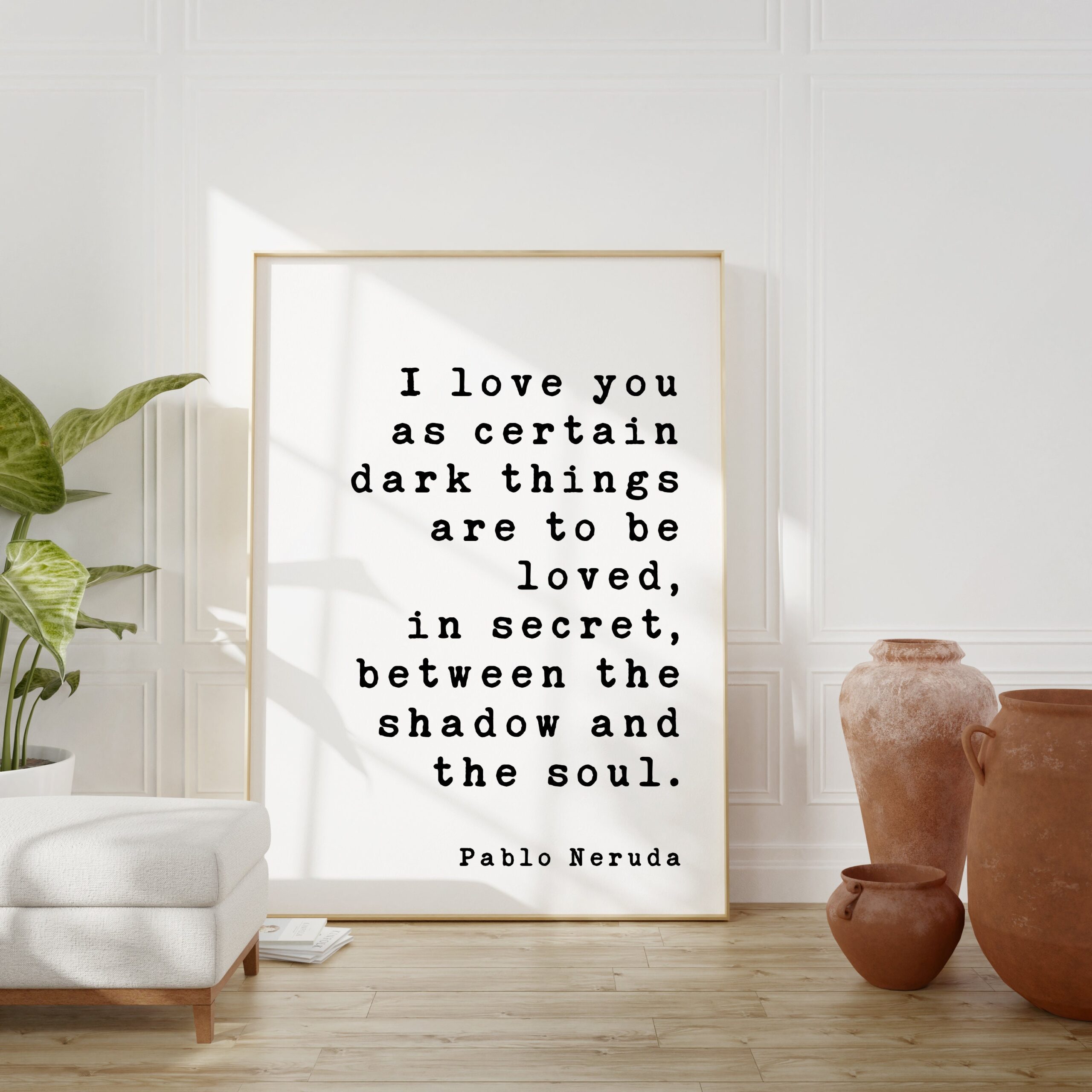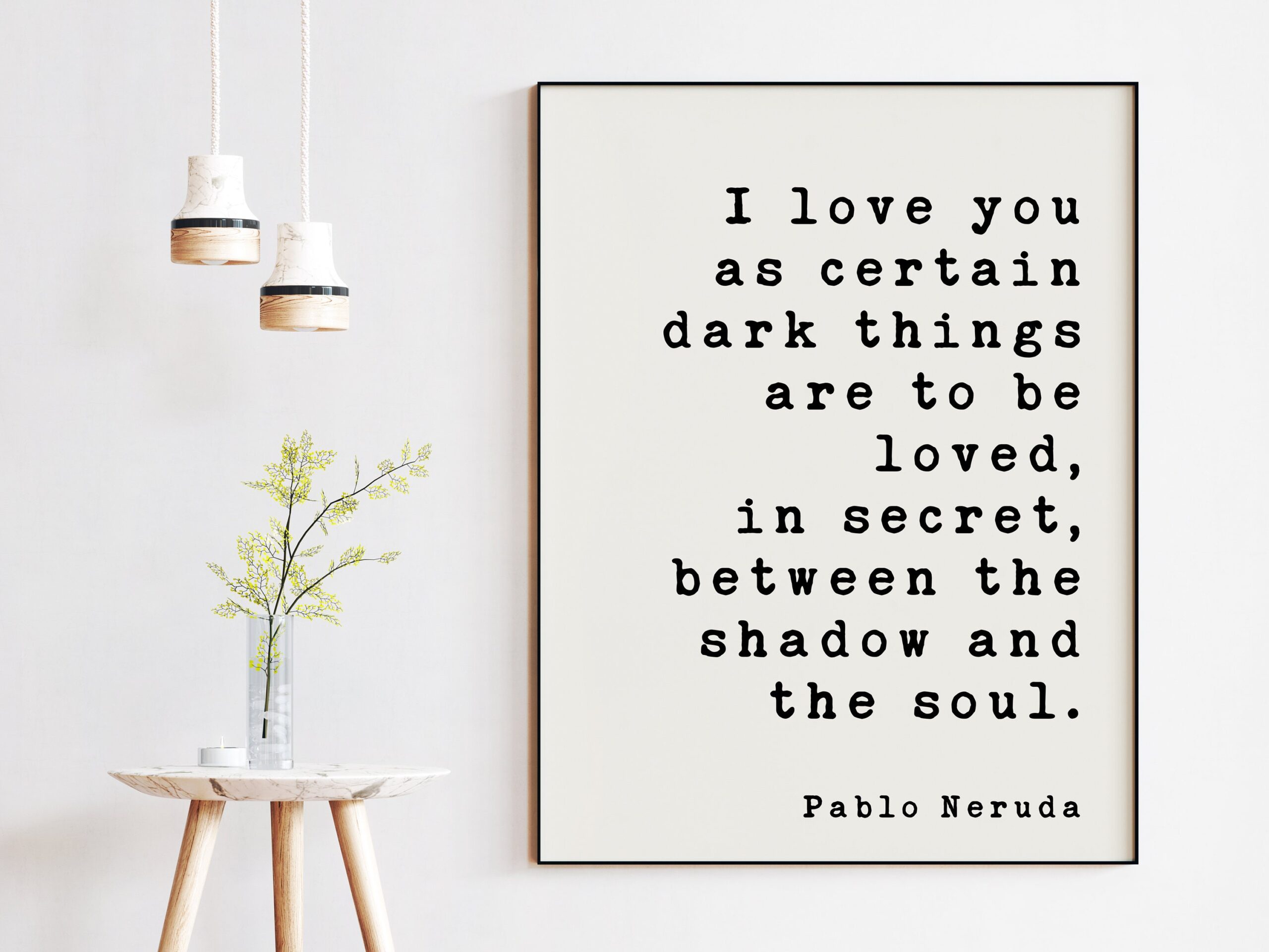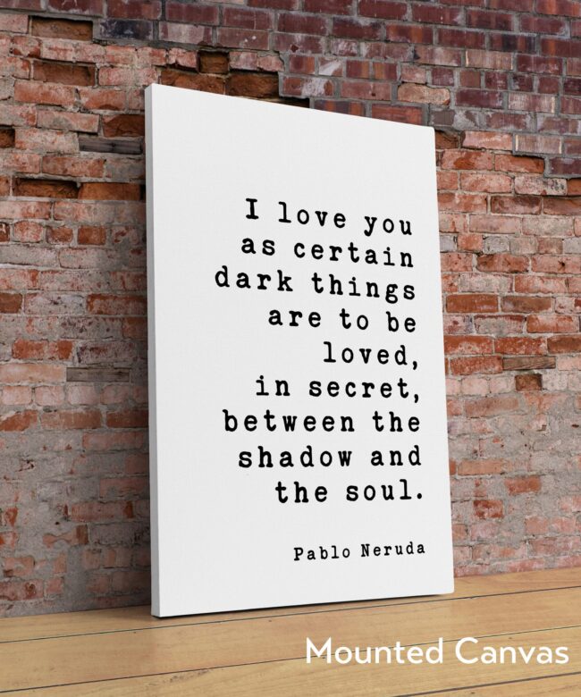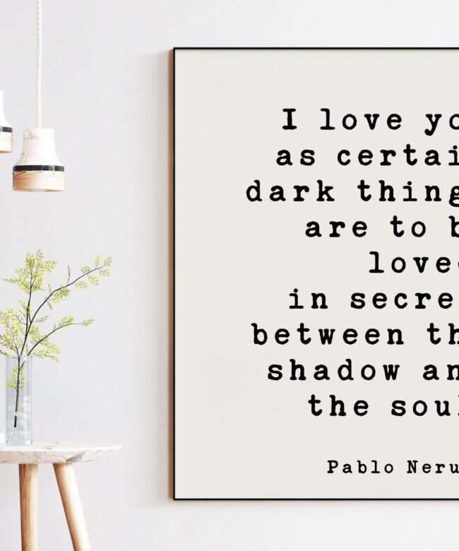 Pablo Neruda Quote – I love you as certain dark things are to be loved … shadow and the soul. – Art Print – Anniversary – Wedding Gift