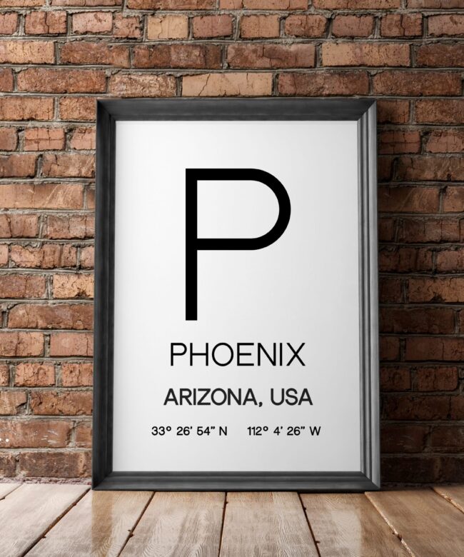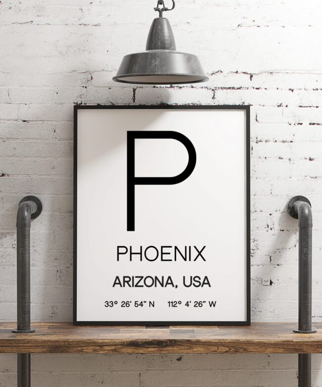 Phoenix AZ with GPS Coordinates Minimalist Art Print – Minimalist Wall Decor – Office Decor – Living Room Decor – Dorm Decor