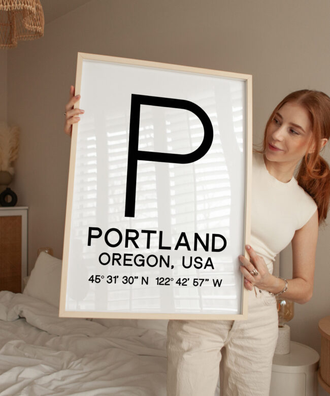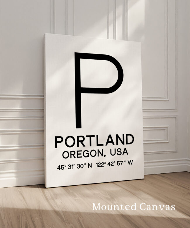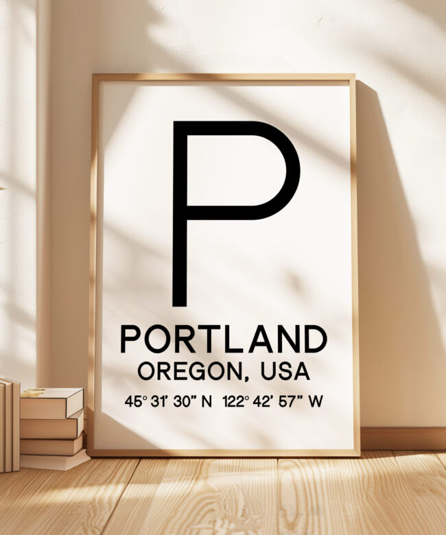 Elevate your home or office decor with this minimalist Typographic Print, showcasing the coordinates and location details for Portland, Oregon. The clean, modern design features the iconic “P” logo alongside the city name and GPS coordinates, creating a striking visual that celebrates the unique character of this vibrant Pacific Northwest destination. This versatile piece makes a meaningful addition to any space, serving as a constant reminder of the natural beauty, rich culture, and innovative spirit of Portland. Whether displayed solo or as part of a gallery wall, this artwork offers a sophisticated, travel-inspired touch to your interior.