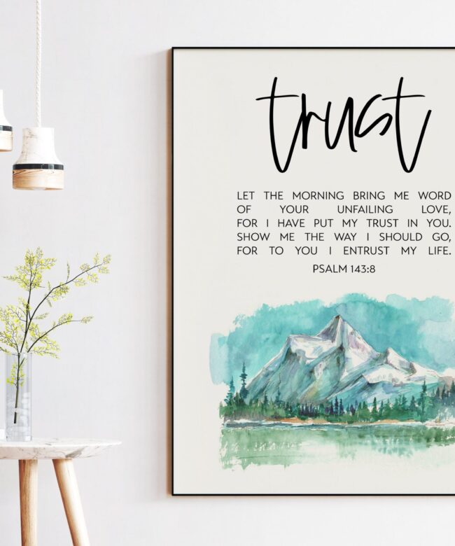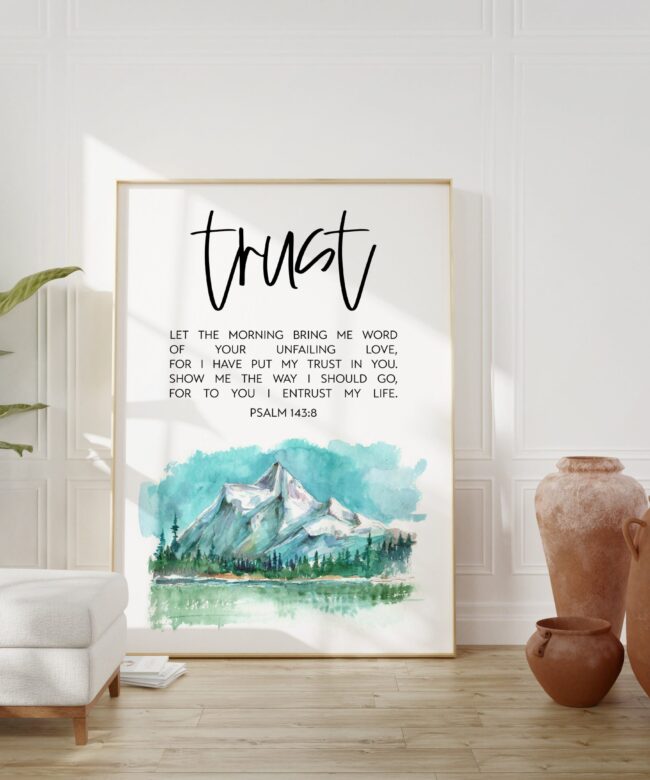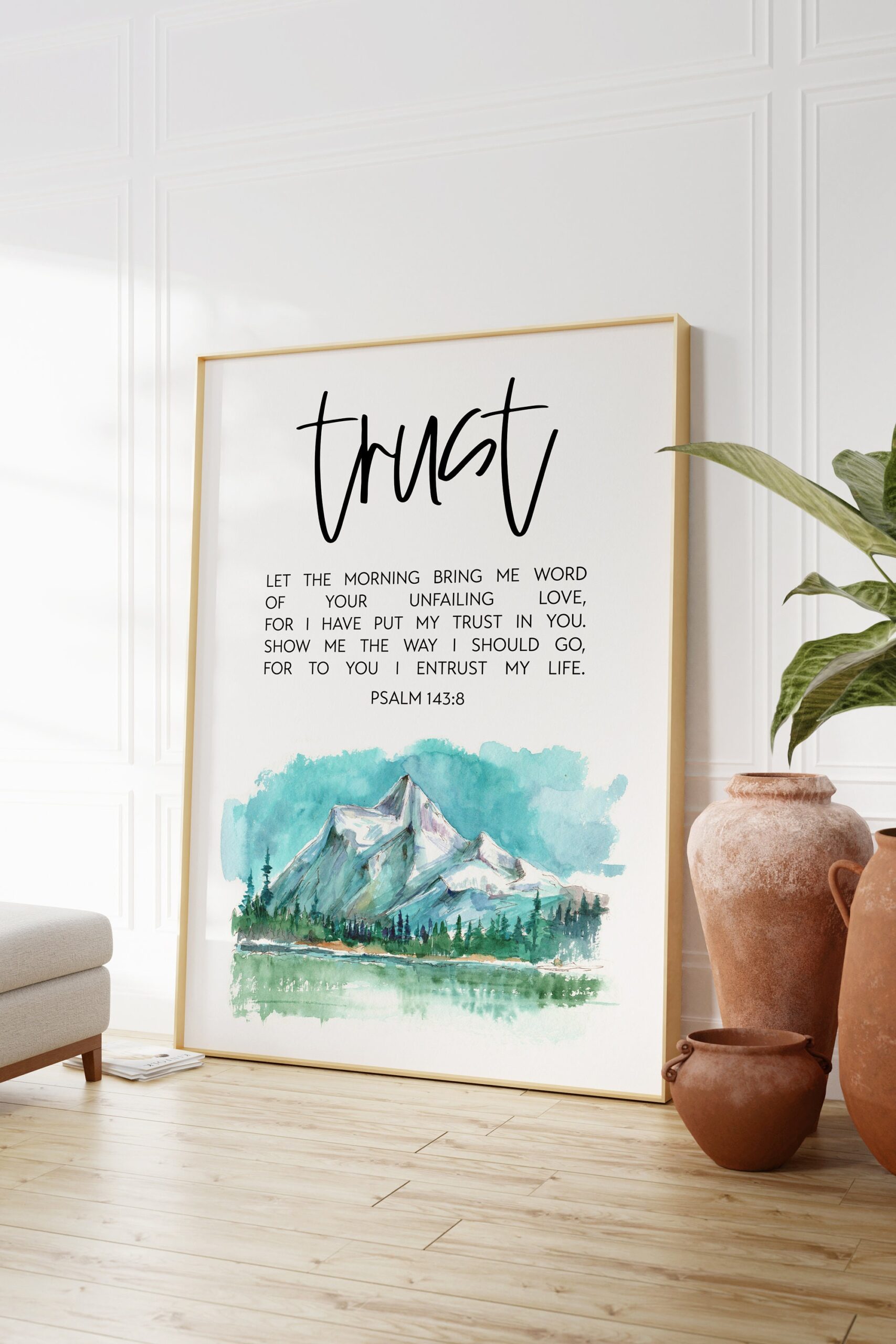 Psalm 143:8 Let the morning bring me word of your unfailing love. Art Print – Watercolor Mountain – Bible Verse – Christian – Scripture