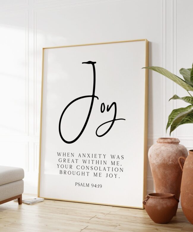 Psalm 94:19 – Joy – When Anxiety Was Great Within Me… Typography Wall Art Print – Christian Gift Idea – Scripture – Inspirational