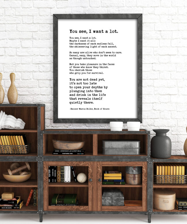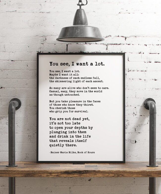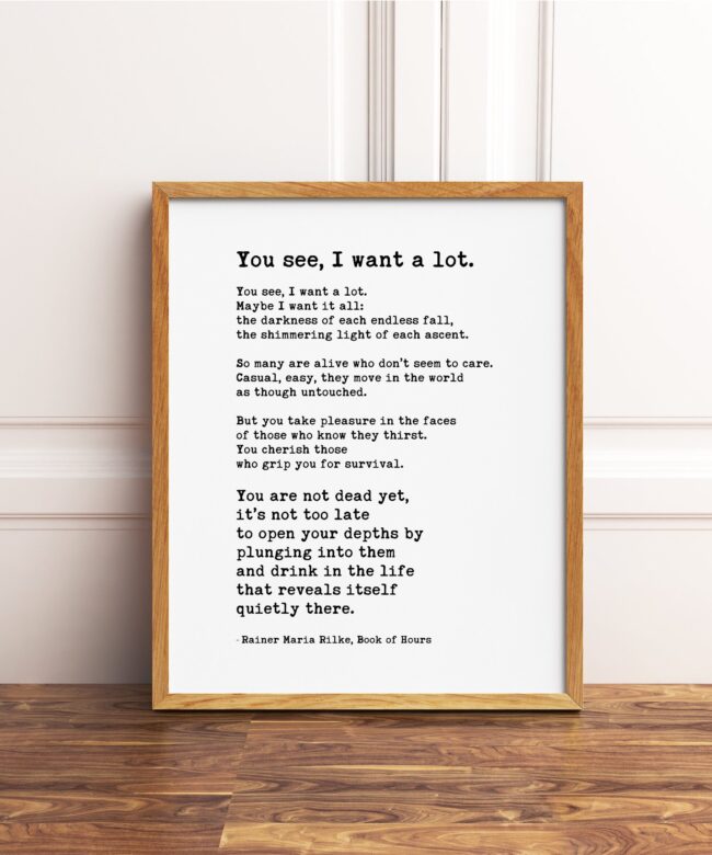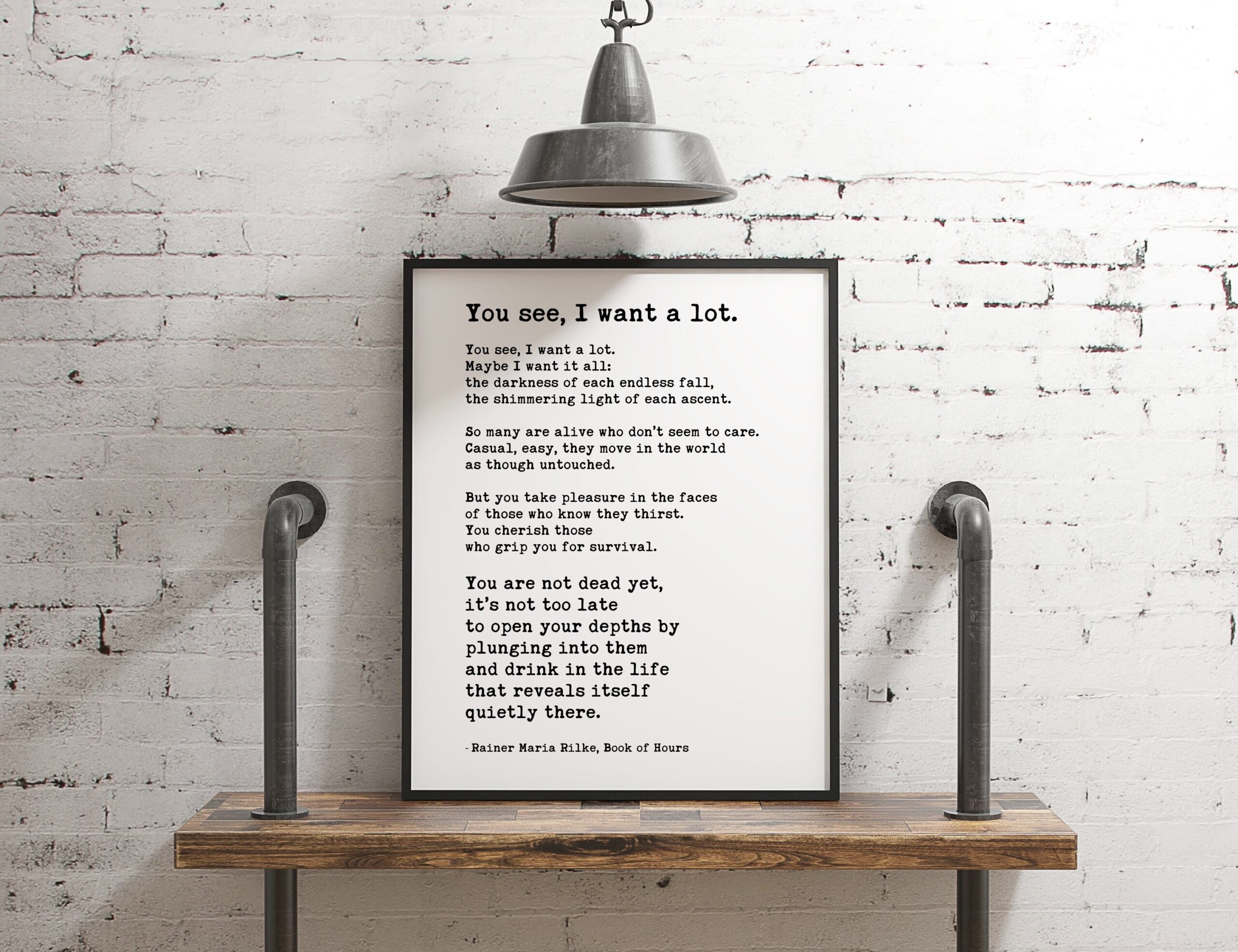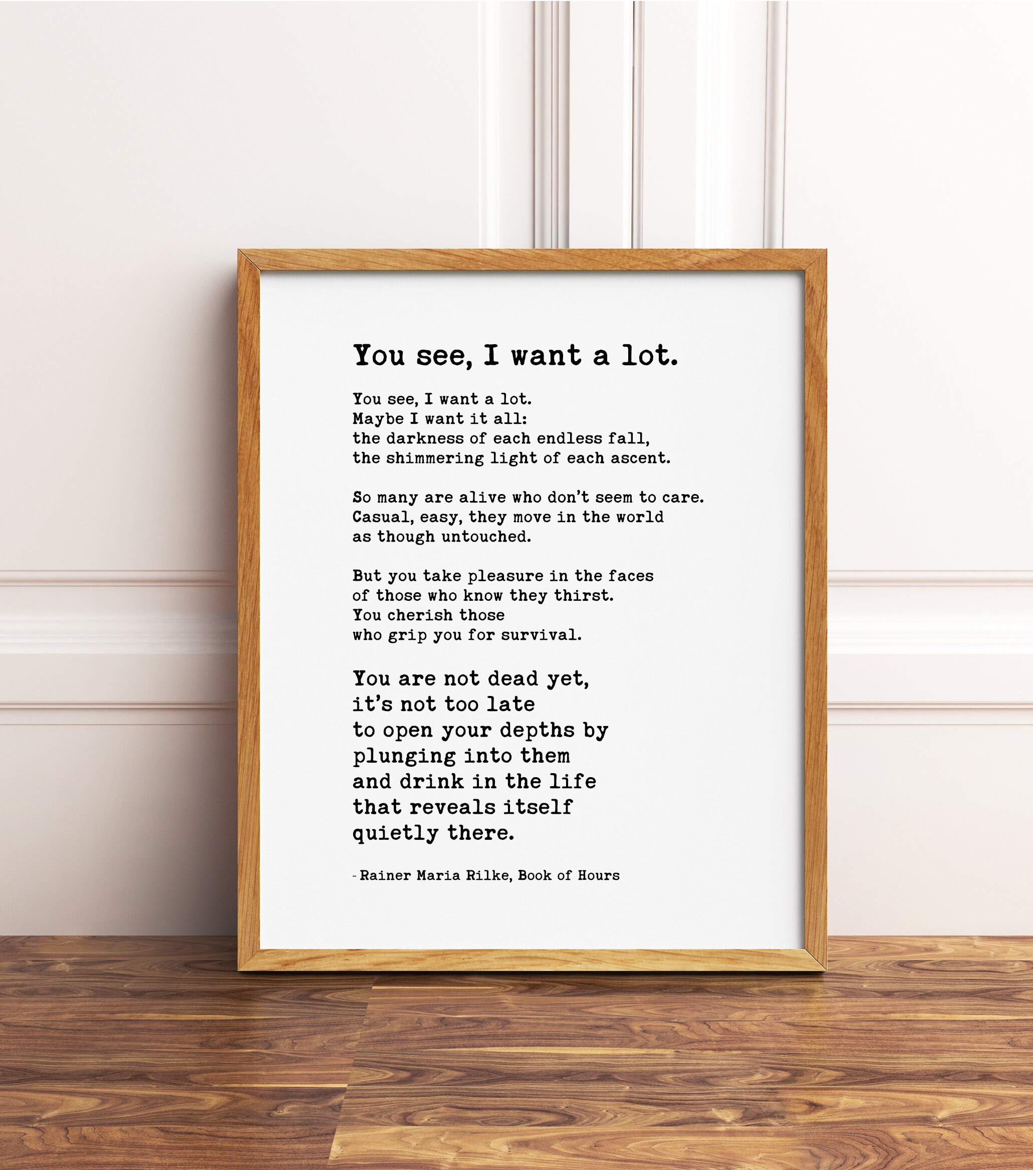 Rainer Maria Rilke Quote – You see, I want a lot. Art Print – Friendship Gift, Wall Décor, Never Too, Encouragement, Affirmation, Minimalist