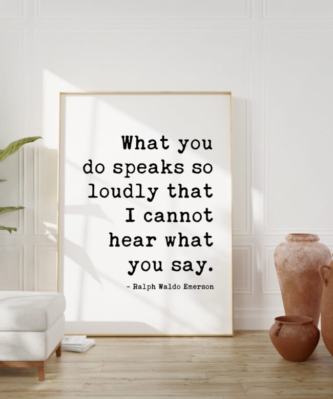 Ralph Waldo Emerson Quote – What you do speaks so loudly that I cannot hear what you say. – Typography Art Print – Inspiring – Motivational