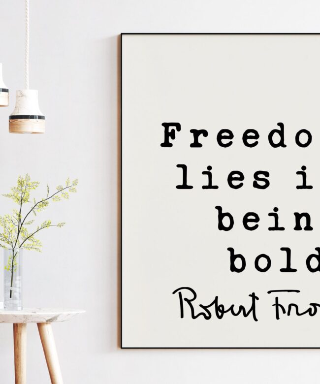 Robert Frost Quote Freedom lies in being bold. Typography Art Print – Inspirational – Affirmation – Entrepreneur – Graduation