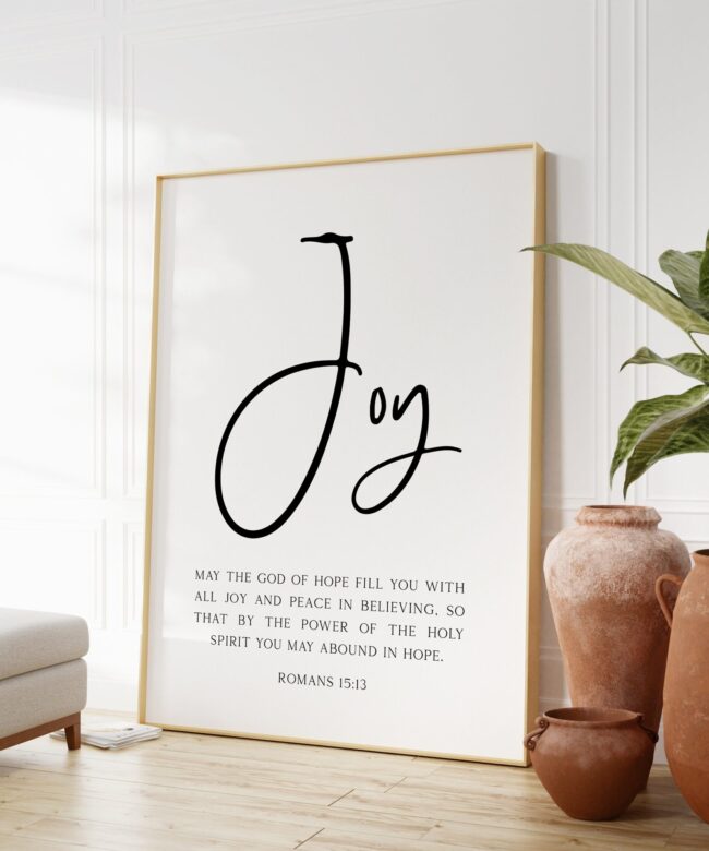 Romans 15:13 – May the God of Hope Fill You with All Joy Typography Wall Art Print – Faith – Religious – Spiritual