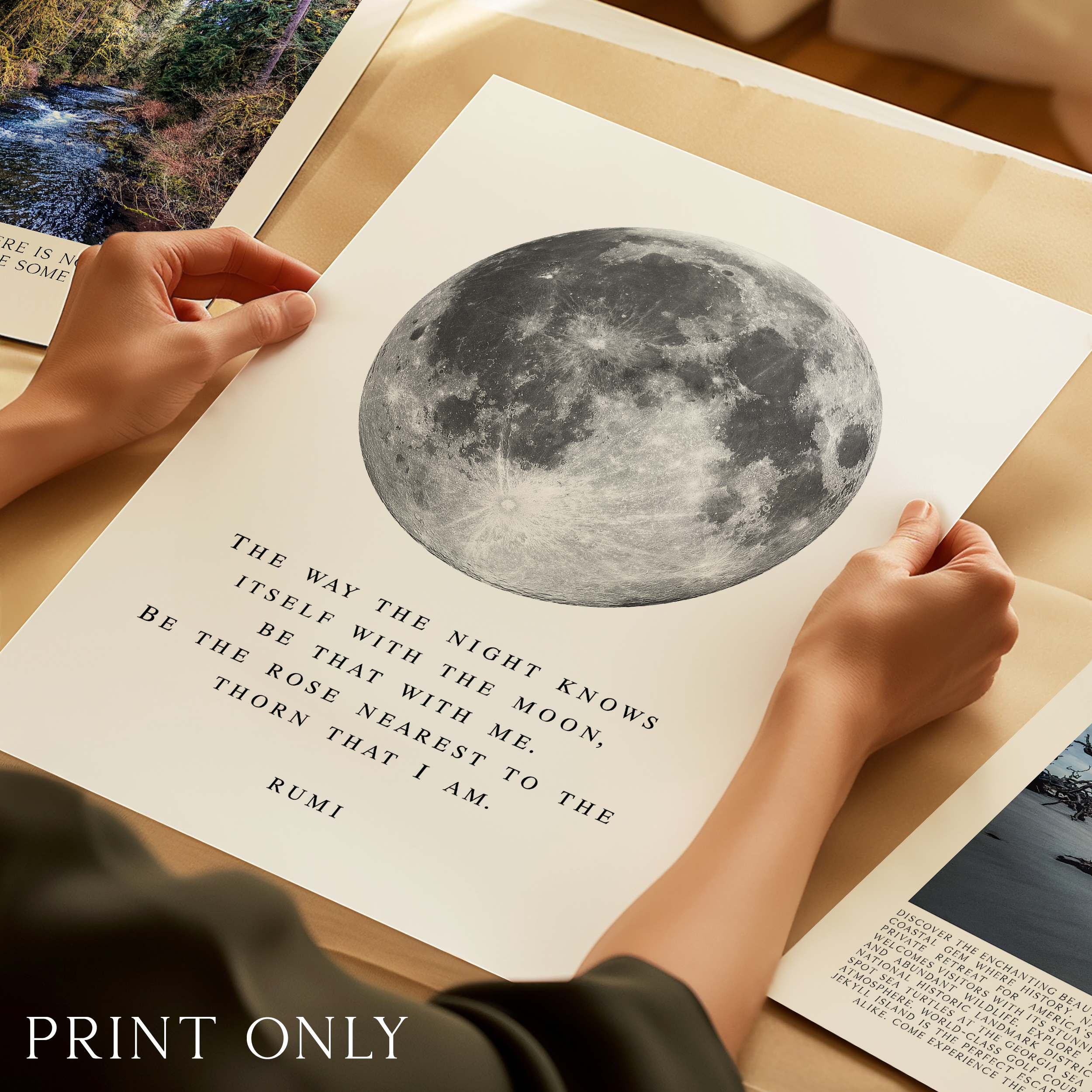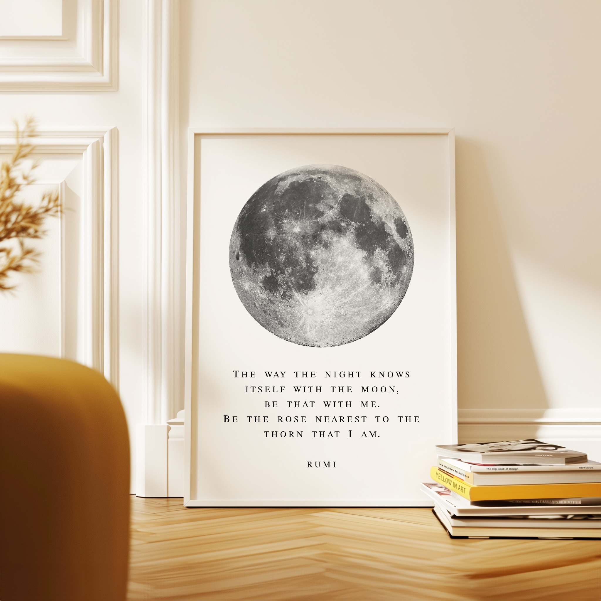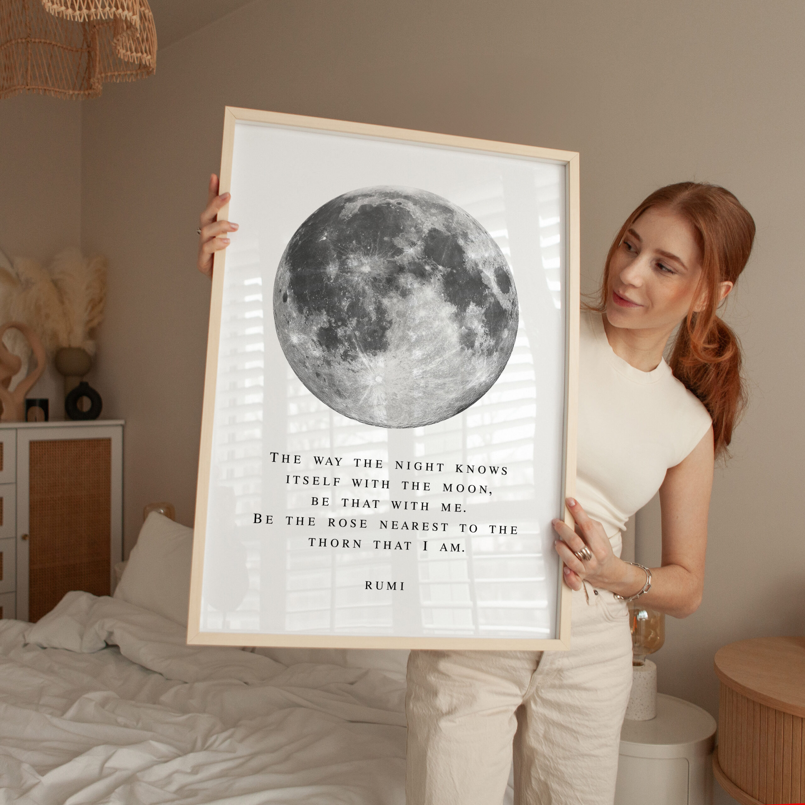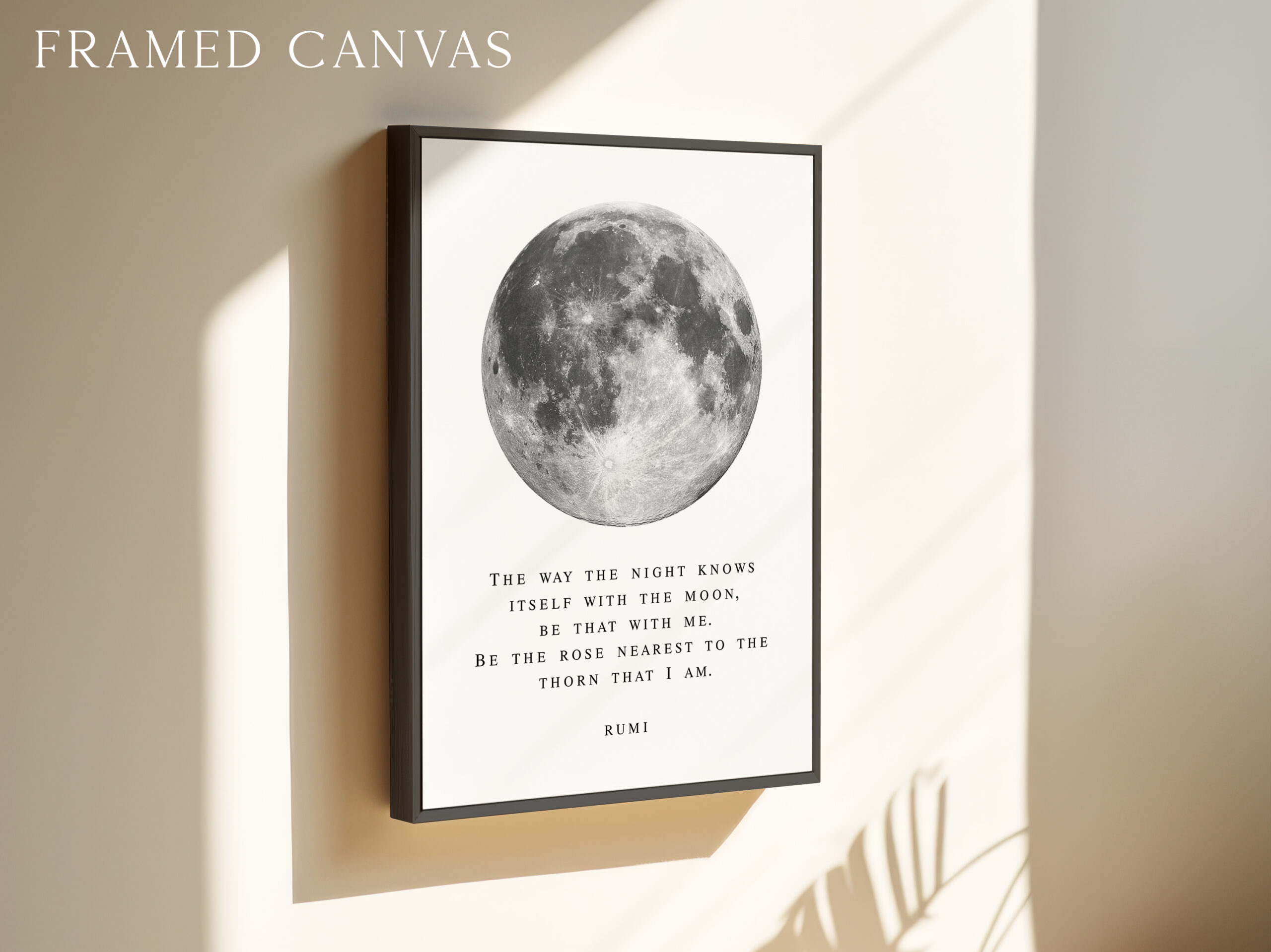 Bring a sense of calm and wonder into your space with this Rumi typography art print. Featuring a striking full moon illustration paired with a poetic quote, this piece blends minimal design with deep meaning.