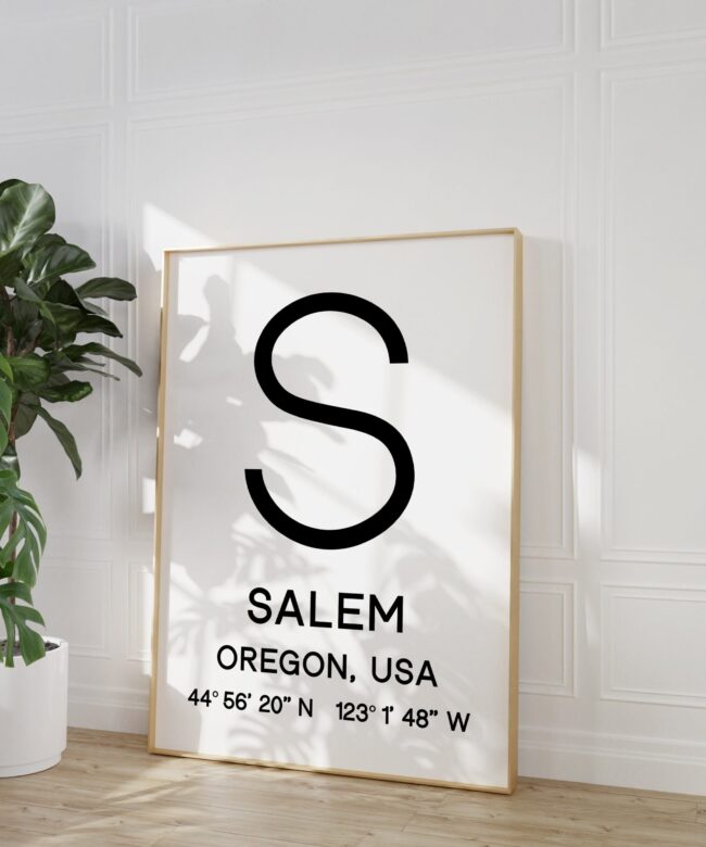 Salem, Oregon with GPS Coordinates Typography Art Print – Travel Home Minimalist Wall Decor – Gift – State Capitol