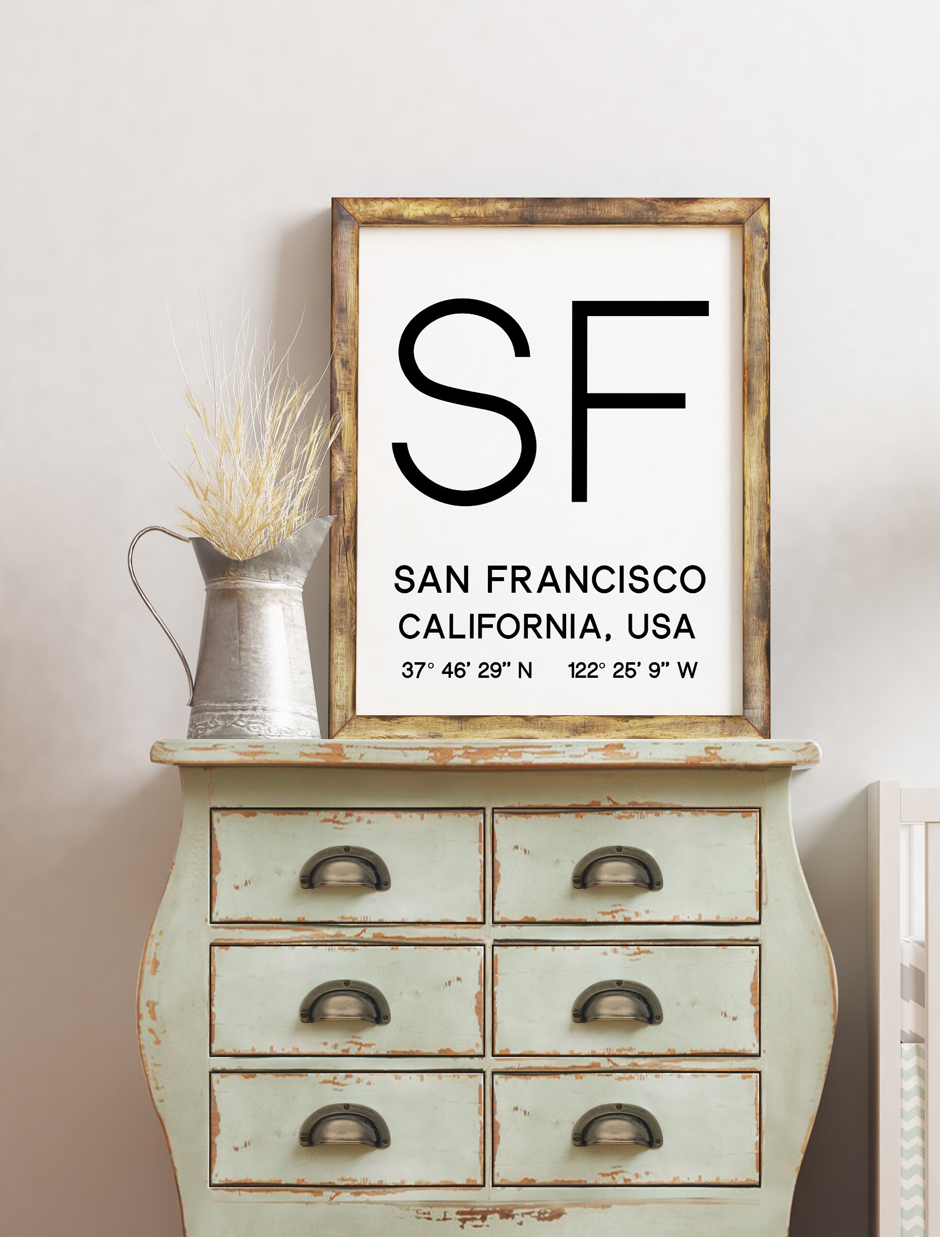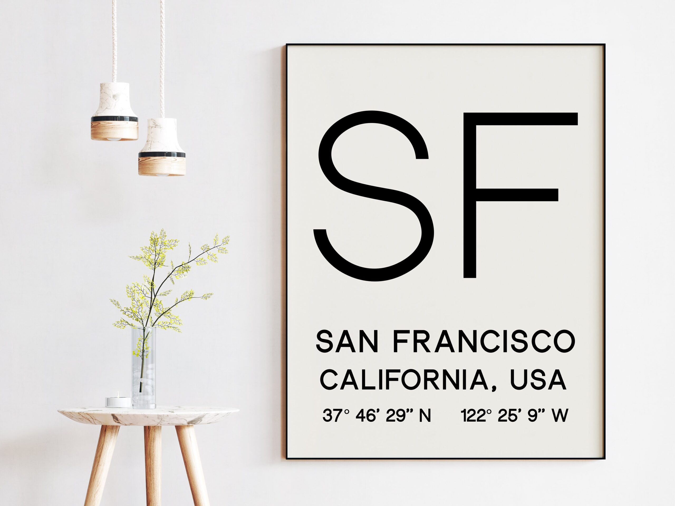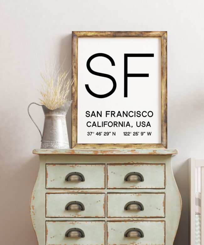 San Francisco, California with GPS Coordinates Typography Art Print – Office – Home Decor – Restaurant – Apartment – Condo