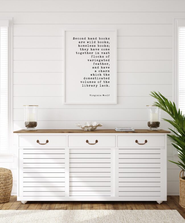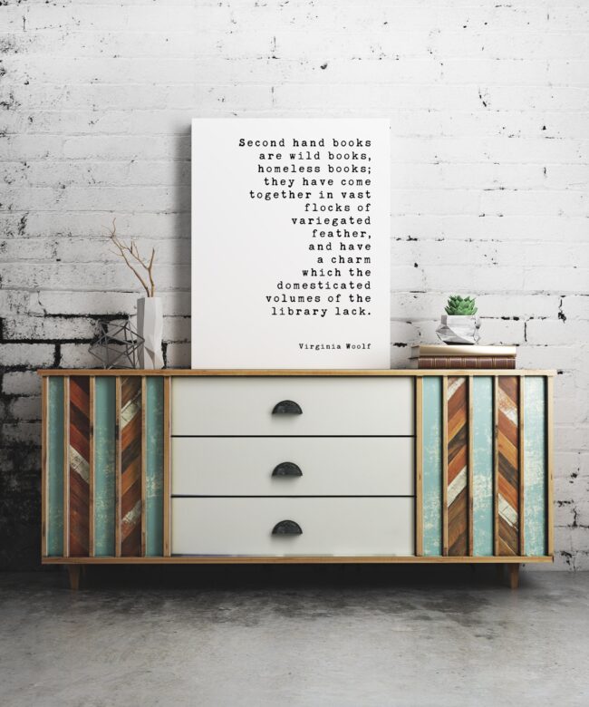 Second hand books are wild books, homeless books; they have come together in vast flocks of variegated feather. – Virginia Woolf Print