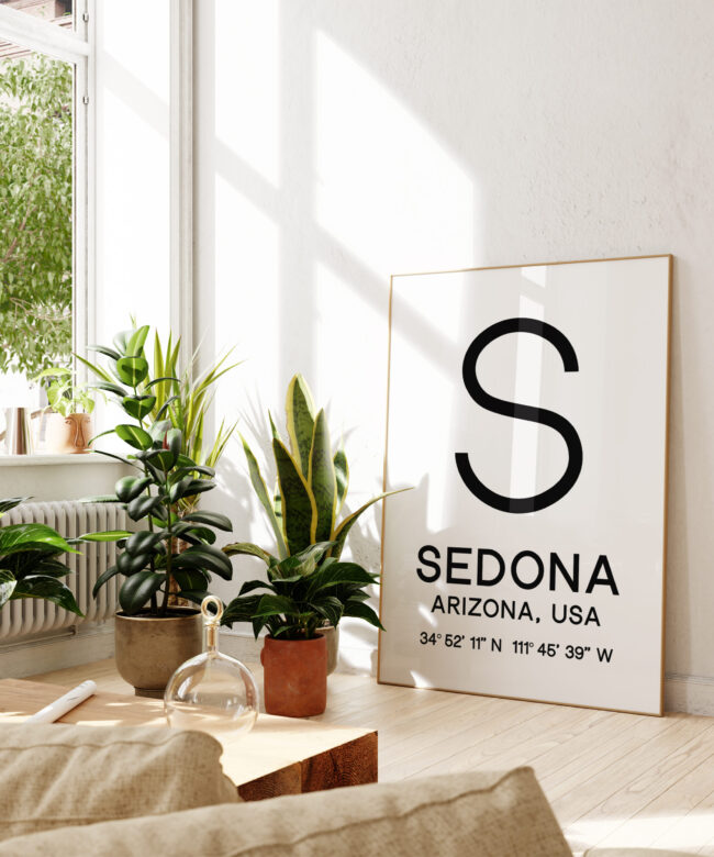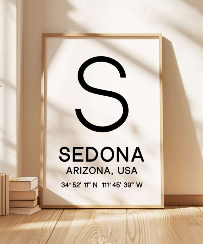 Immerse yourself in the captivating beauty and mystical energy of Sedona, Arizona with this captivating typography art print, a tribute to this otherworldly landscape.