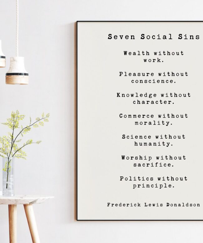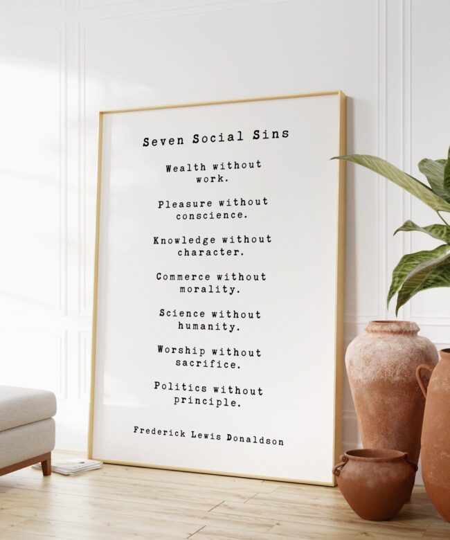 Seven Social Sins Art Print – Frederick Lewis Donaldson – Inspiration – Work – Conscience – Character – Morality – Humanity – Sacrifice