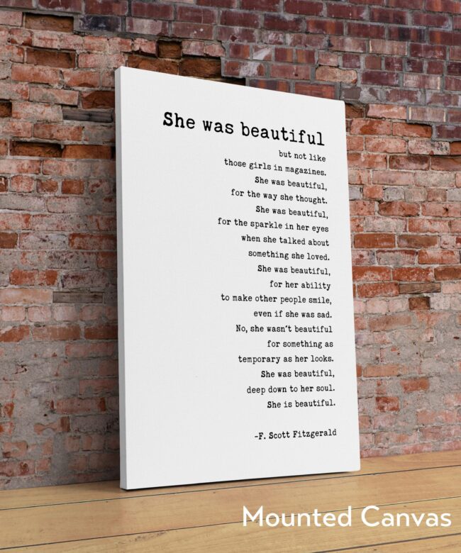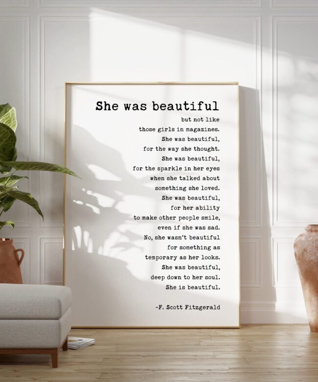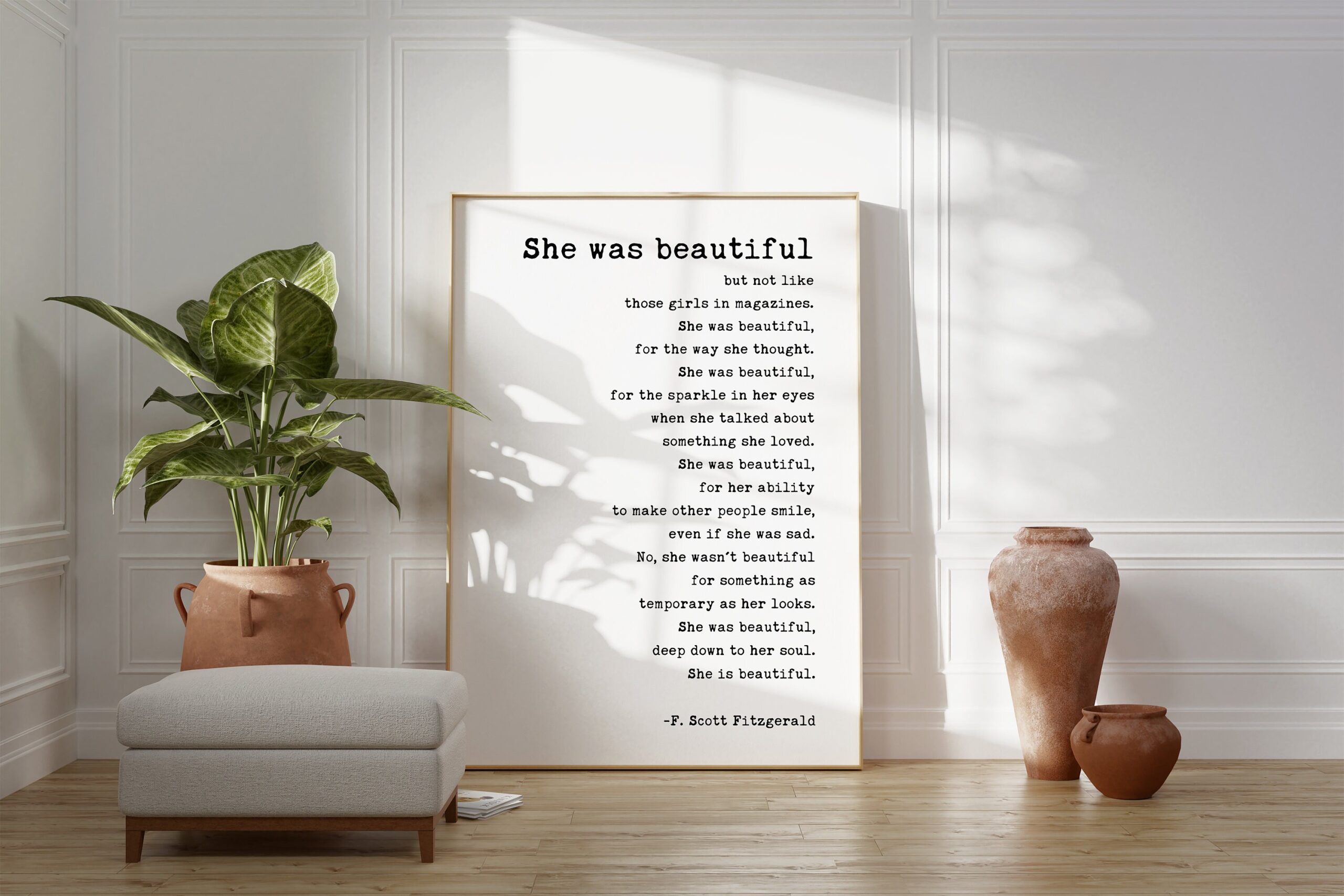She was beautiful But Not Like Those Girls in Magazines by F. Scott Fitzgerald Quote Typography Print – Wall Decor – Minimalist Decor