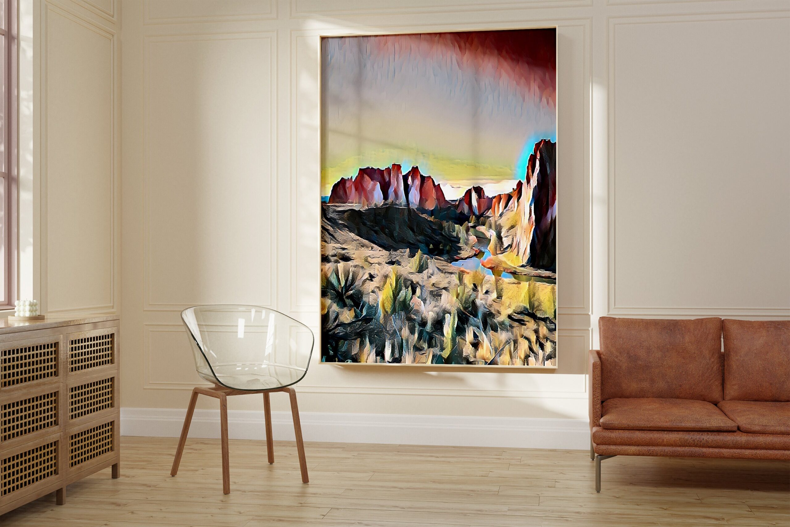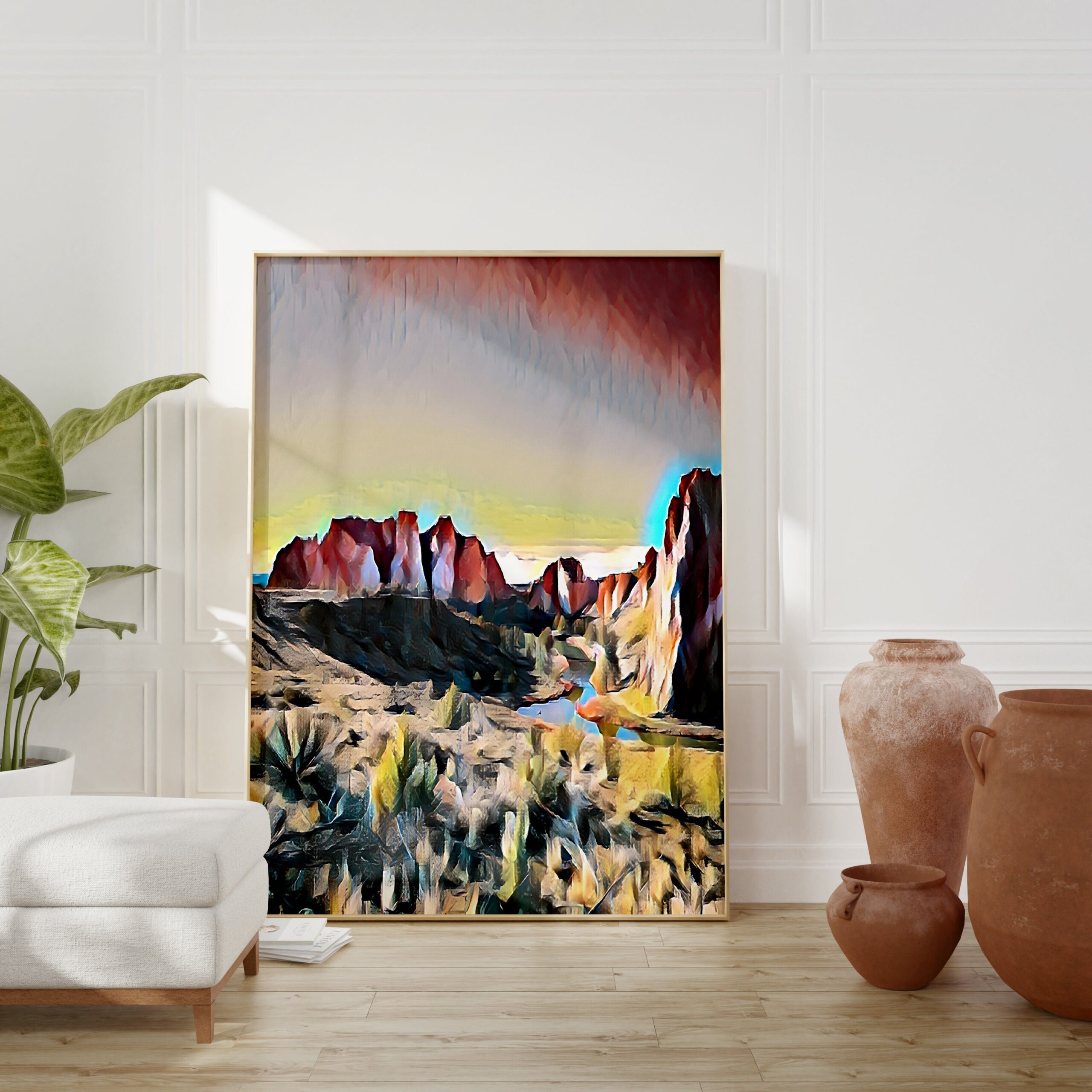 Smith Rock State Park, Oregon Digital Watercolor Art Print – PNW – Colorful – Cheerful – Oregon Nature – Travel