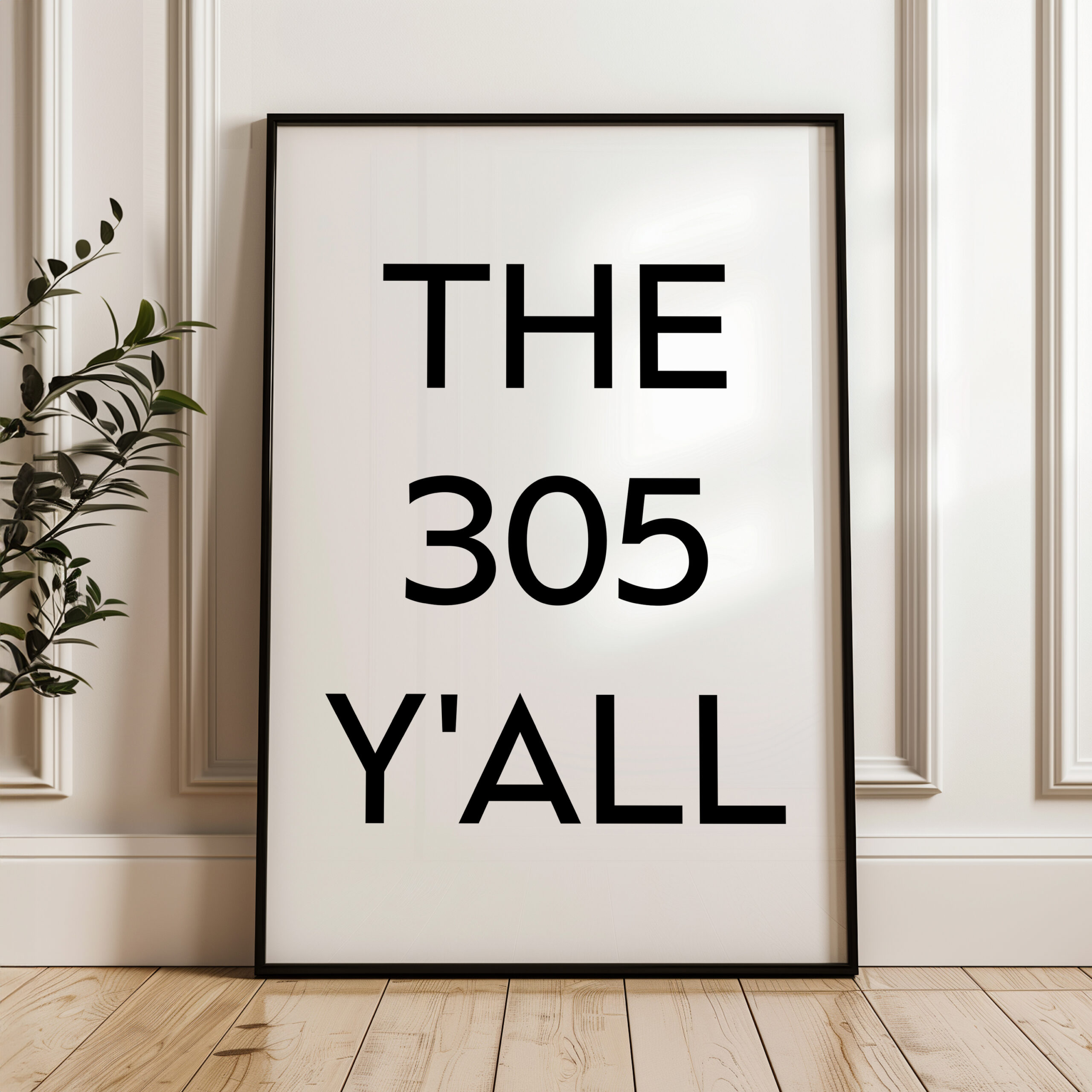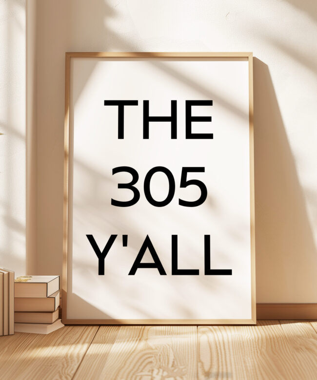 Capture the unique spirit of Miami with this eye-catching art print that says it all: “THE 305 Y’ALL”! This piece blends the famous 305 area code with a touch of Southern charm, creating a unique statement about Miami life. Its straightforward design makes it a great conversation starter. Looking for the perfect gift for a Miamian or anyone who loves the 305 vibe? This print is a cool and thoughtful way to celebrate that South Florida connection. Simple, modern, and full of local character, “THE 305 Y’ALL” fits perfectly on any wall.