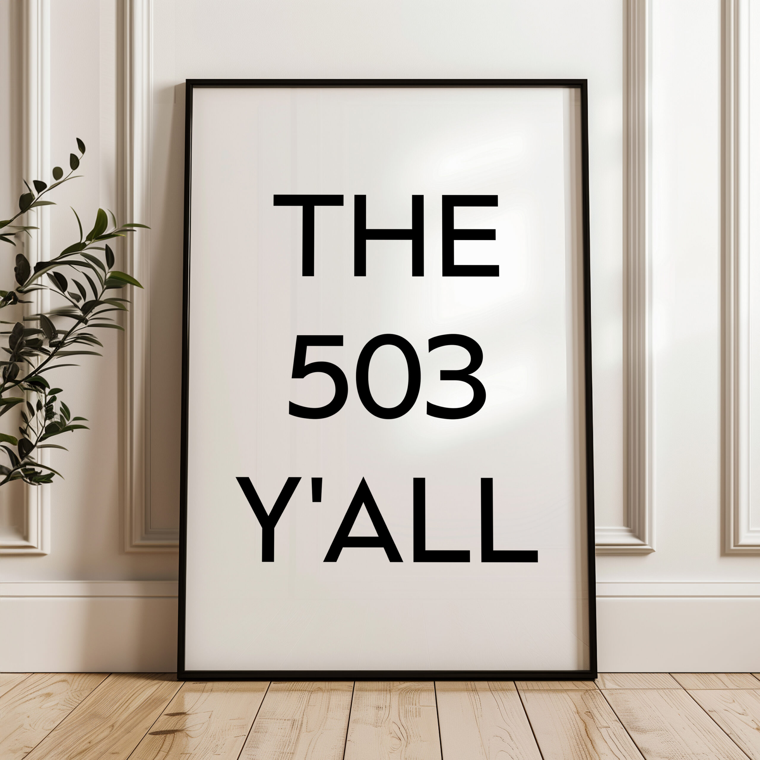 Celebrate the Rose City with this stylish typography art print that proudly features “THE 503 Y’ALL.” Representing Portland’s original area code, this bold and modern design is perfect for anyone who loves Portland’s unique blend of creativity and culture. Whether you’re a local or just a fan, this art print will add a touch of Portland pride to any space.
